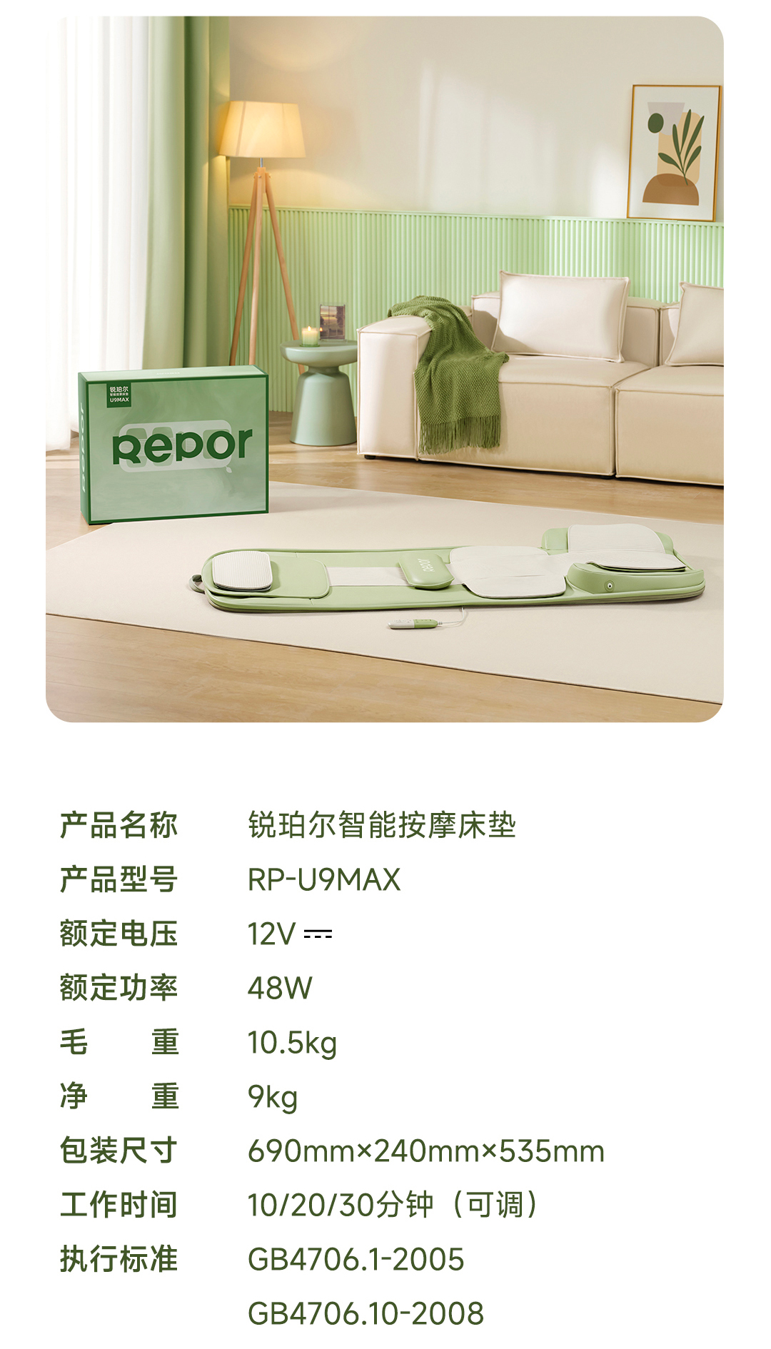【小家电】Repor锐珀尔智能按摩床垫 U9MAX HF