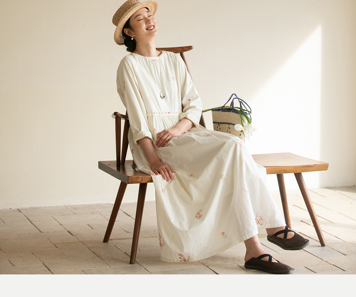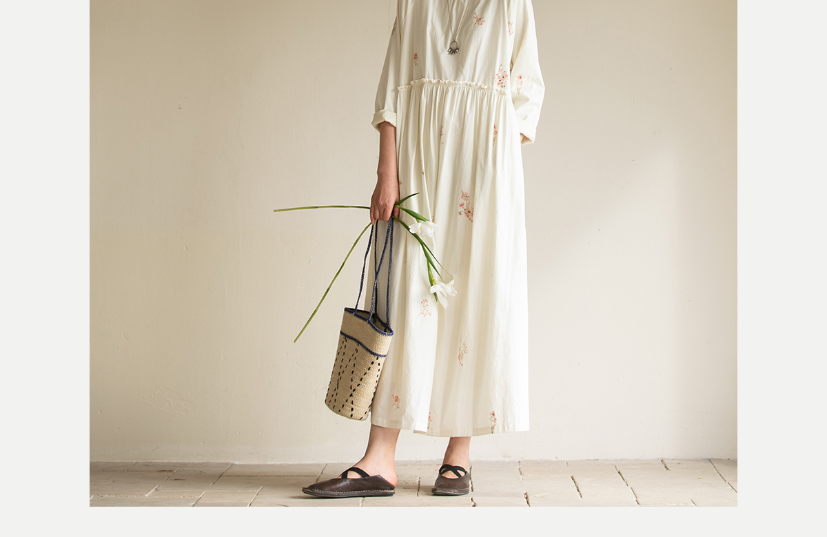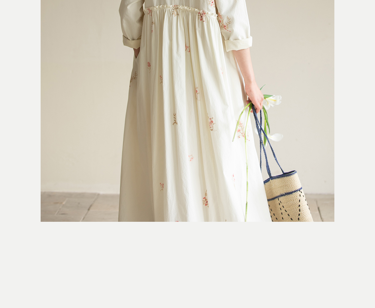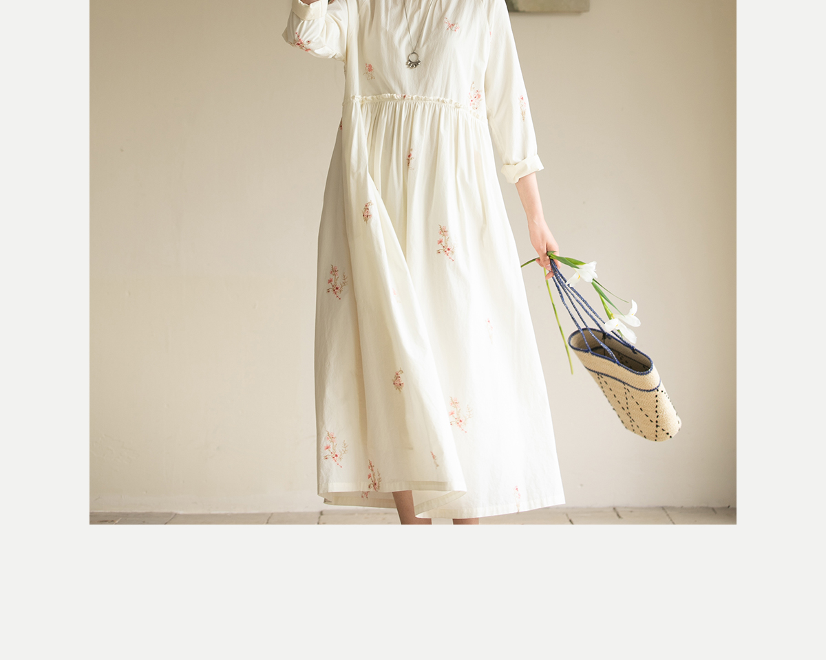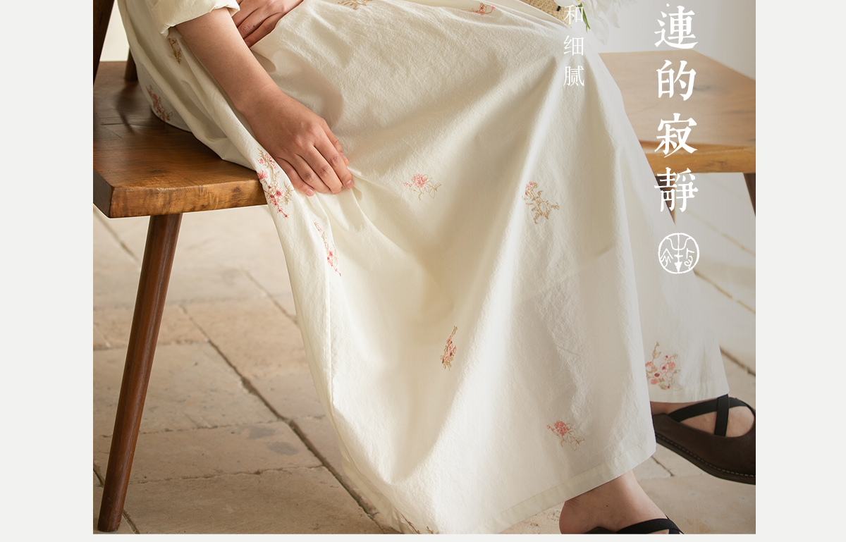 牧衣游原创 匹马棉绢丝混纺连衣裙新款轻薄素雅清新文艺长裙 木绵
