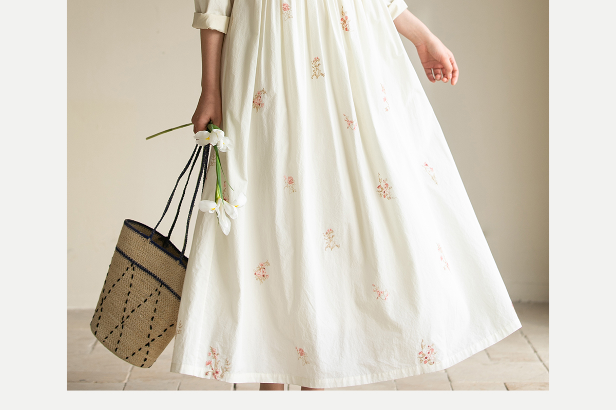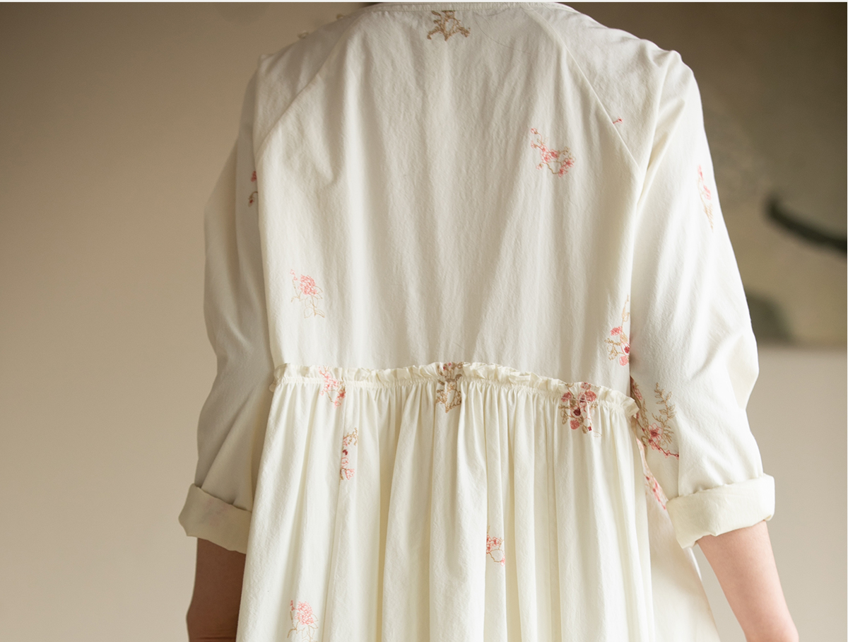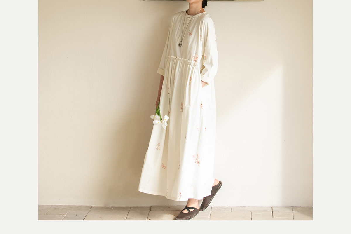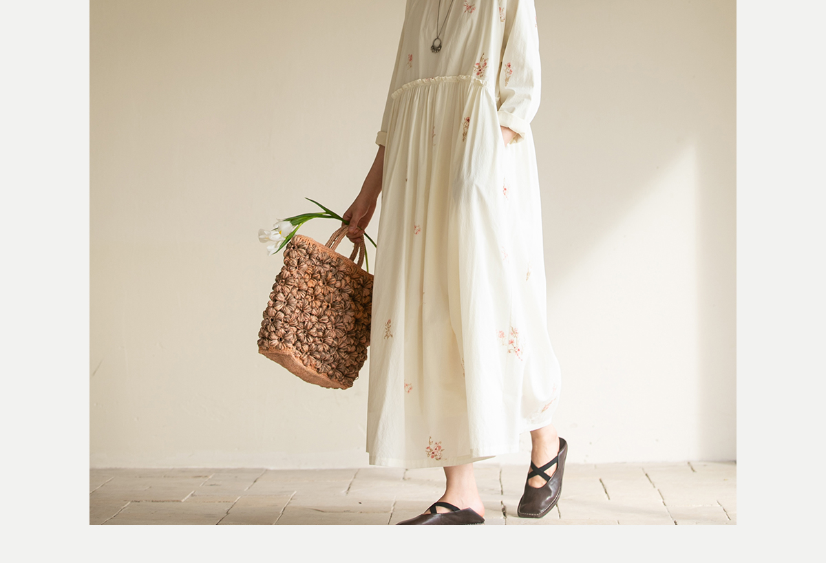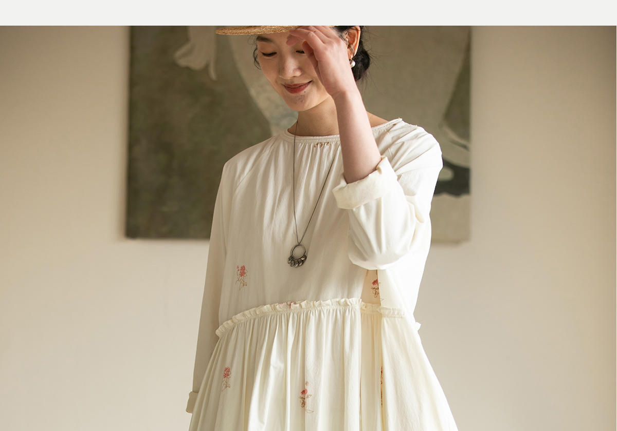 牧衣游原创 匹马棉绢丝混纺连衣裙新款轻薄素雅清新文艺长裙 木绵