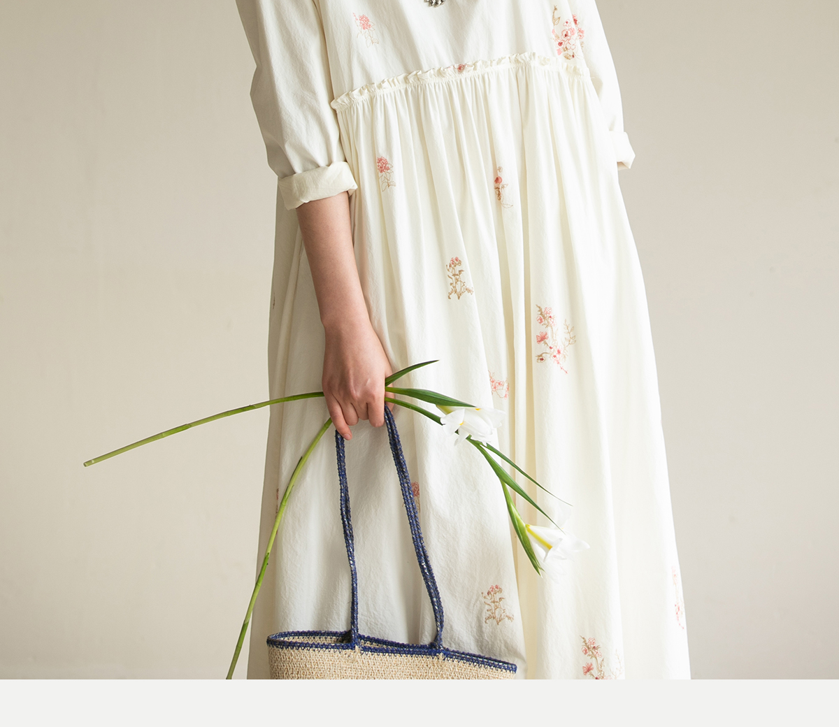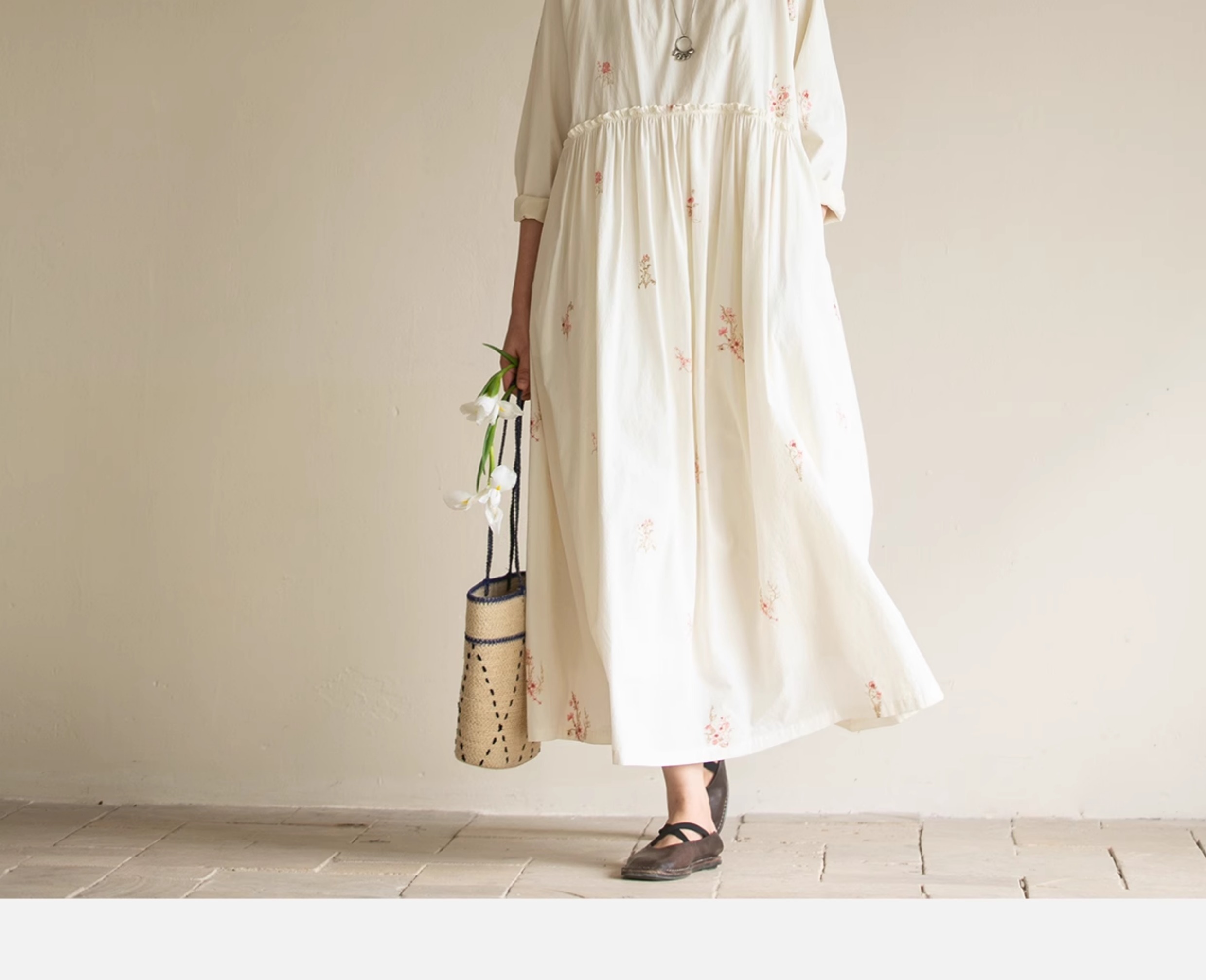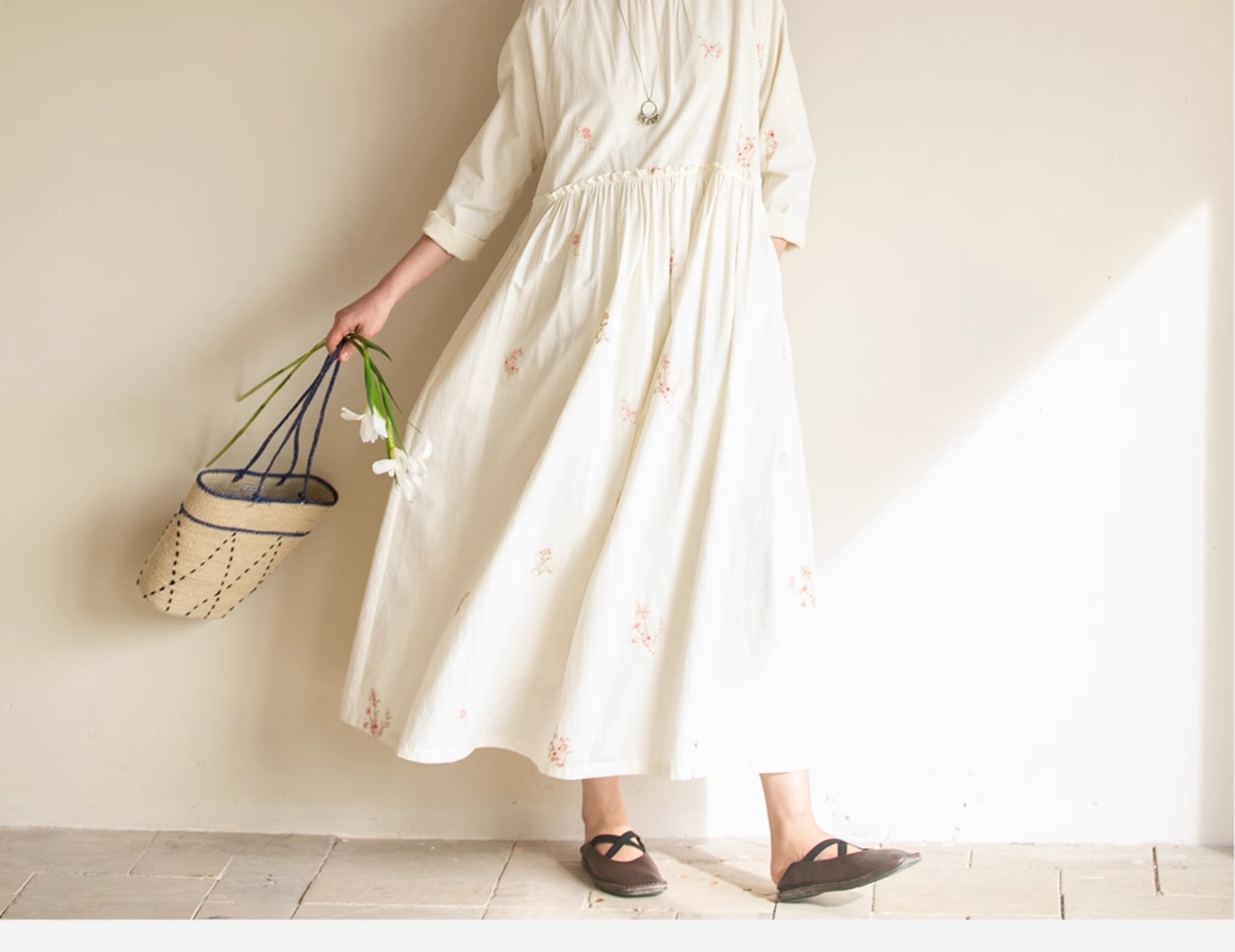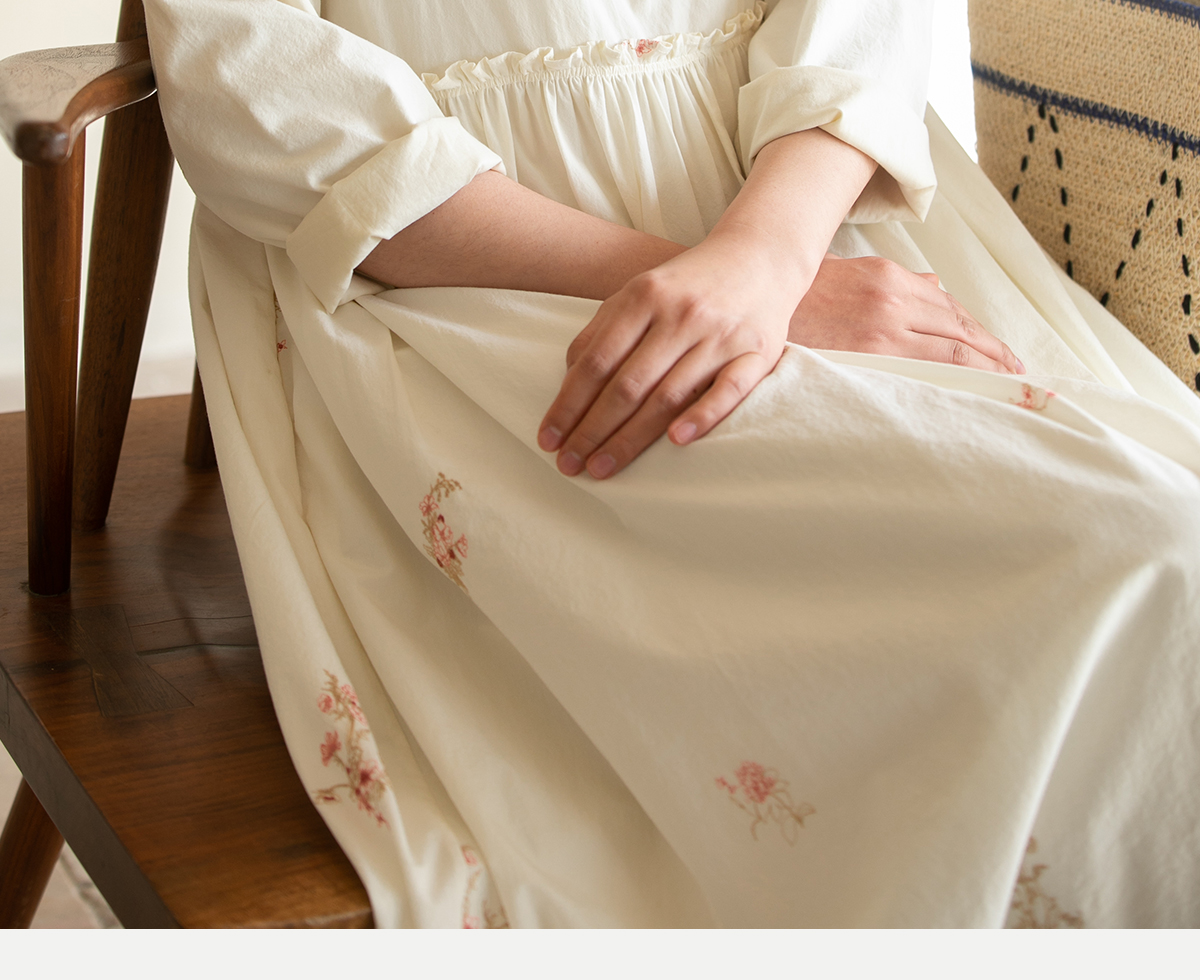 牧衣游原创 匹马棉绢丝混纺连衣裙新款轻薄素雅清新文艺长裙 木绵