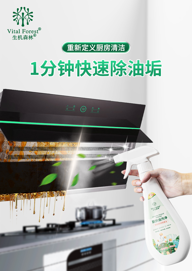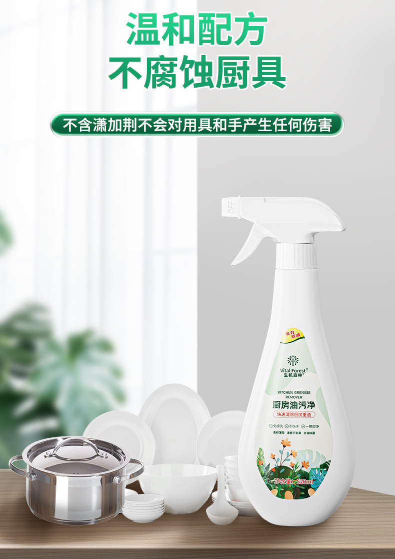 生机森林油污净瓶装 520ml*5瓶(送2个泵头) 温和配方 快速去污