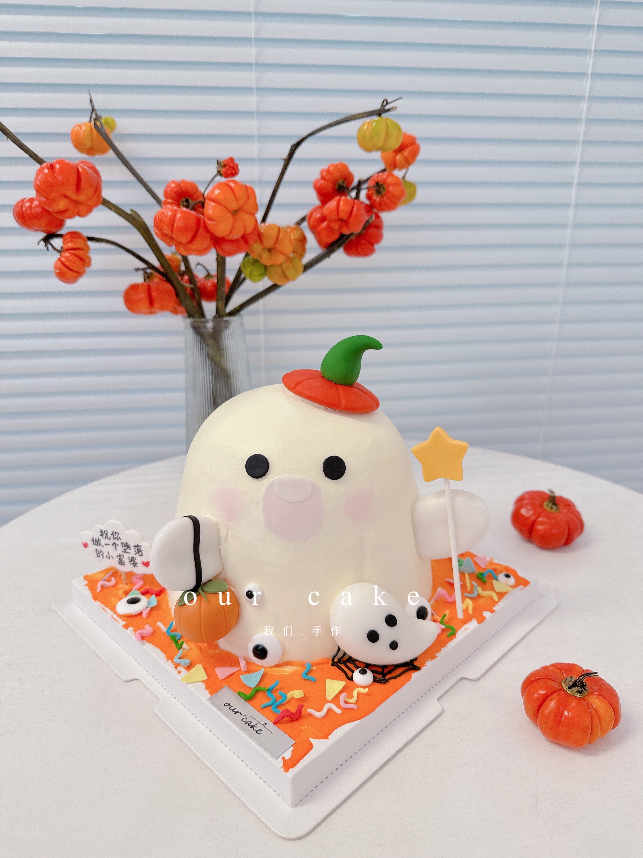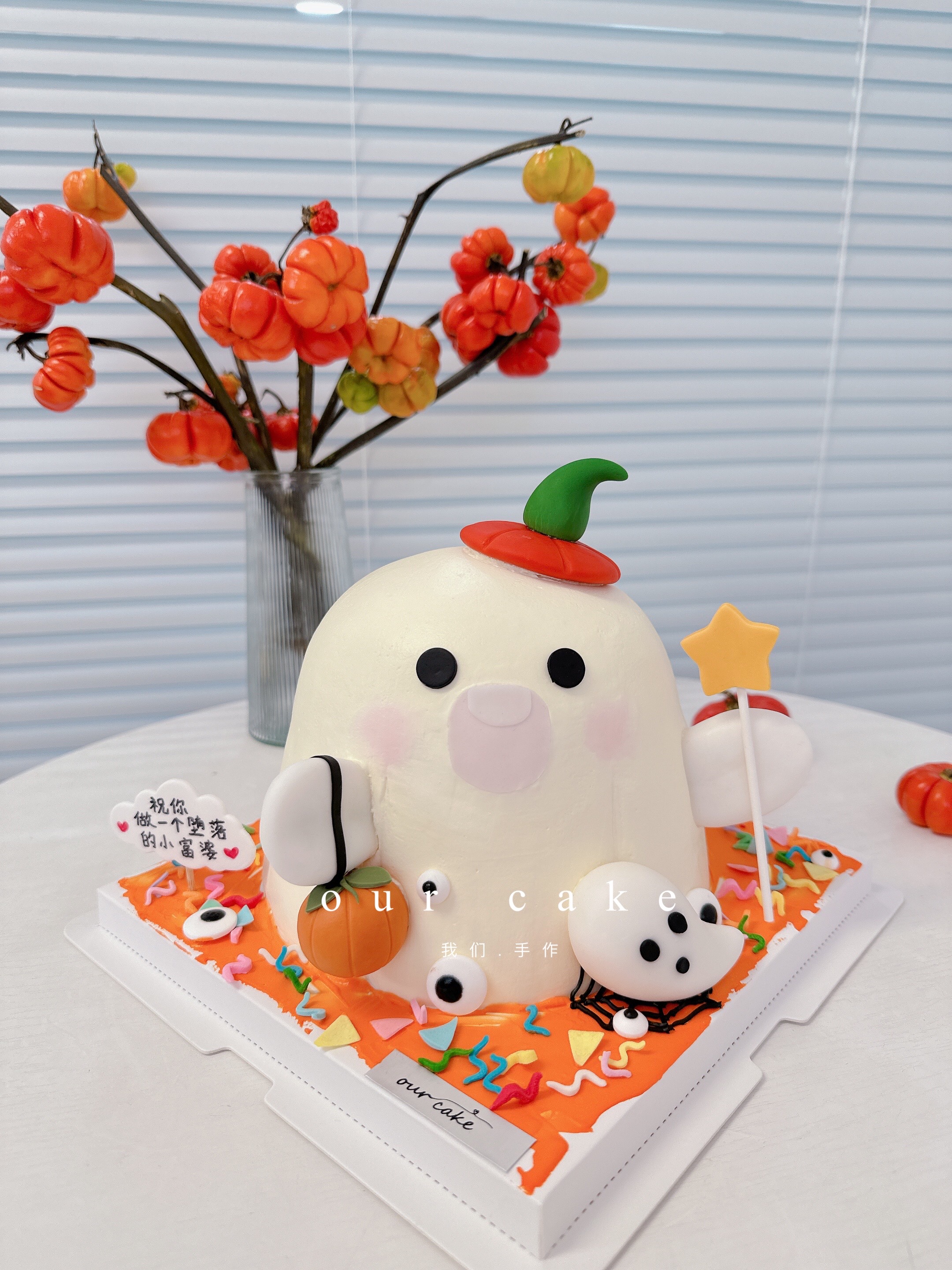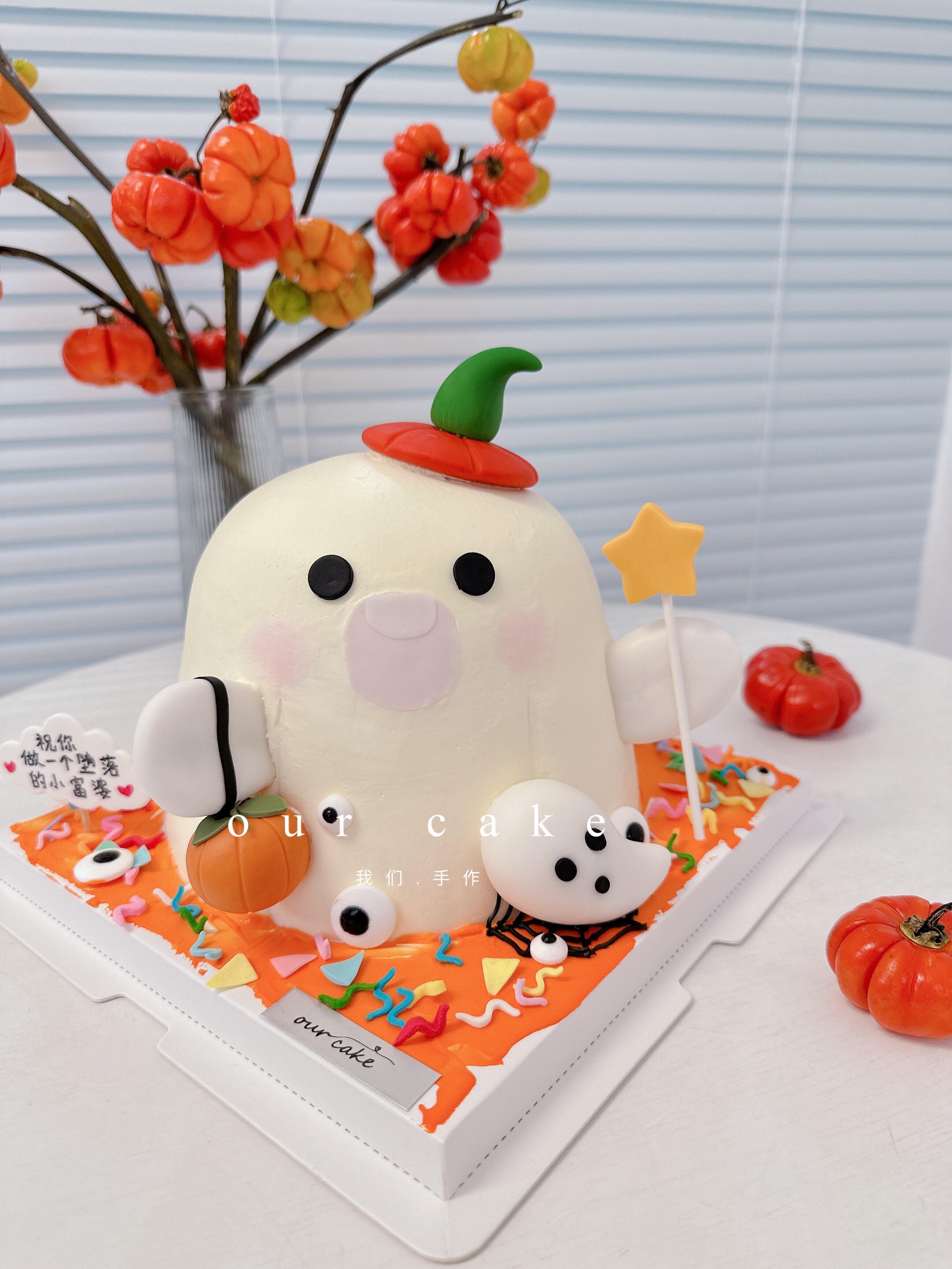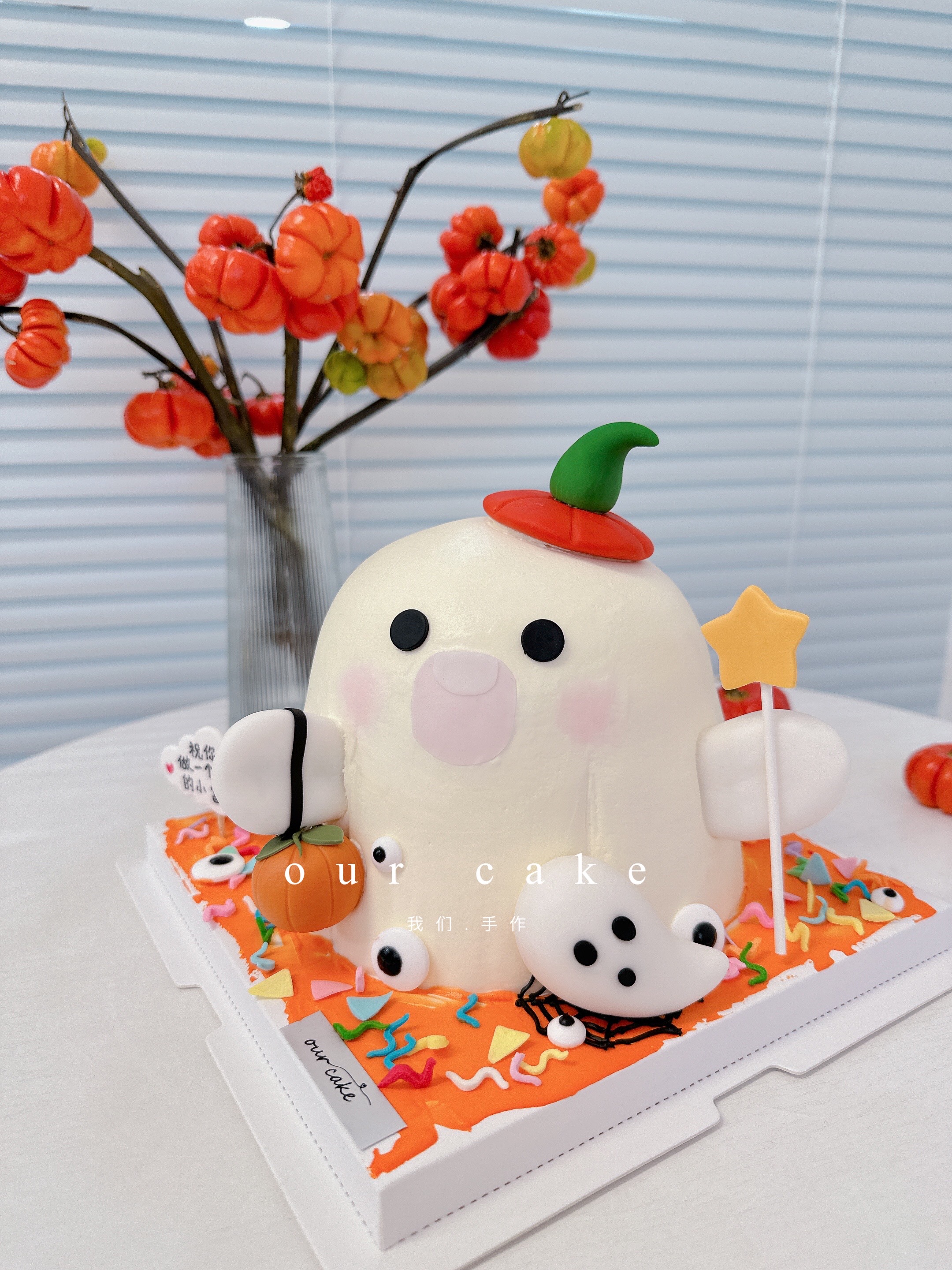 万圣节快乐小幽灵卡通蛋糕-低糖处理无添加