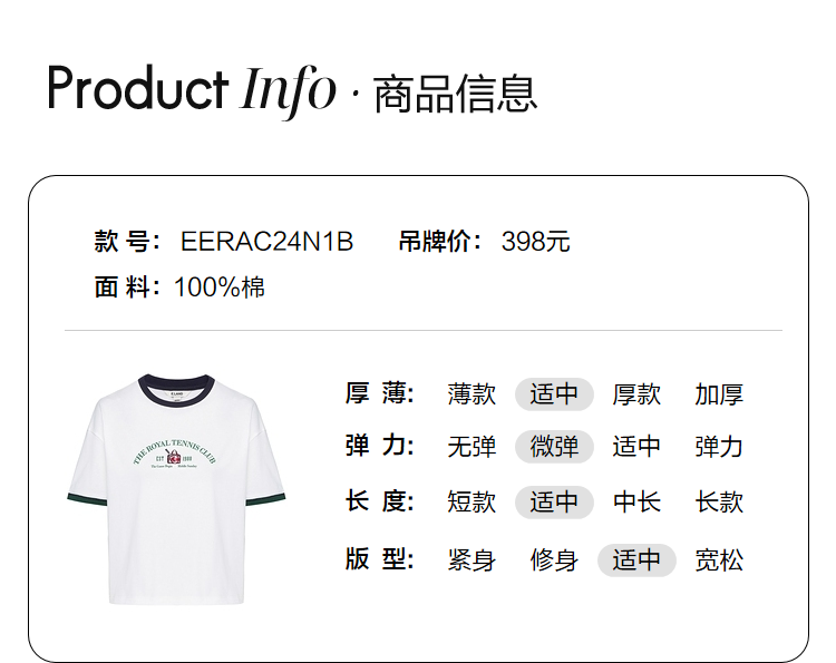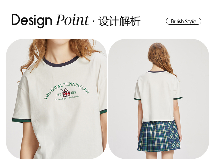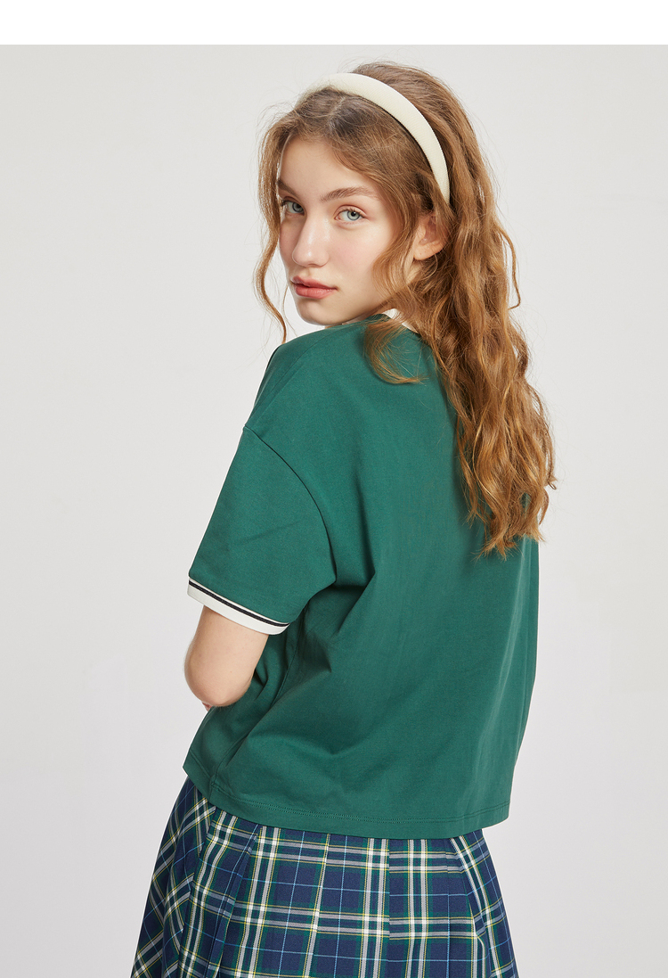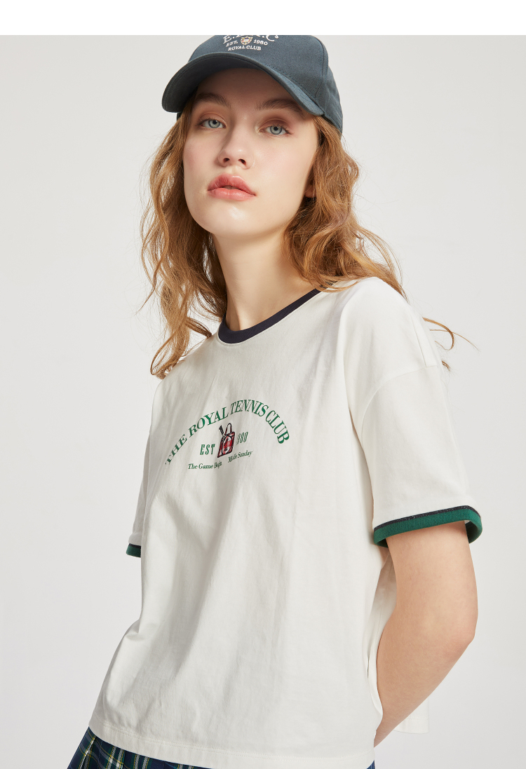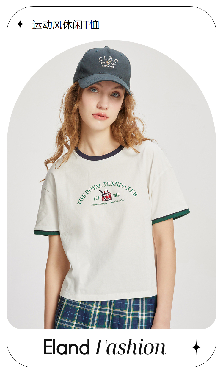 ELAND衣恋2022年春季新款小个子美式复古宽松显瘦纯色T恤短上衣女EERAC24N1B