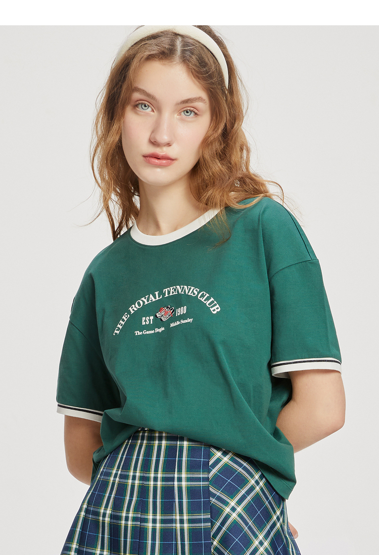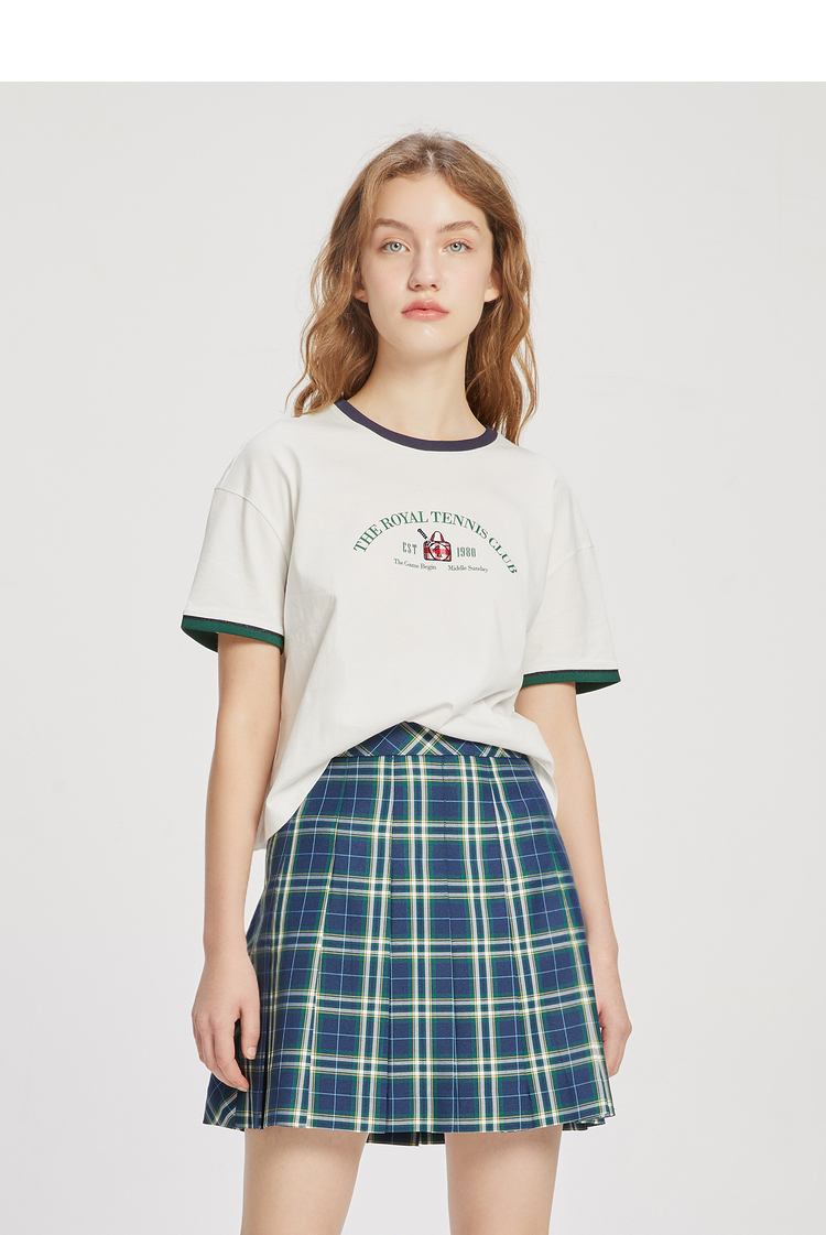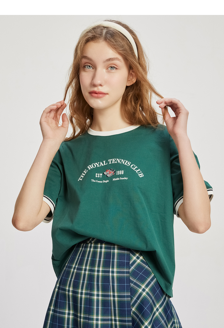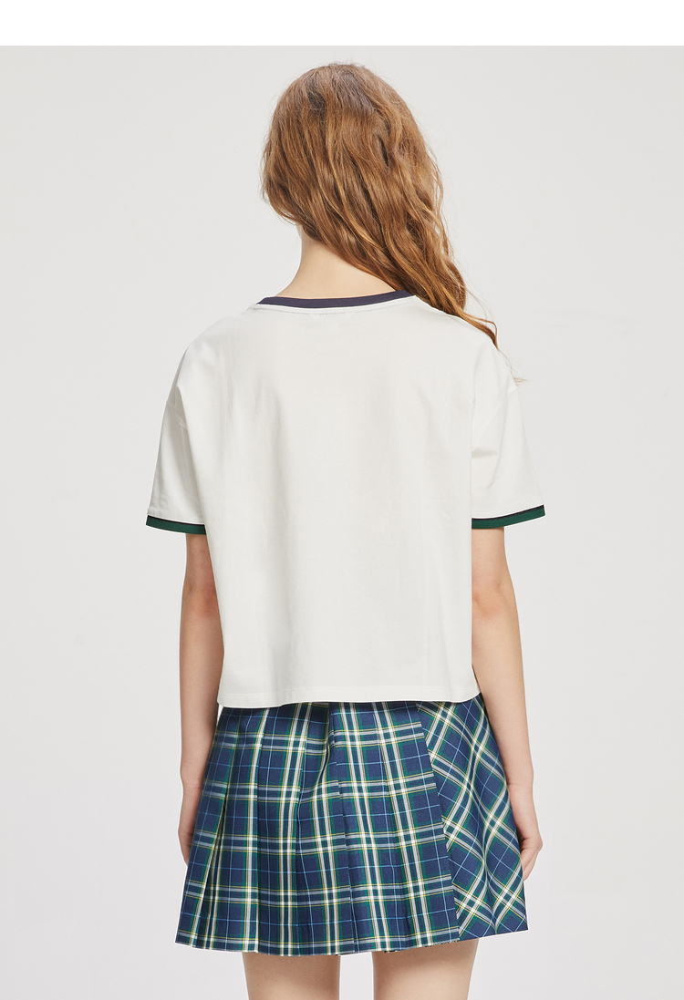 ELAND衣恋2022年春季新款小个子美式复古宽松显瘦纯色T恤短上衣女EERAC24N1B