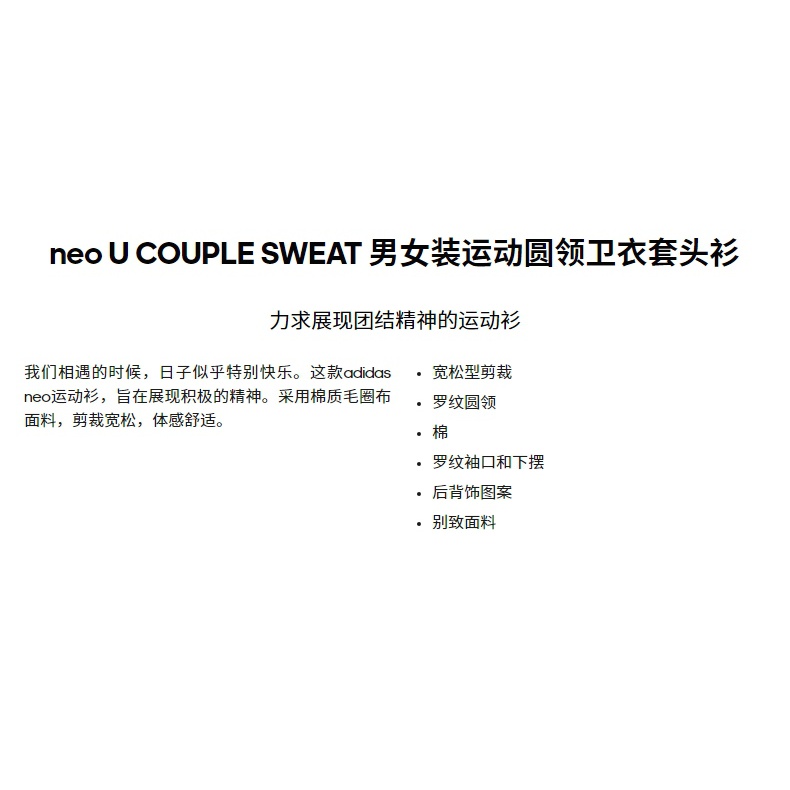 Adidas阿迪达斯NEO男女装卫衣2022春季新款运动休闲套头衫HM7434