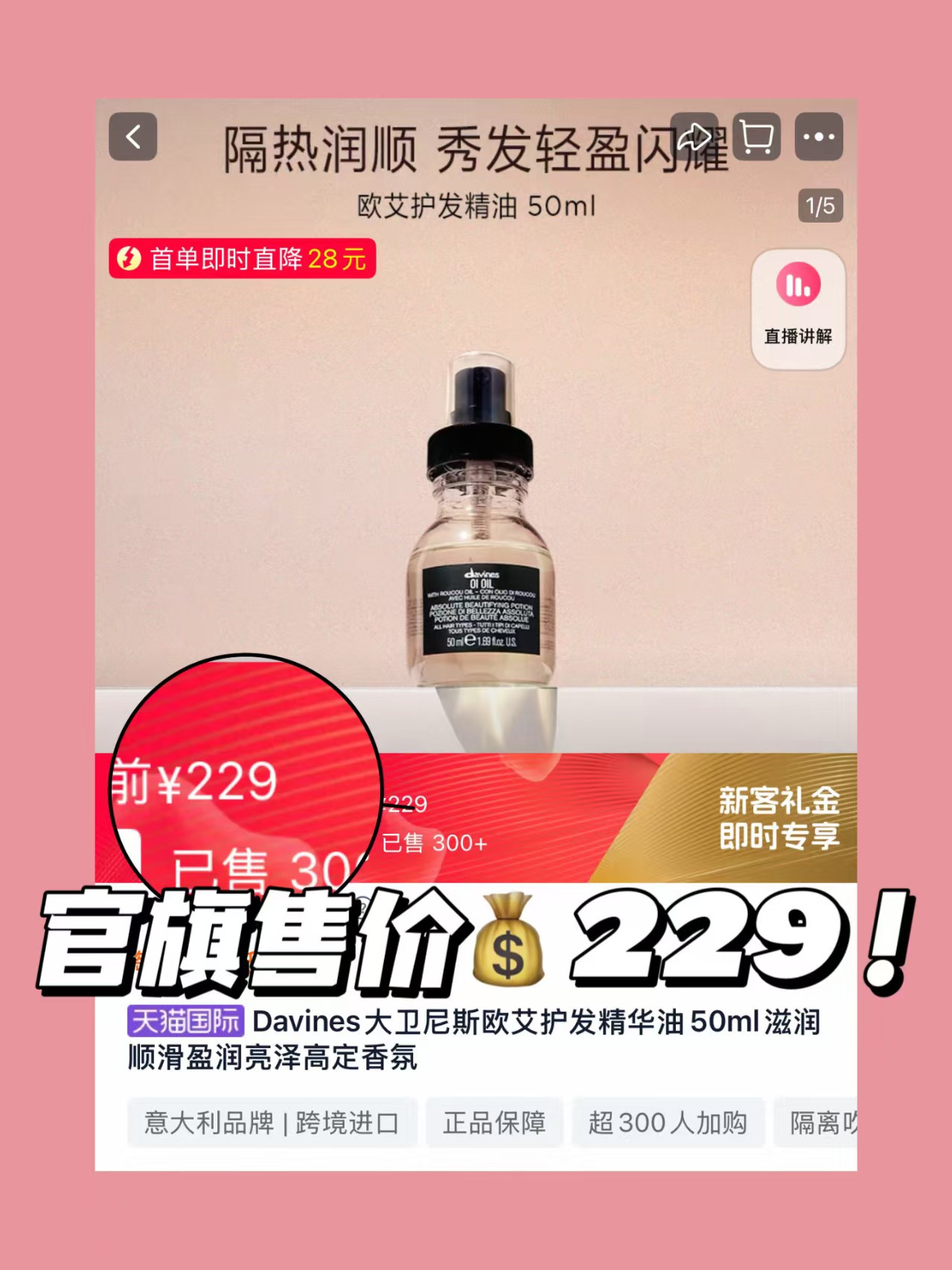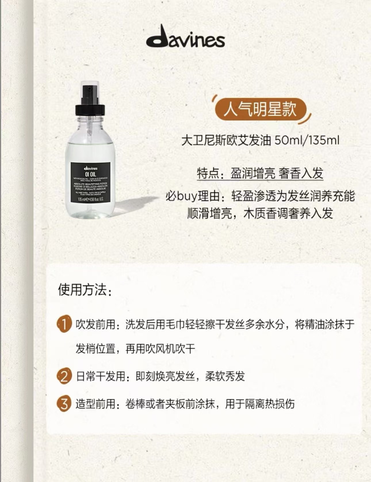 【品名】Davines大卫尼斯欧艾护发精华油50ml