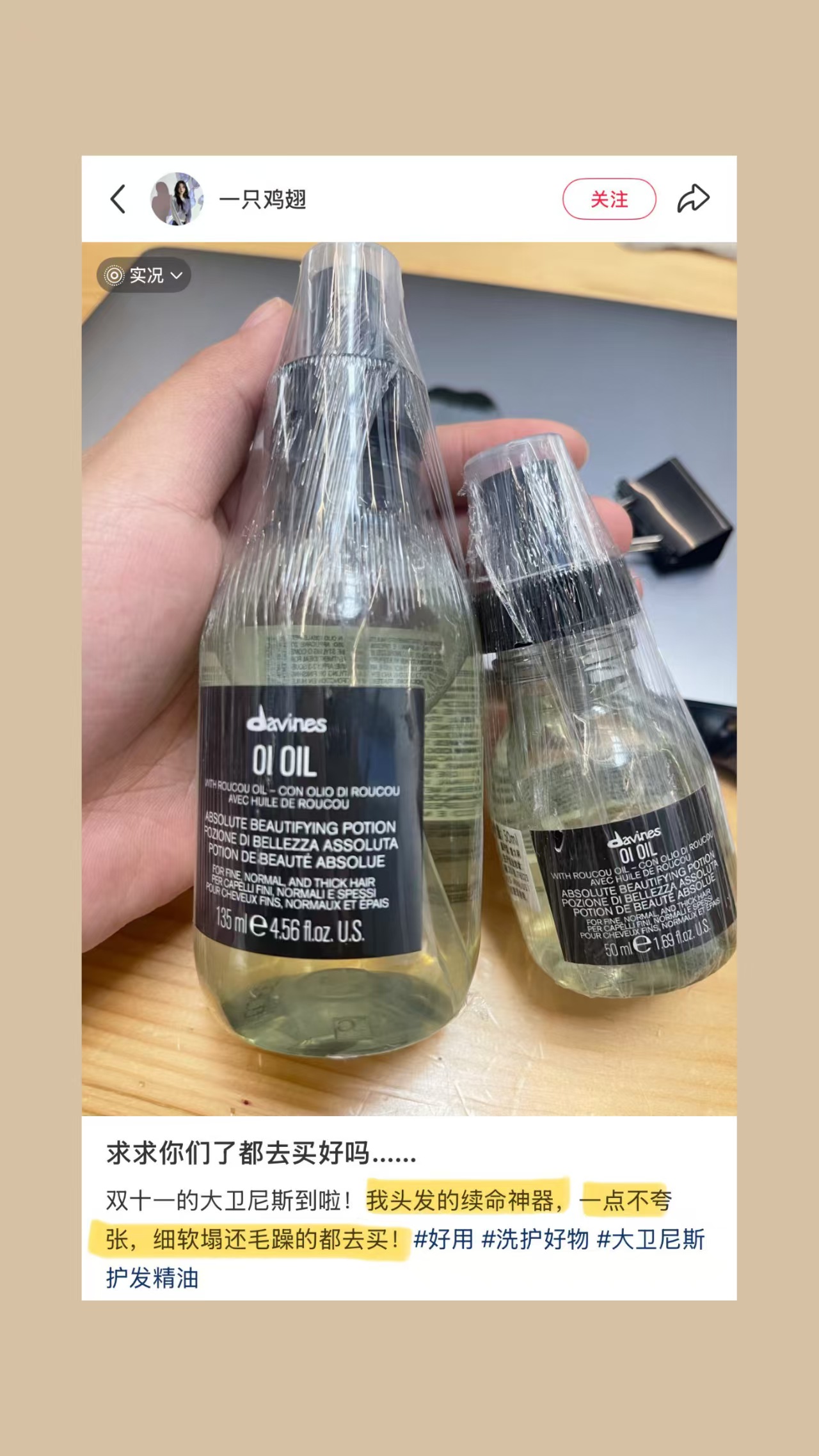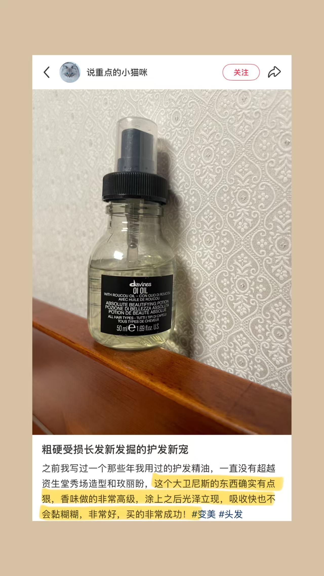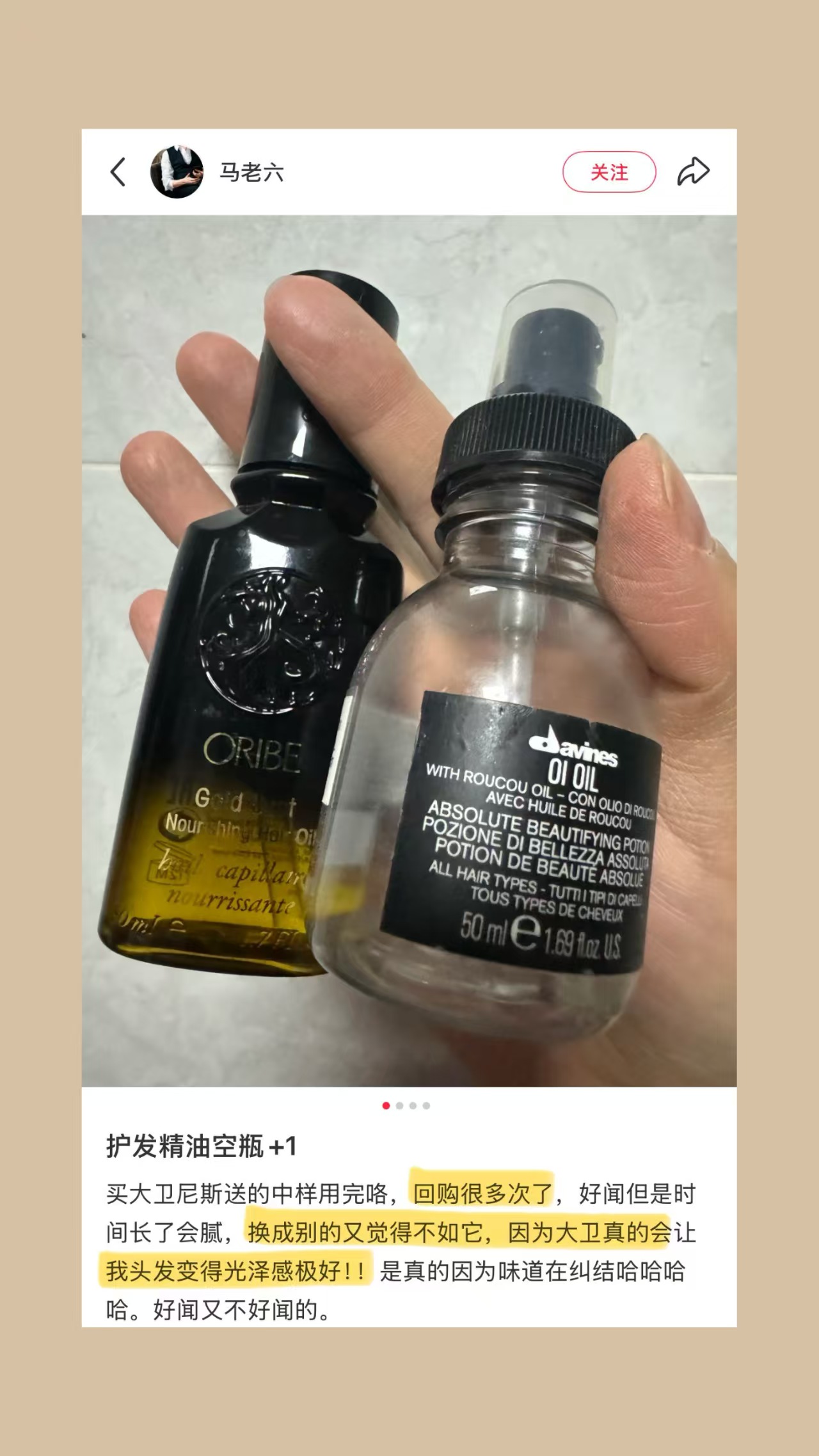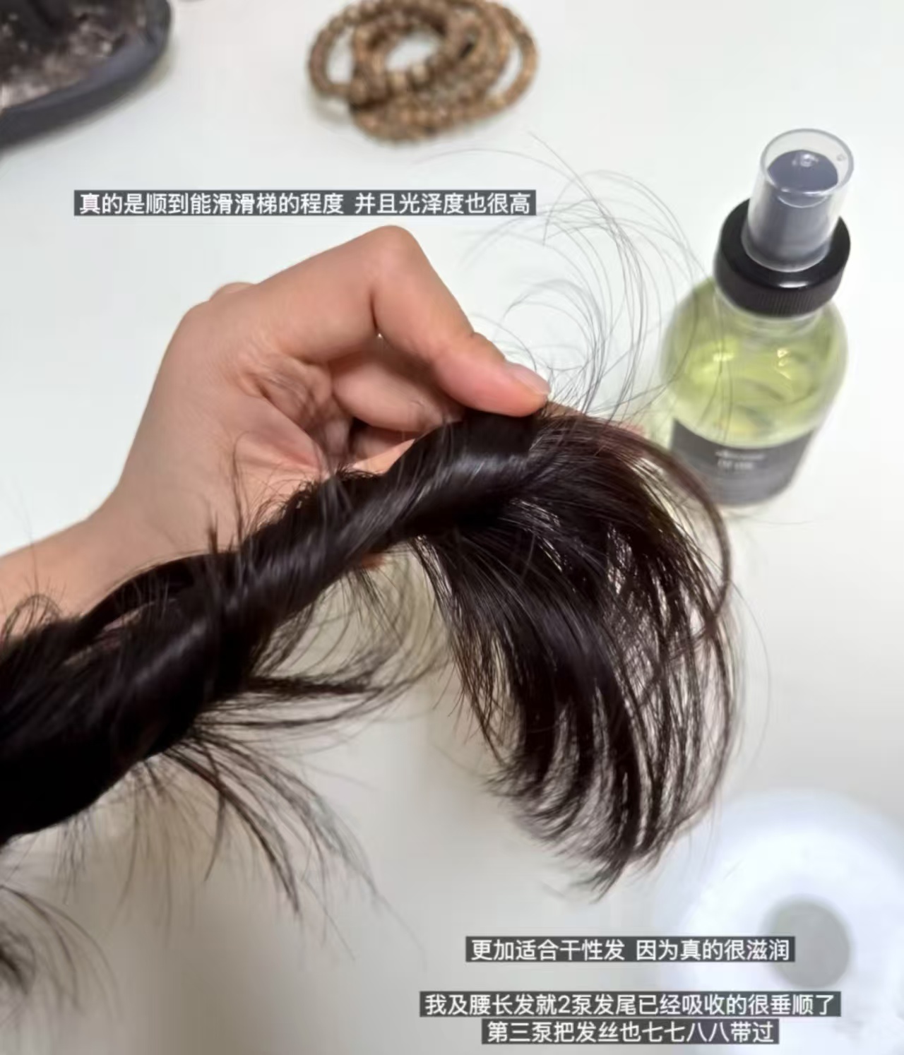 3️⃣日常干发使用,抹一丢丢在头发丝上