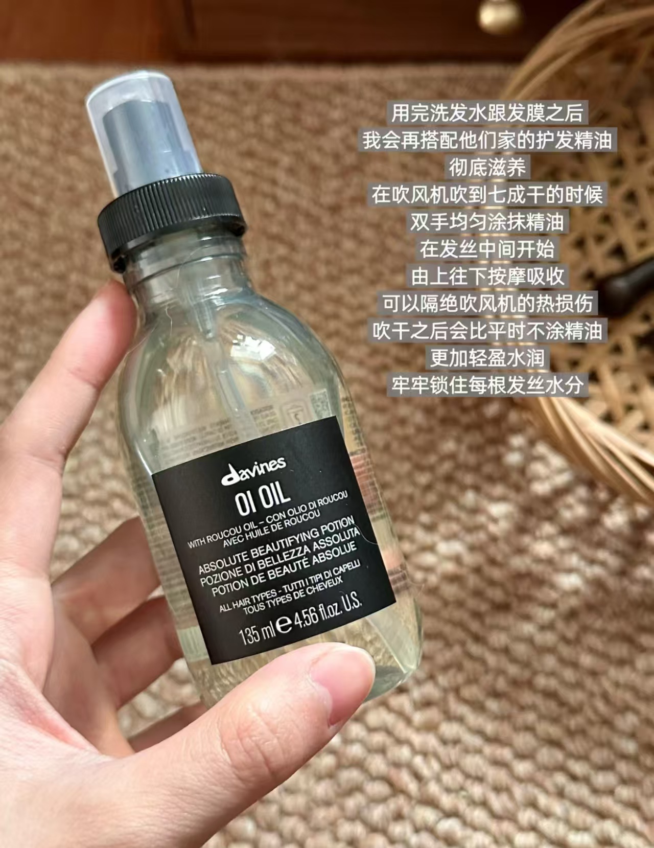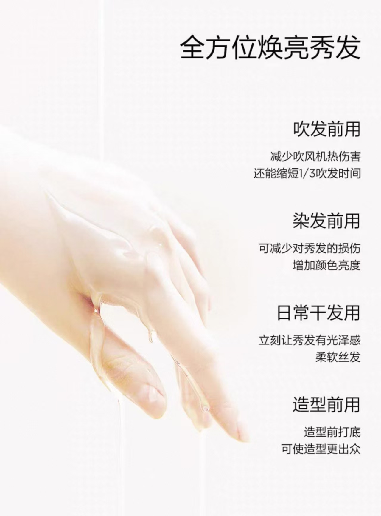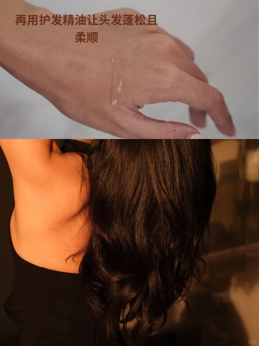 1️⃣洗完头发以后,抹在发尾,在吹发之前使用