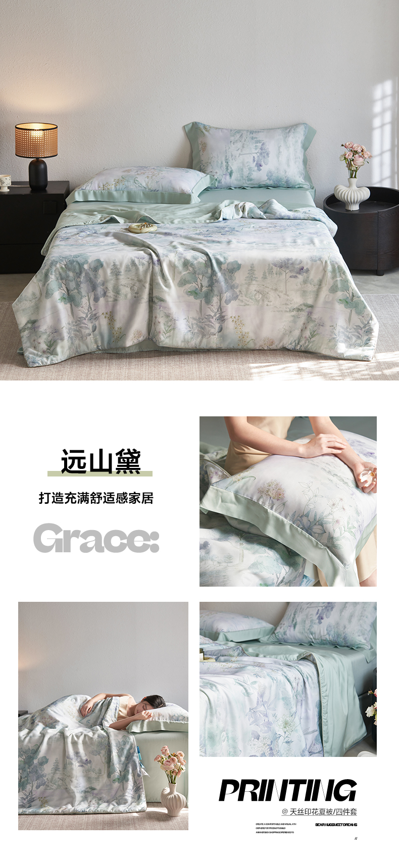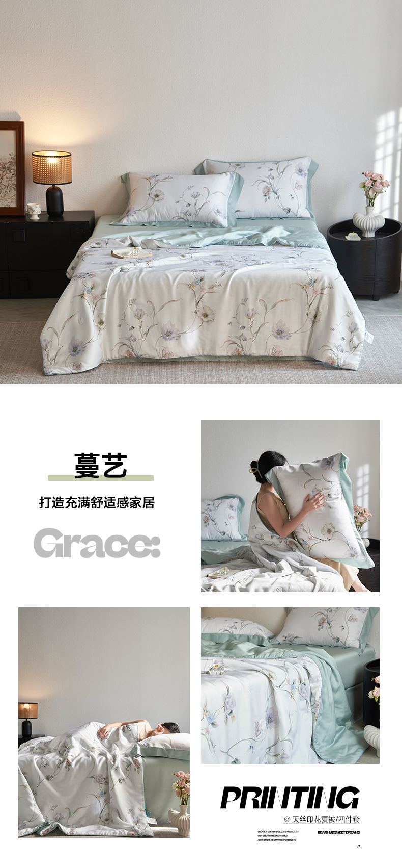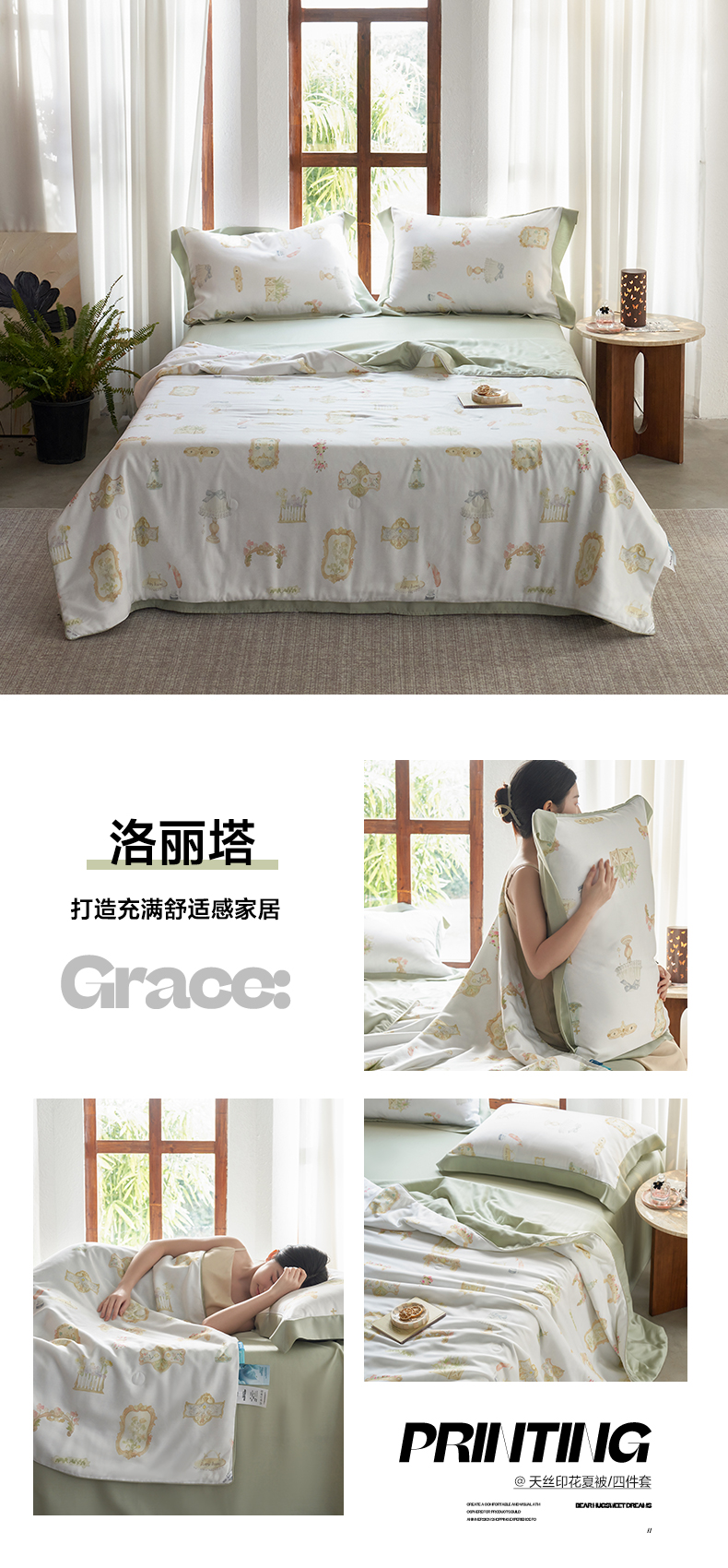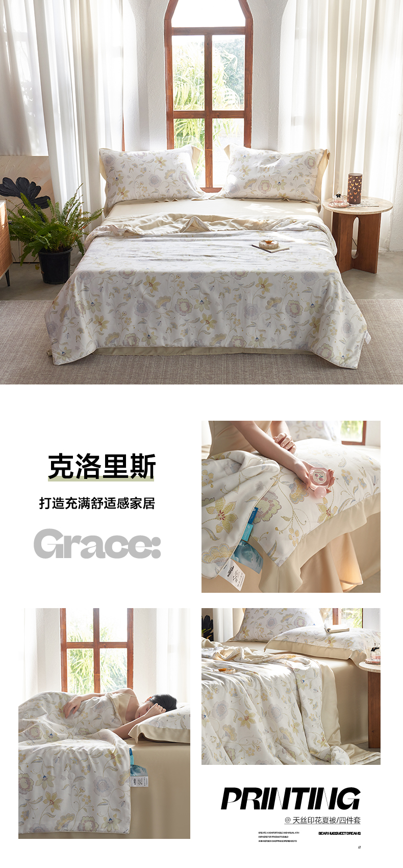 自然醒天丝数码印花抗菌夏被凉感莱赛尔夏被四件套空调被薄款被可机洗LFS