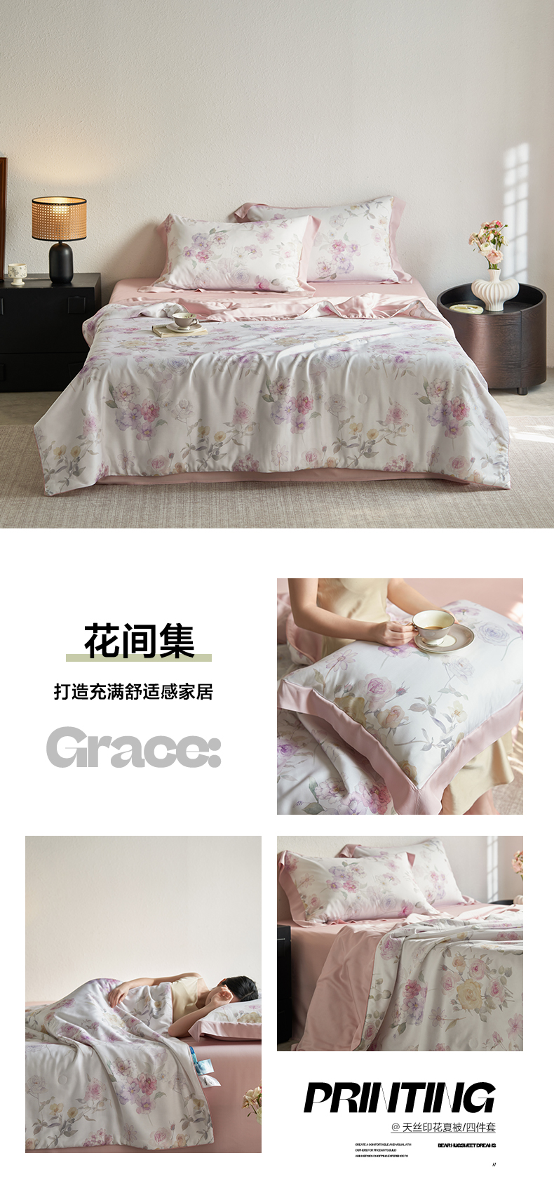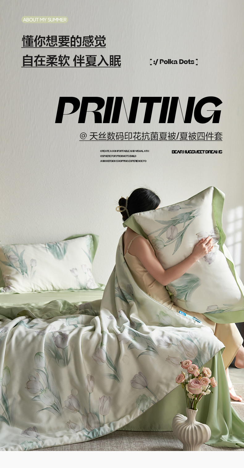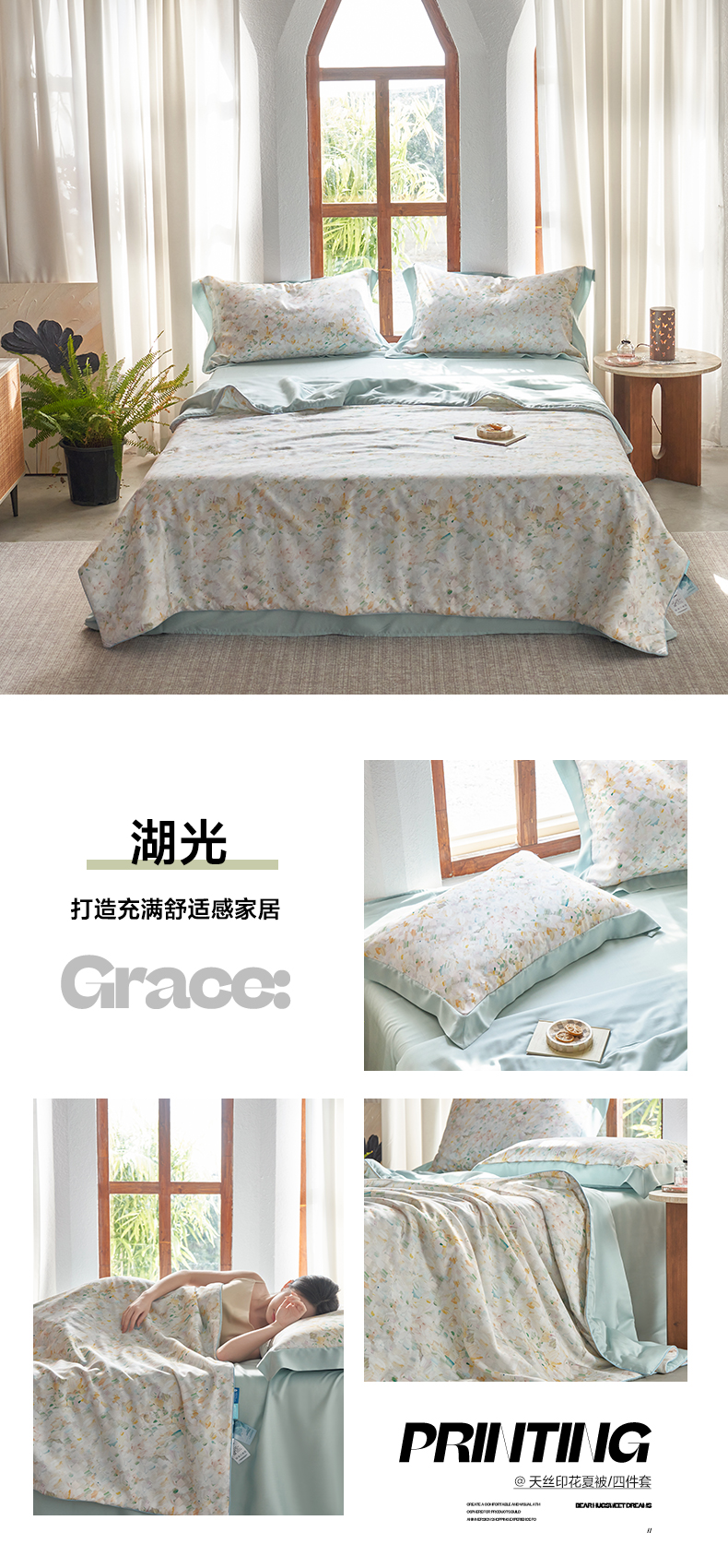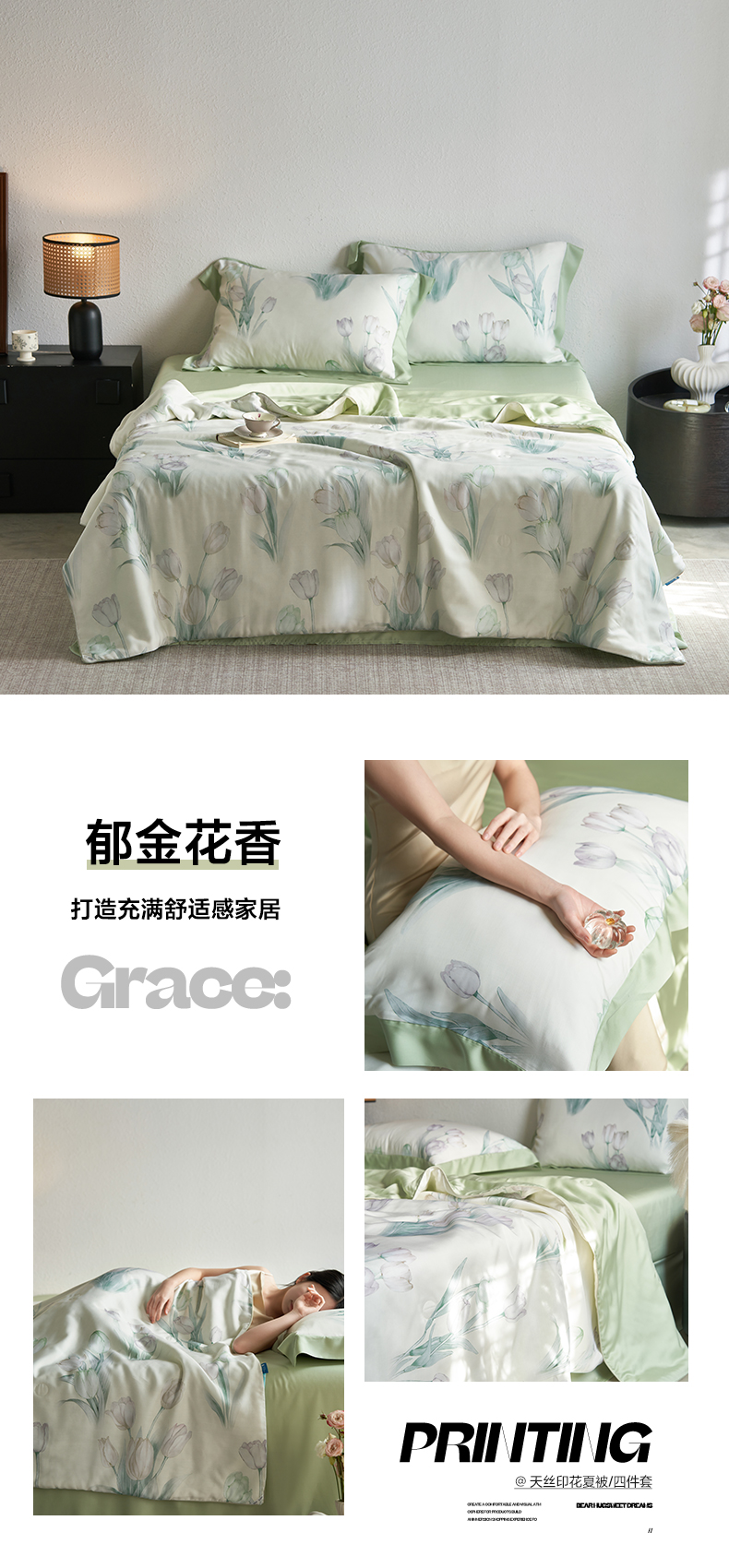 自然醒天丝数码印花抗菌夏被凉感莱赛尔夏被四件套空调被薄款被可机洗LFS
