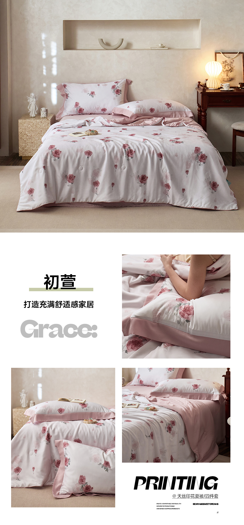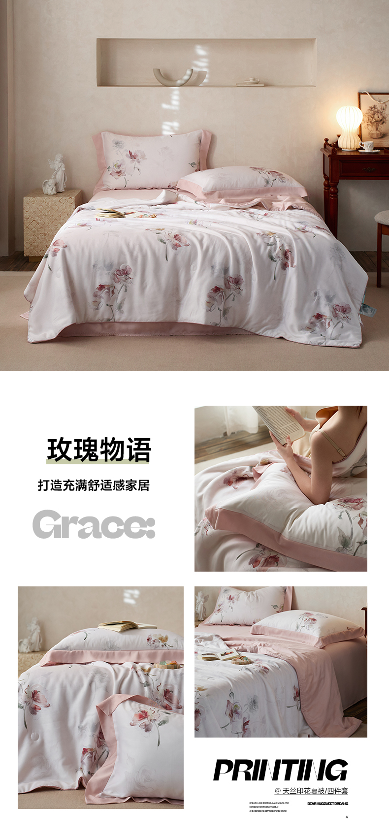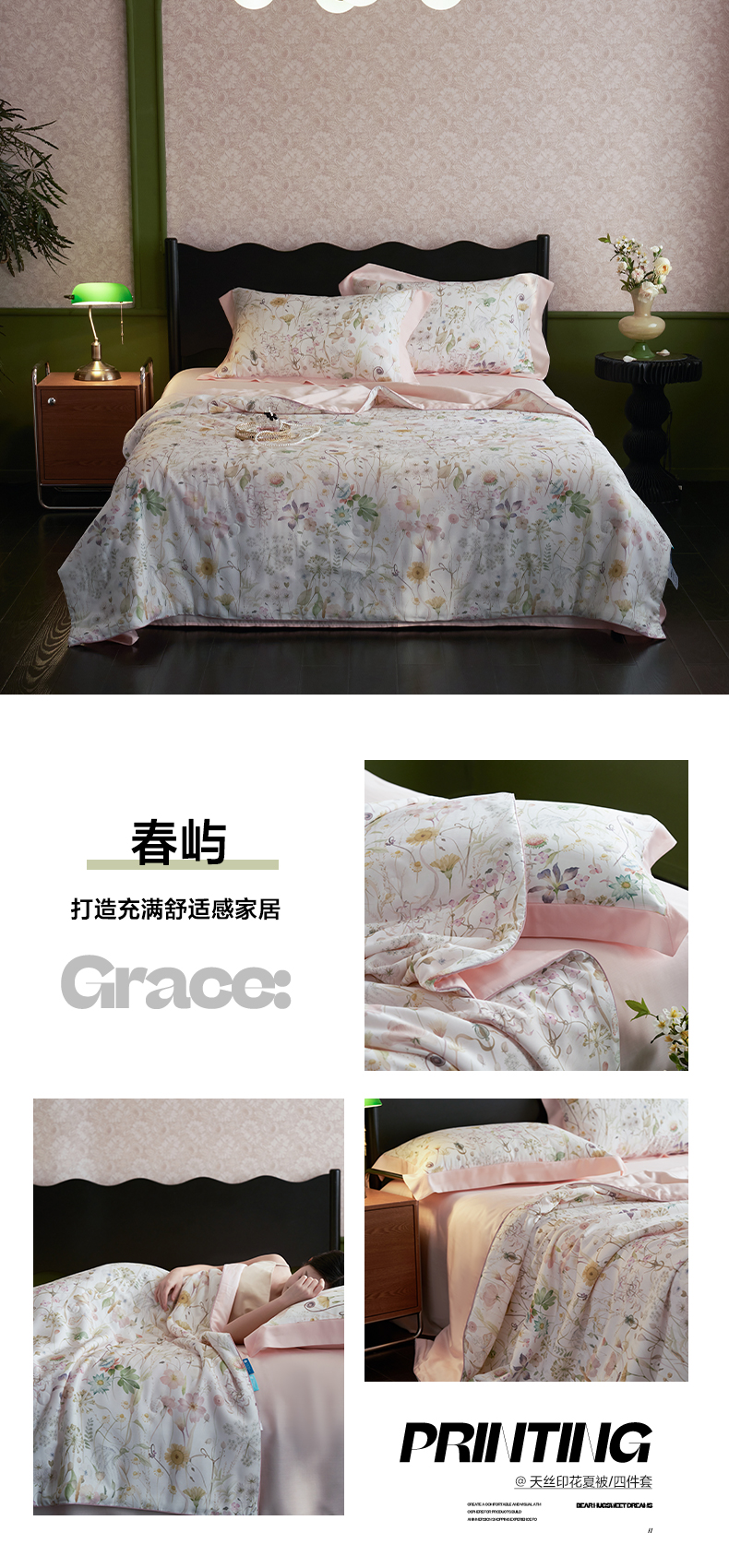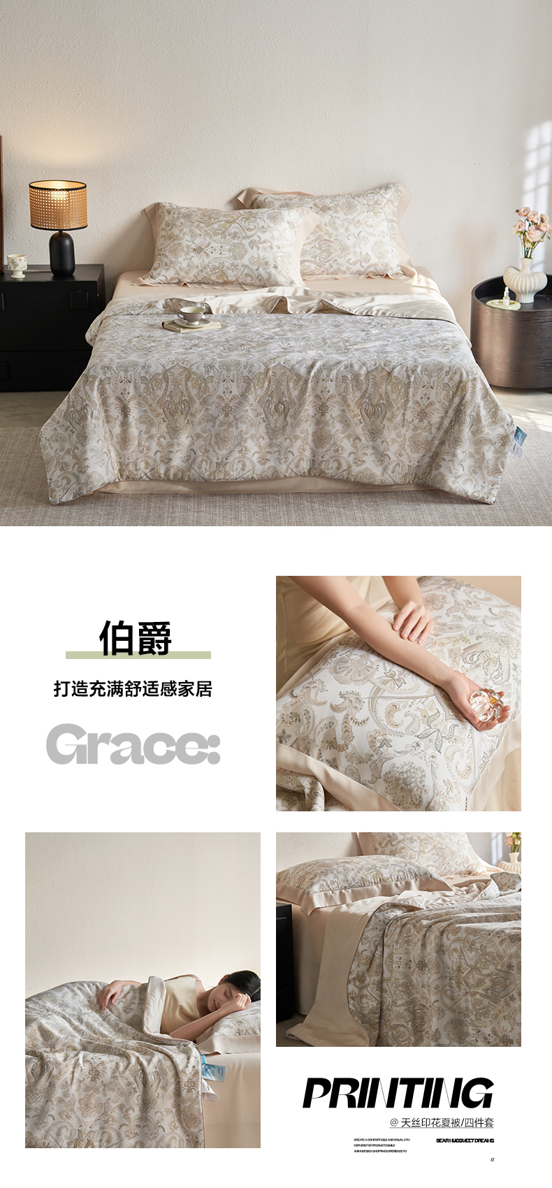 自然醒天丝数码印花抗菌夏被凉感莱赛尔夏被四件套空调被薄款被可机洗LFS
