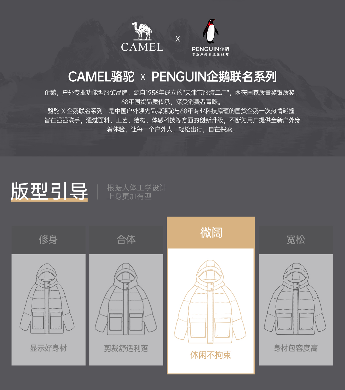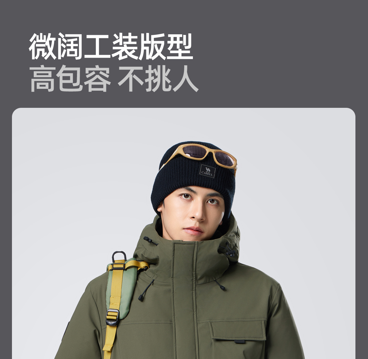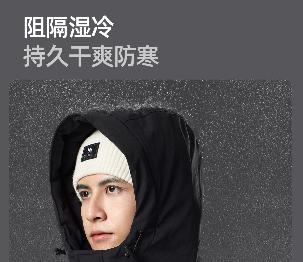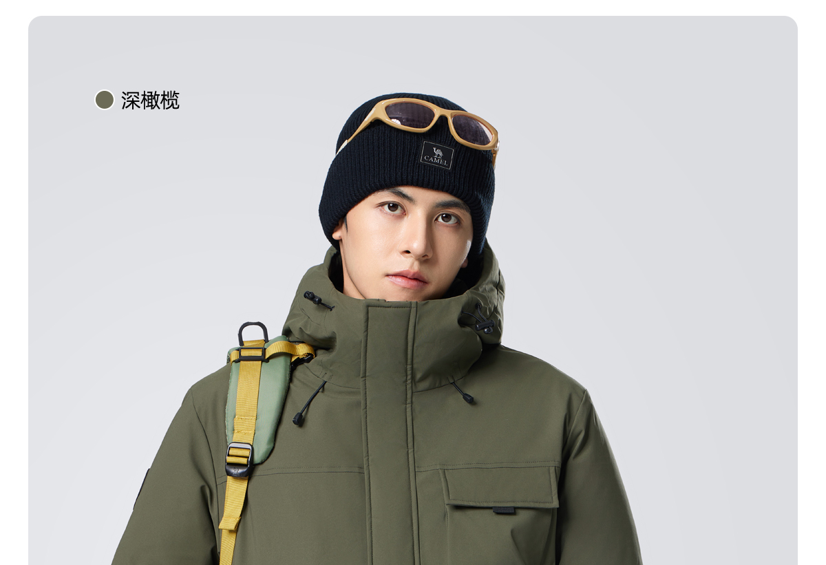 骆驼男装短款羽绒服男冬季新款连帽工装加厚保暖防风防水外套 M34CW02696