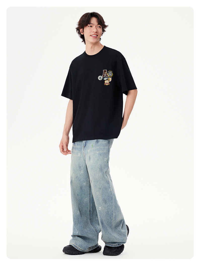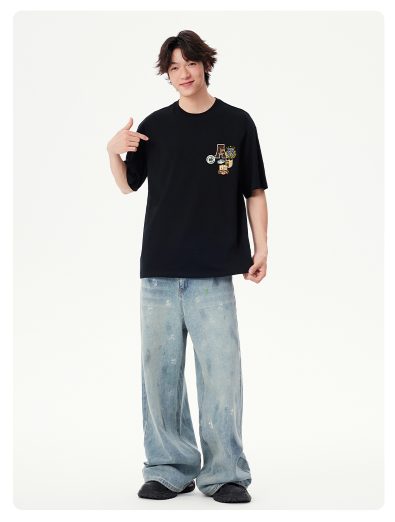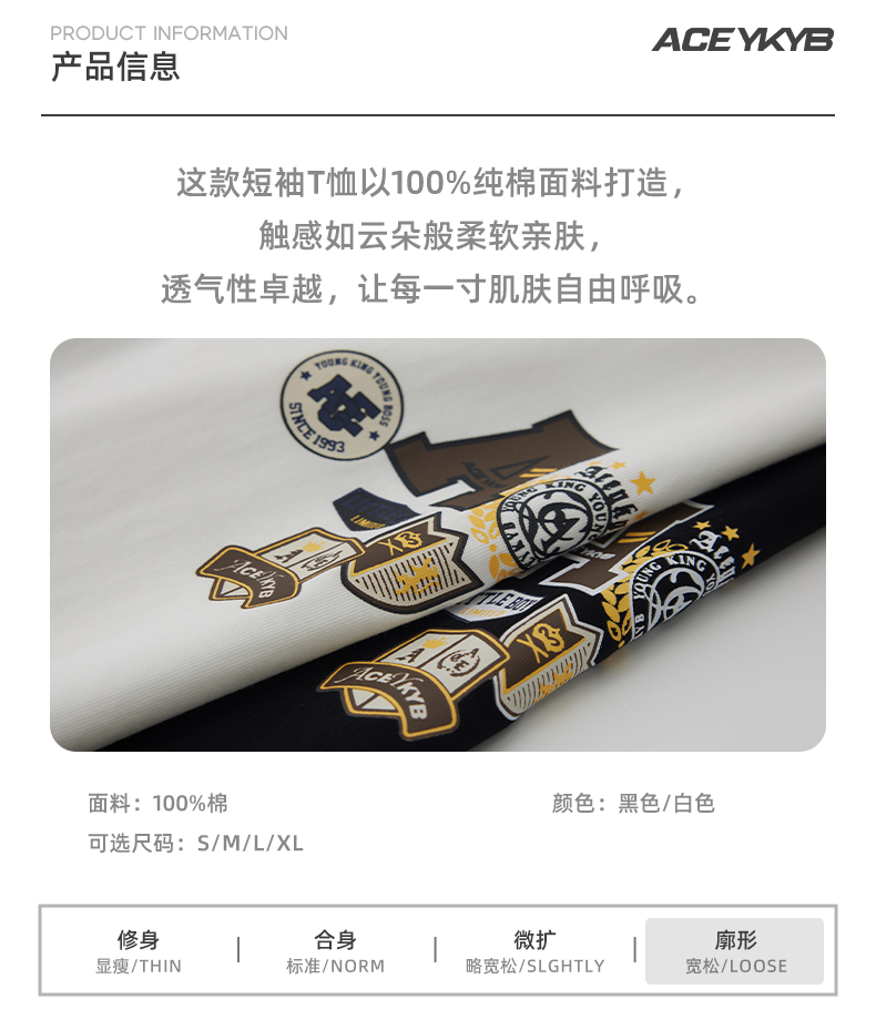 YKYB黄子韬短袖T恤透气宽松徽章百搭烫画精工云朵上衣Y52NDT102