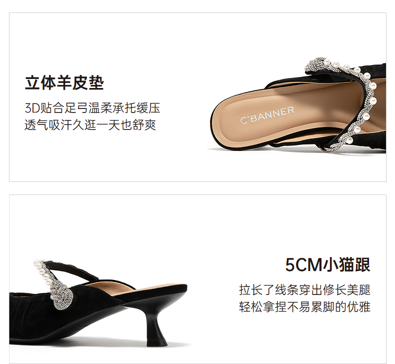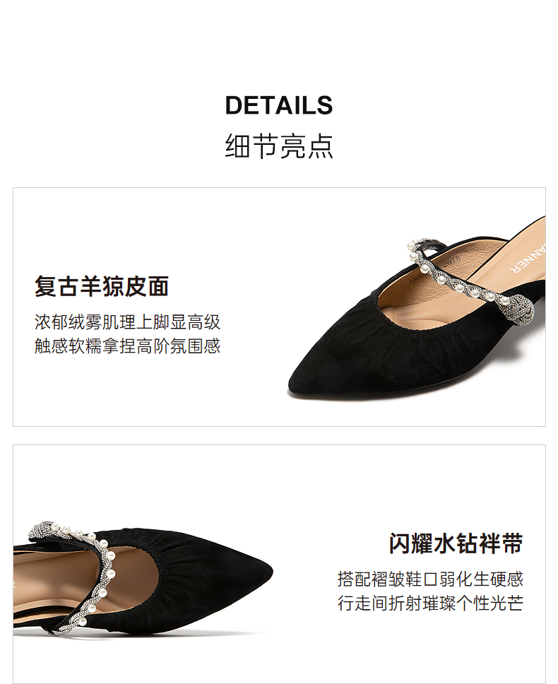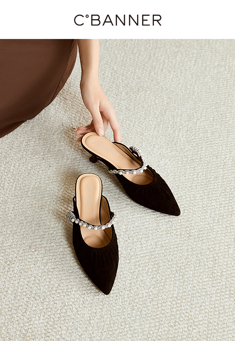 千百度夏季时装半凉气质肉桂卷静音鞋A23258205