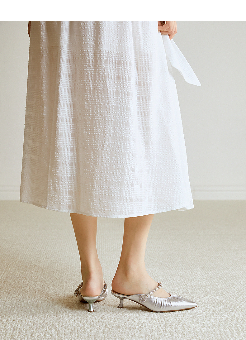 【静音系列】千百度细高跟褶皱包头拖女2026夏季新款外穿凉拖鞋A26285618