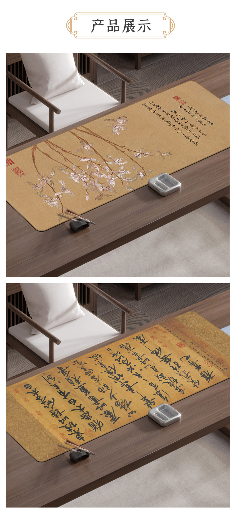 国风书画垫兰亭序颜真卿创意国潮古风书法写字垫加厚锁边代毛毡垫国风鼠标垫