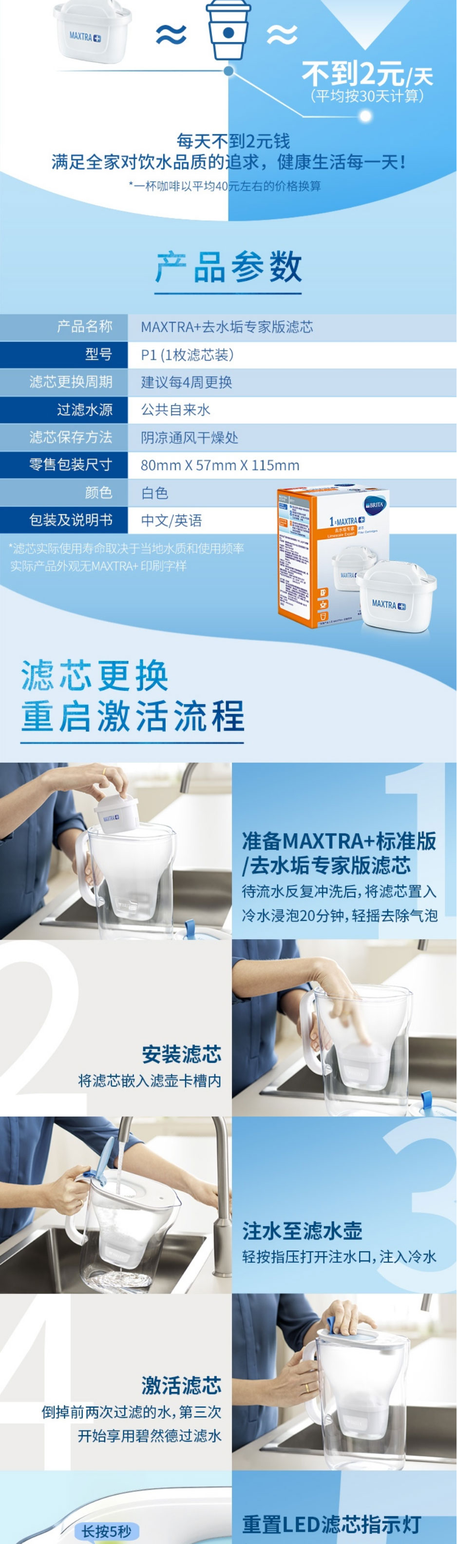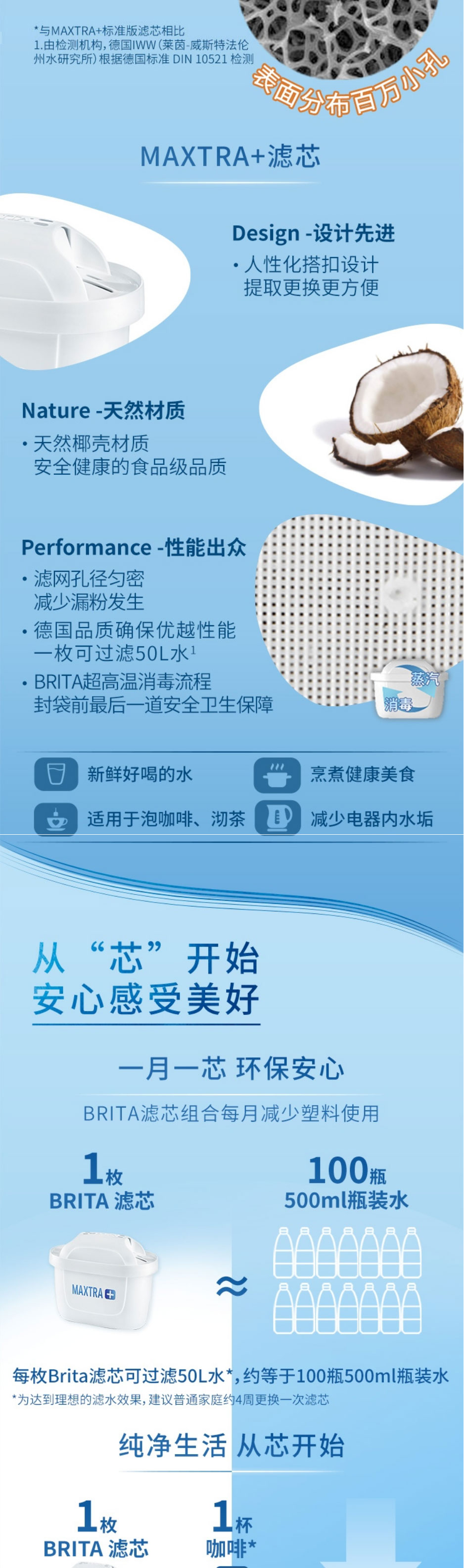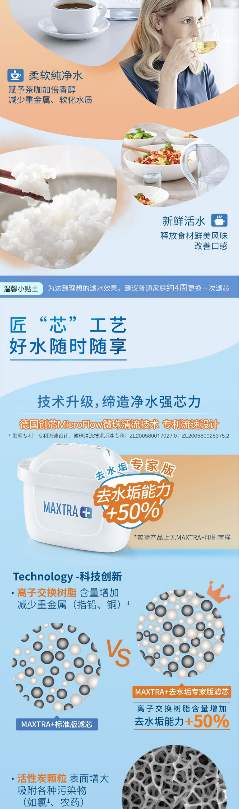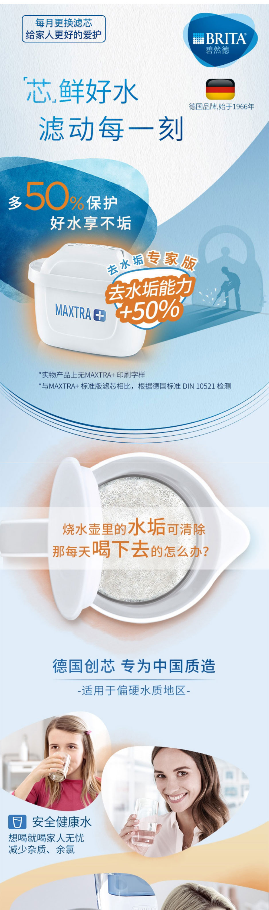 碧然德(BRITA)家用净水壶 滤水壶滤芯 MAXTRA+LE 去水垢专家滤芯 6枚装