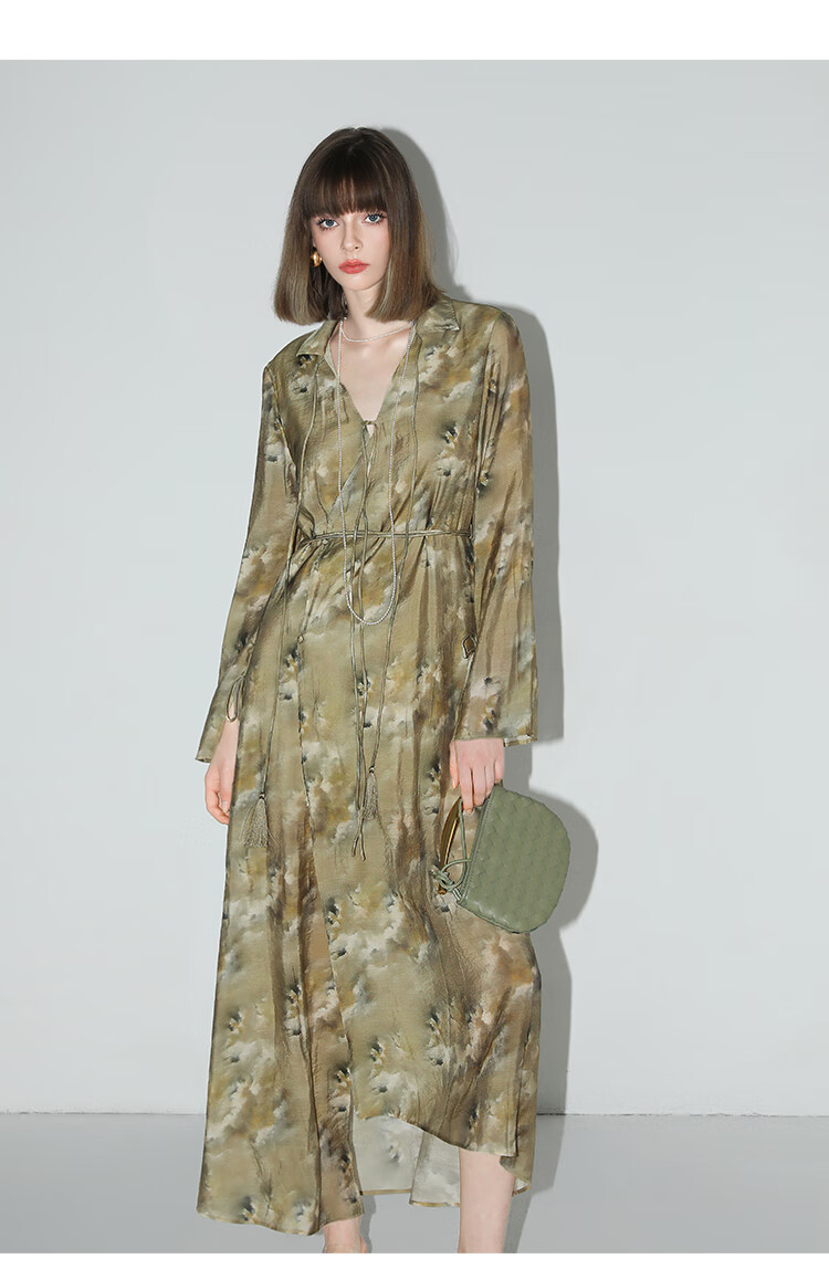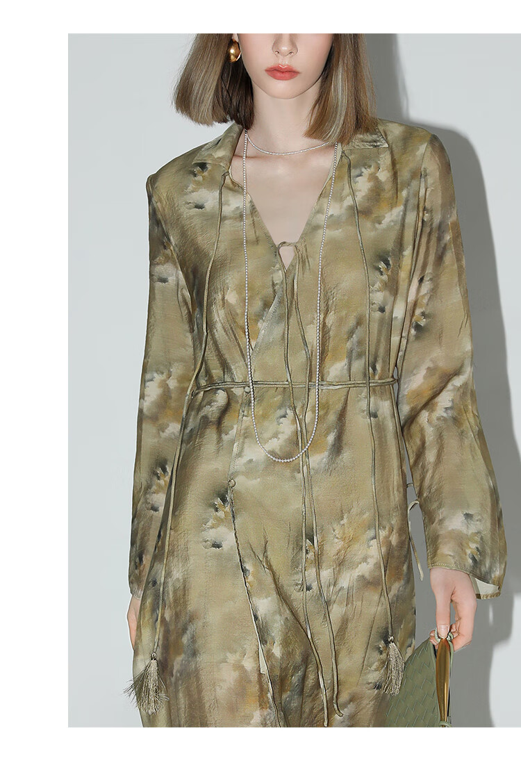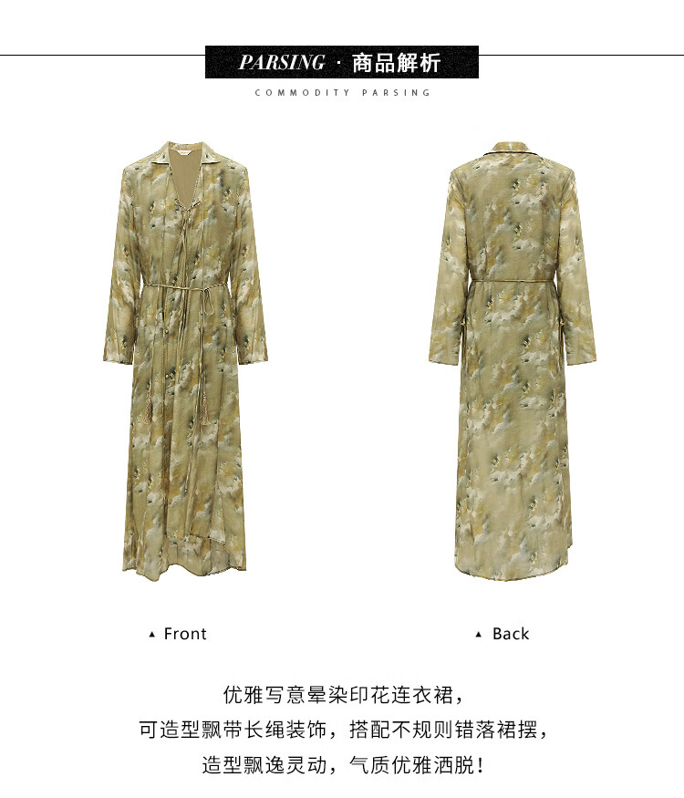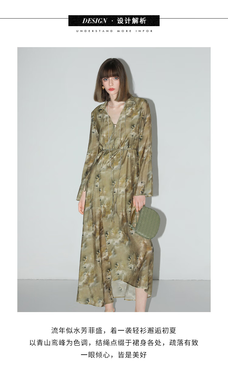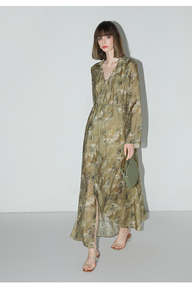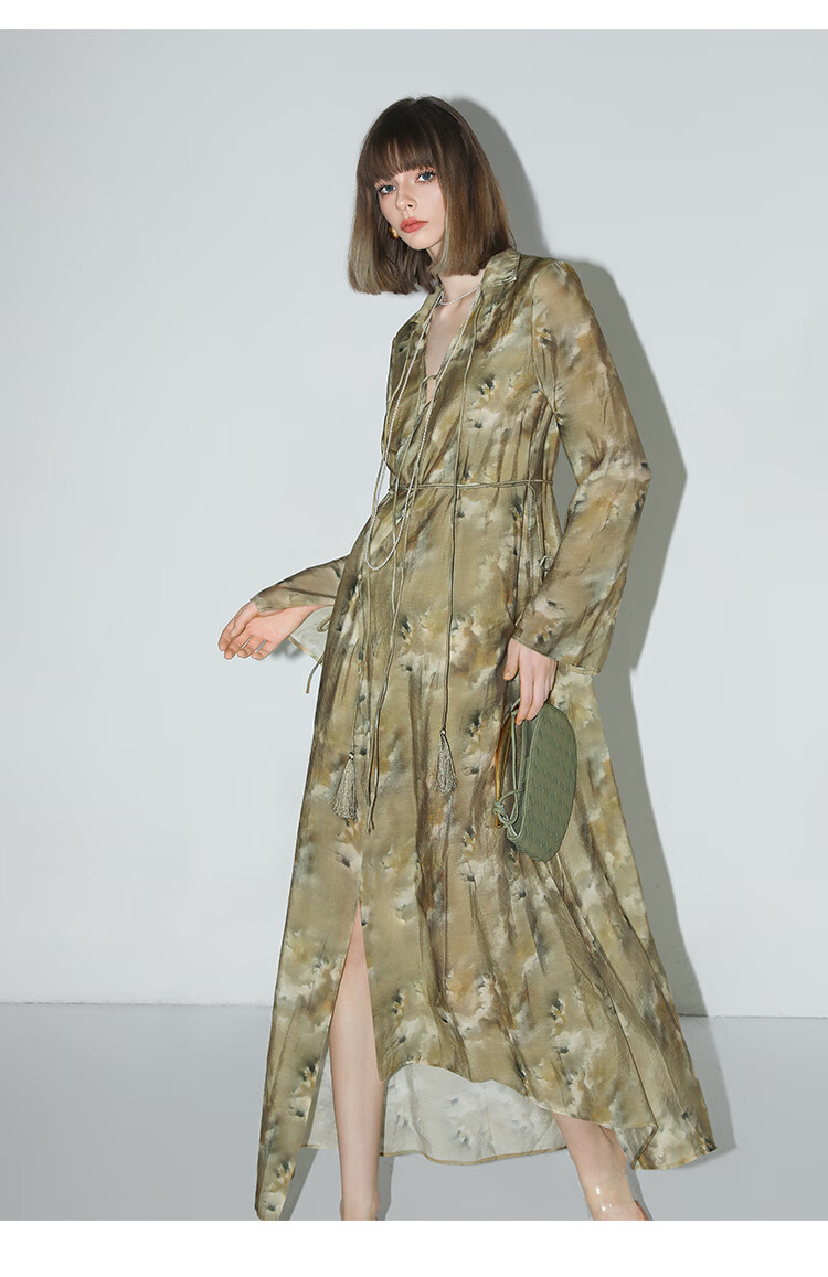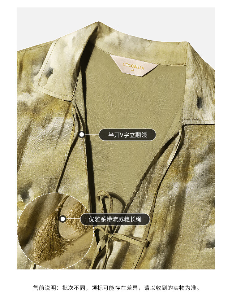 COCOBELLA晕染油画风印花度假风连衣裙流苏飘带衬衫裙FR3007B