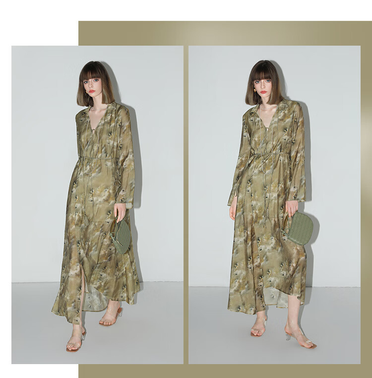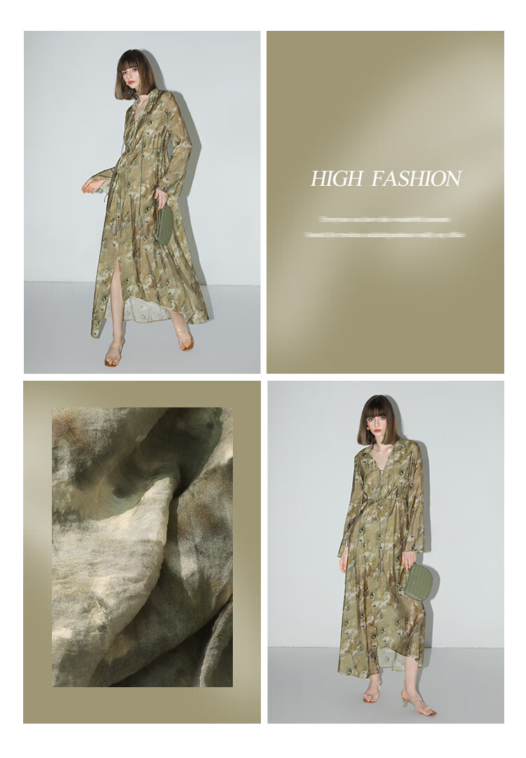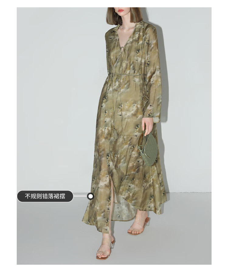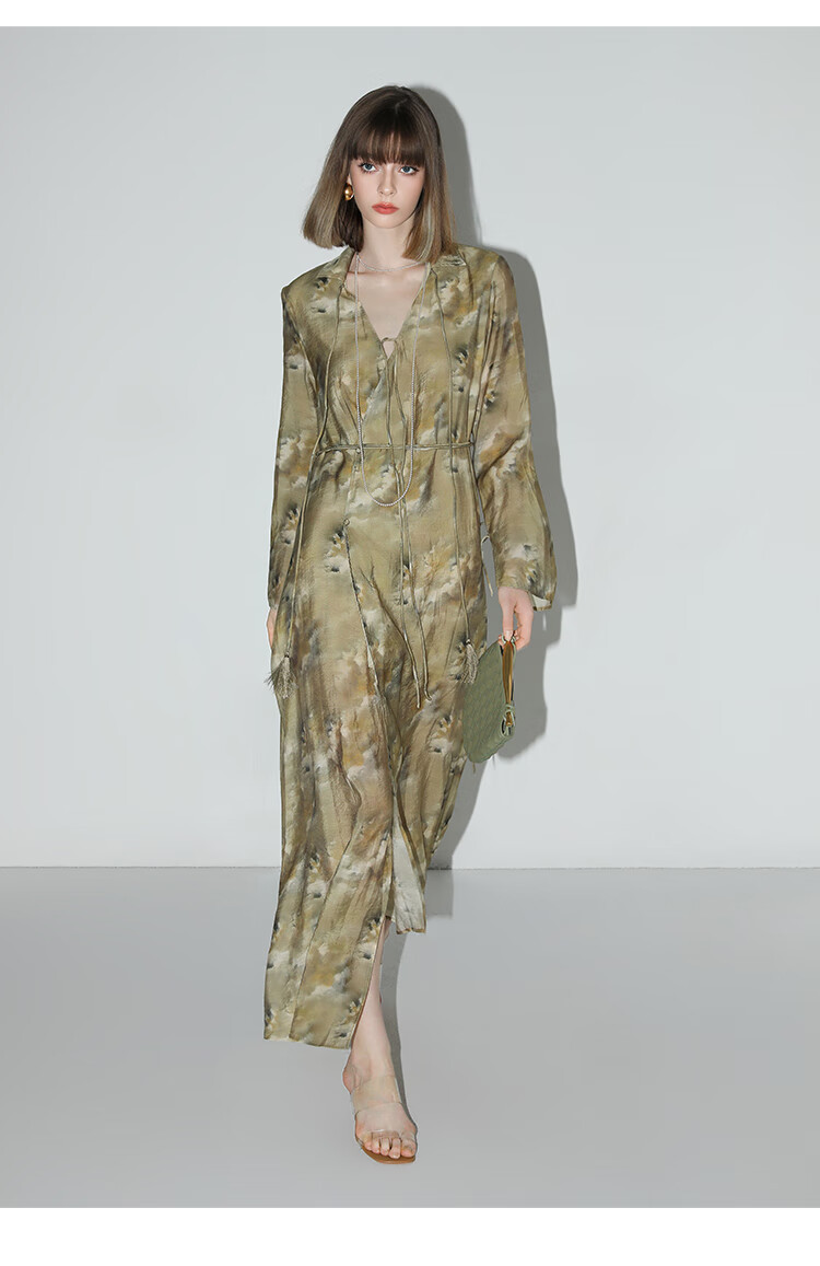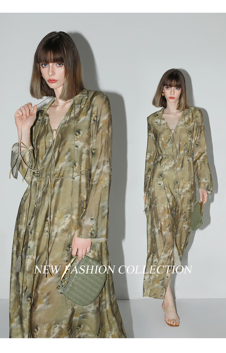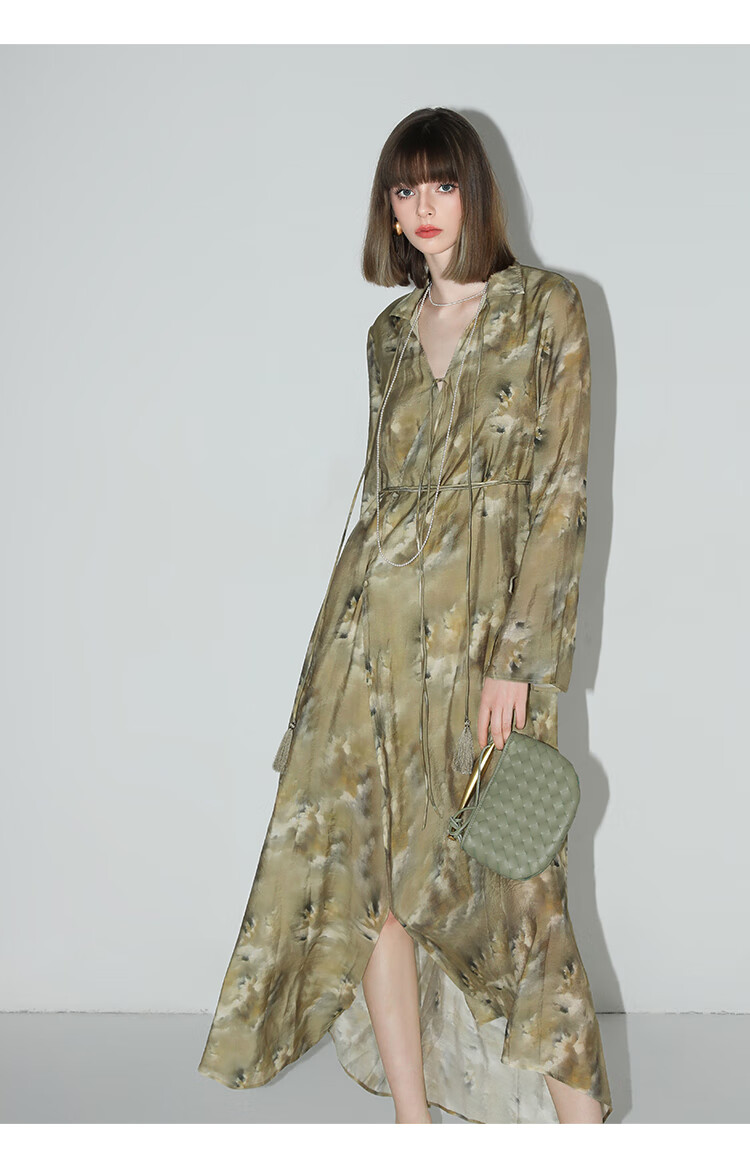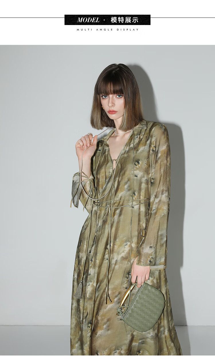 COCOBELLA晕染油画风印花度假风连衣裙流苏飘带衬衫裙FR3007B