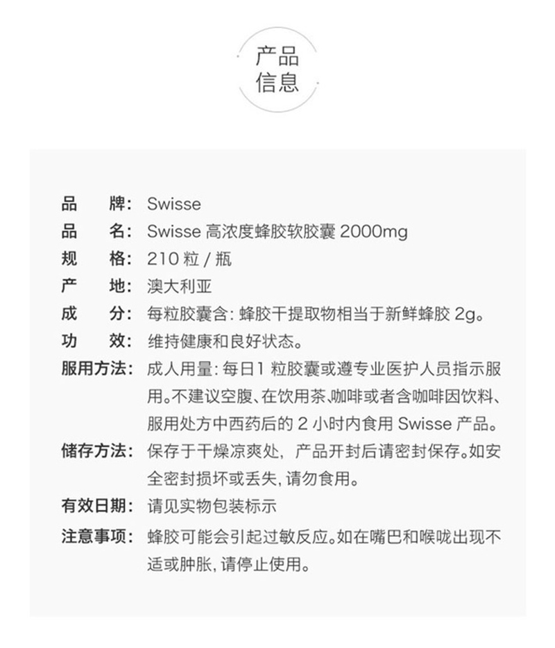 澳洲Swisse 高浓度黑蜂胶软胶囊210粒