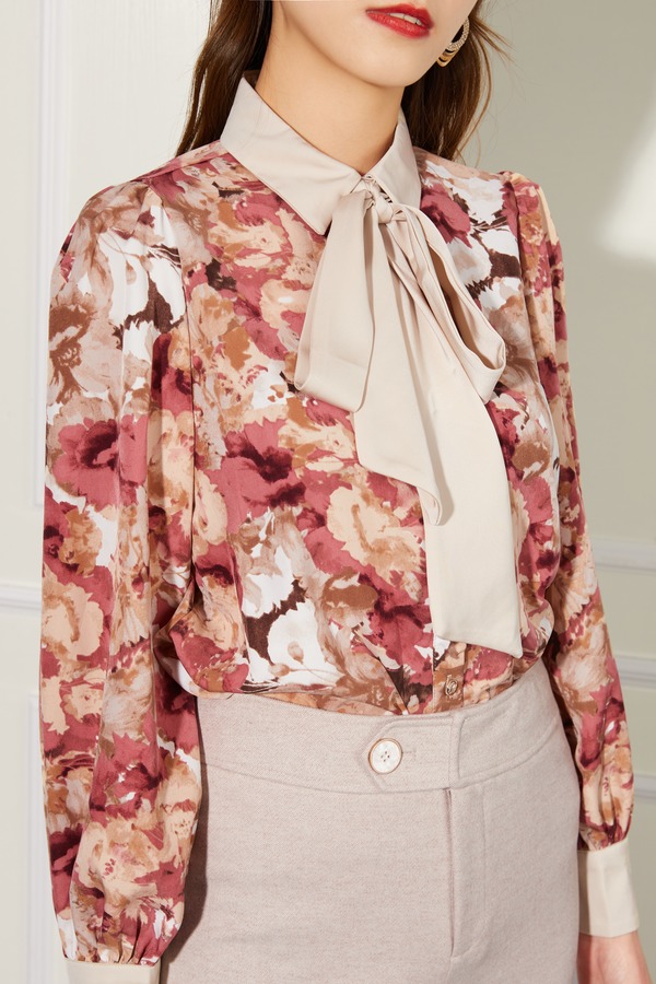 Le Malene 净色飘带花朵衬衣 10913