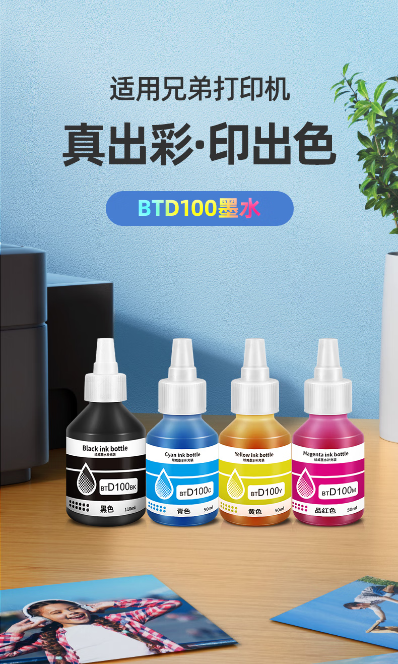 绘威BTD100墨水 适用兄弟T730DW T735DW打印机墨水T436W T230 T236 T430W T435W 536DW 830DW btd100墨水 四色