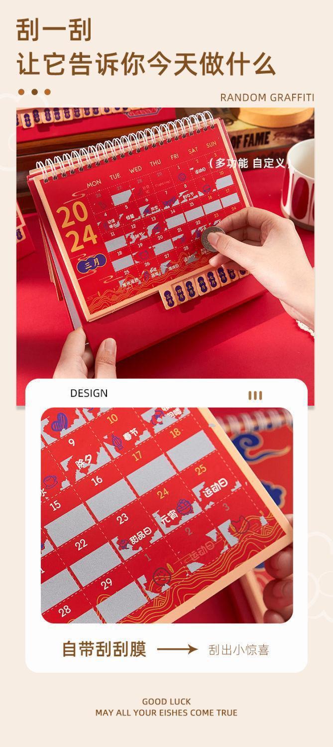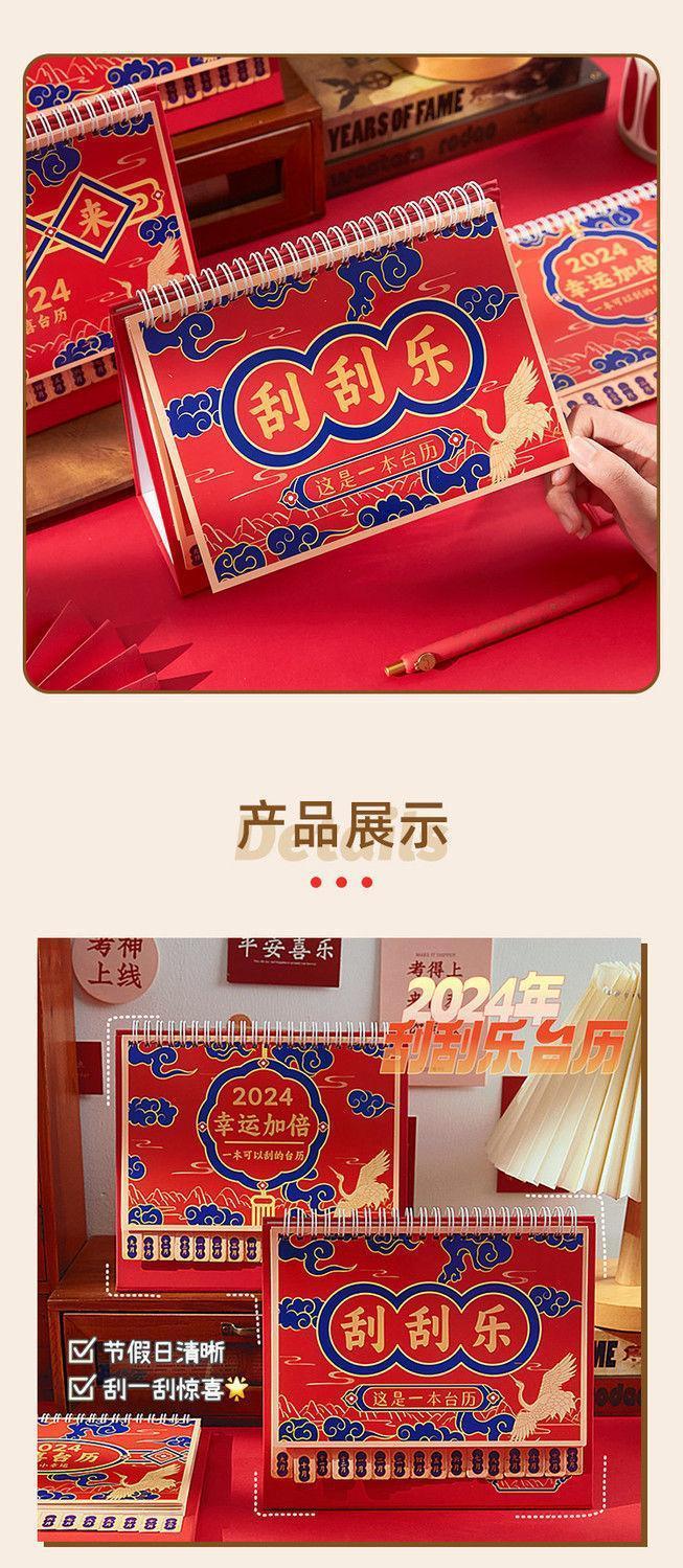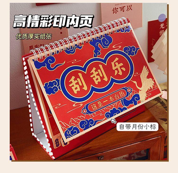 「新年刮刮乐台历!四款可选」2024年创意简约新款日历 居家日用龙年台历办公室盲盒家居饰品日历牌摆件国风日历
