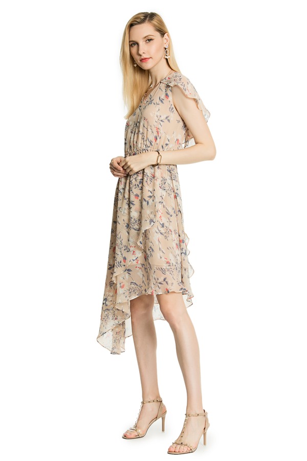 SUMMER & SAGE 米黄色不规则印花长裙 3316