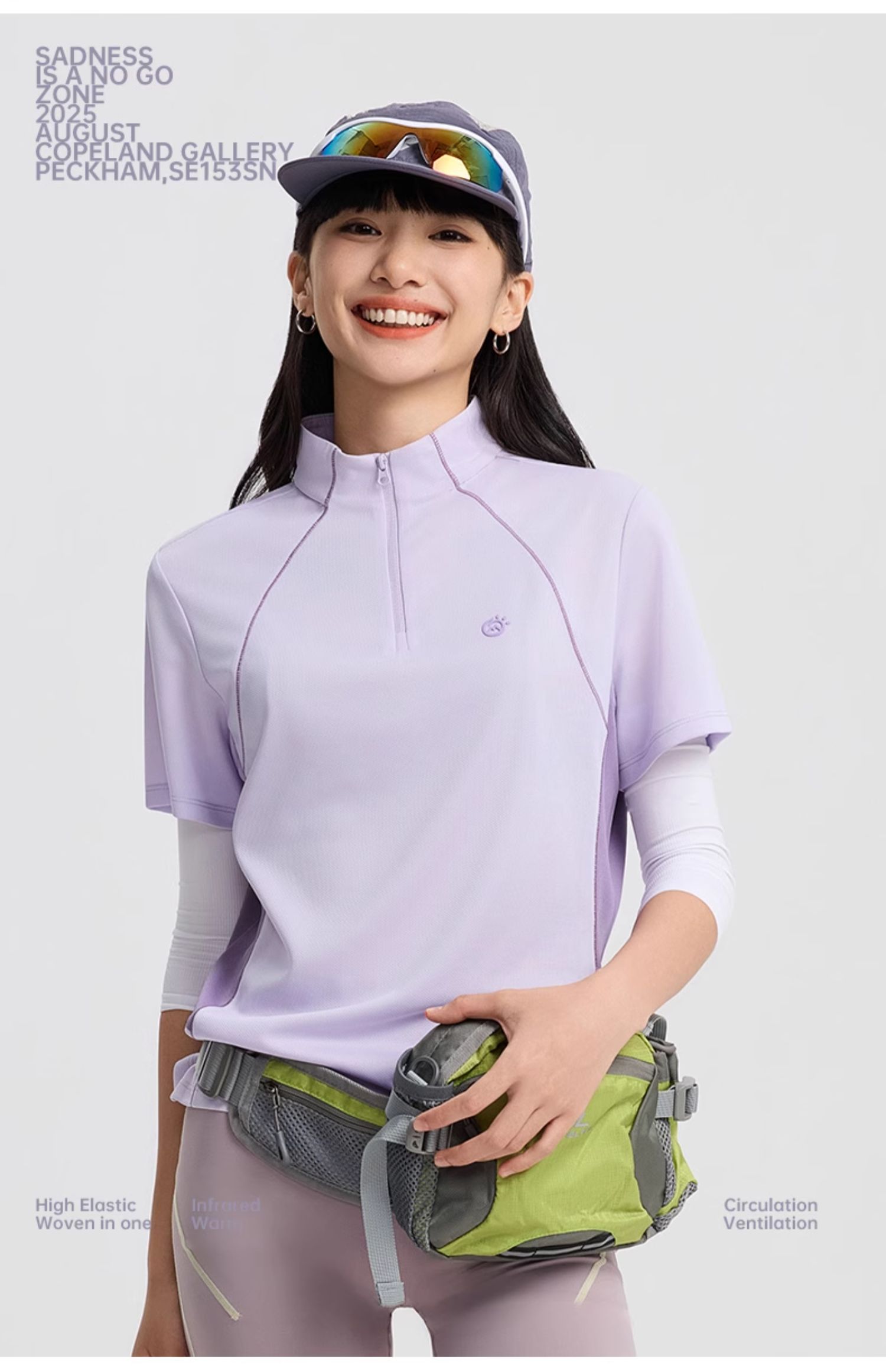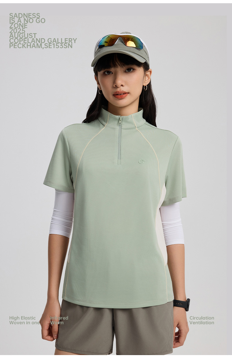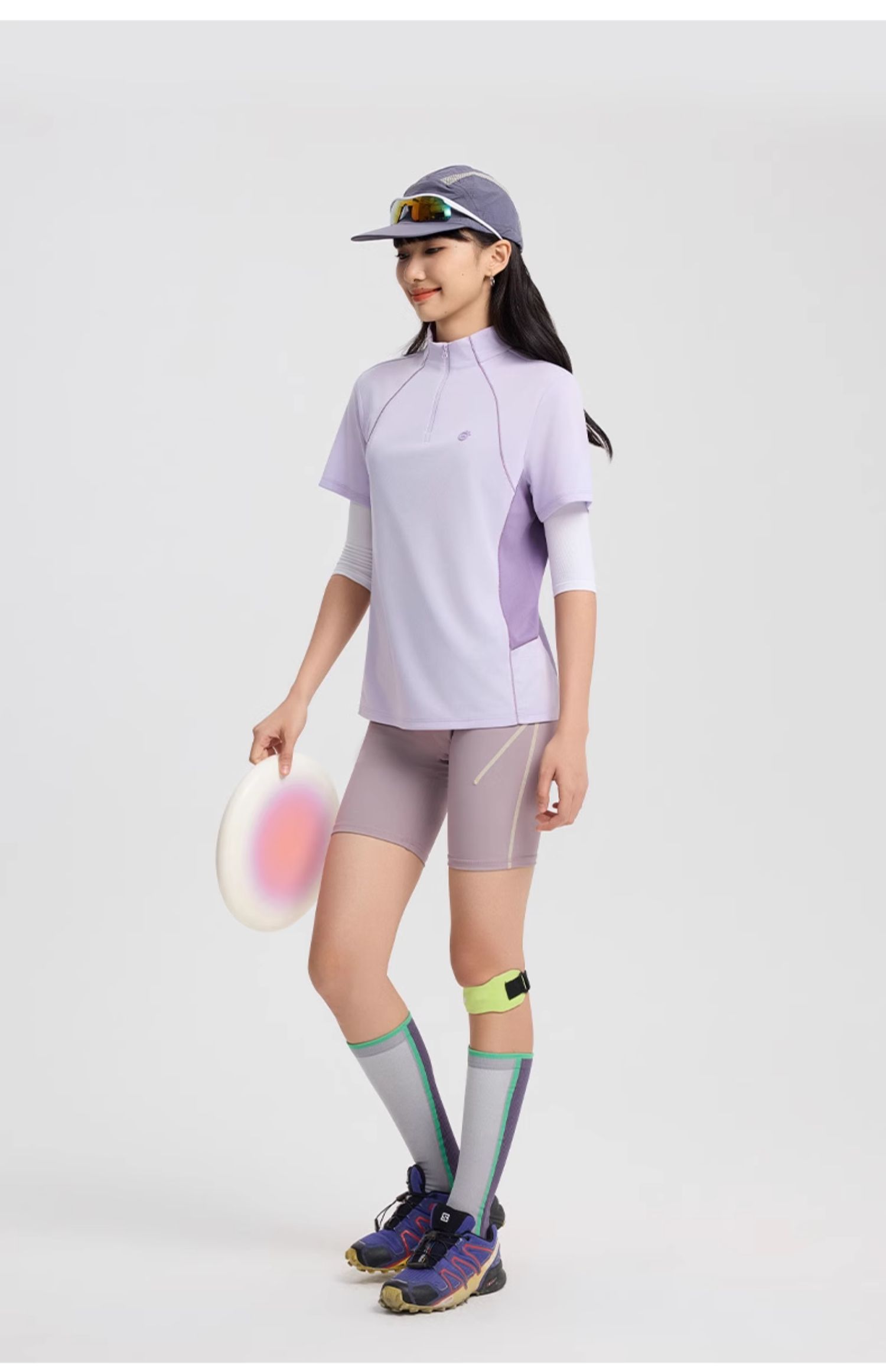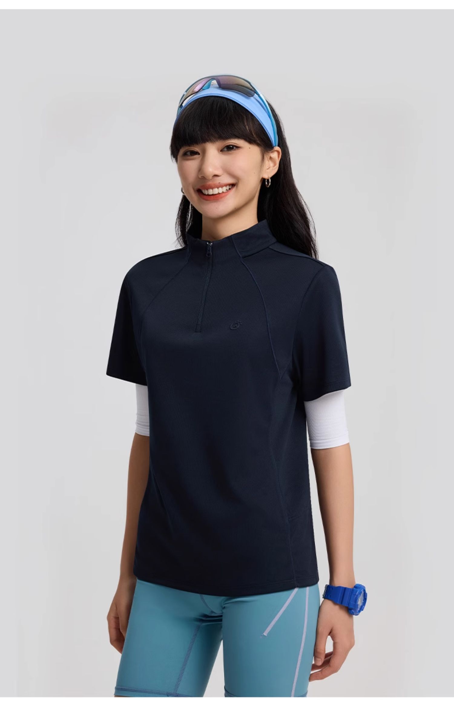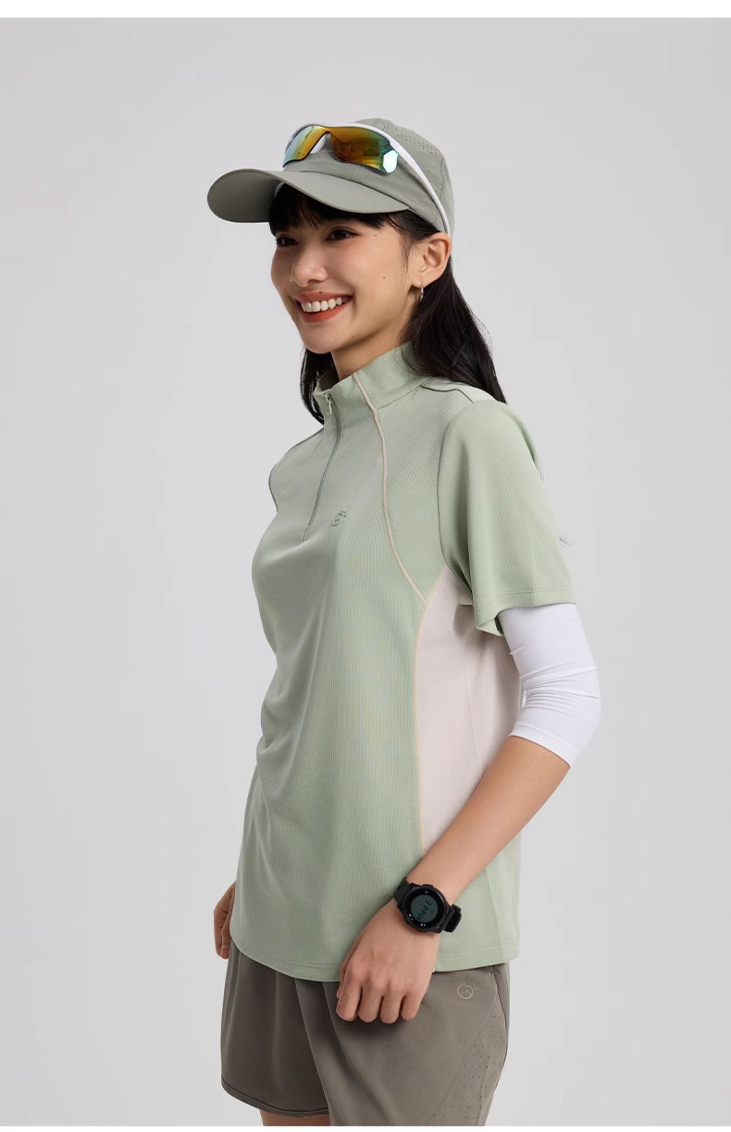 tectop/探拓户外速干T恤女跑步健身弹力透气轻薄立领训练短袖上衣