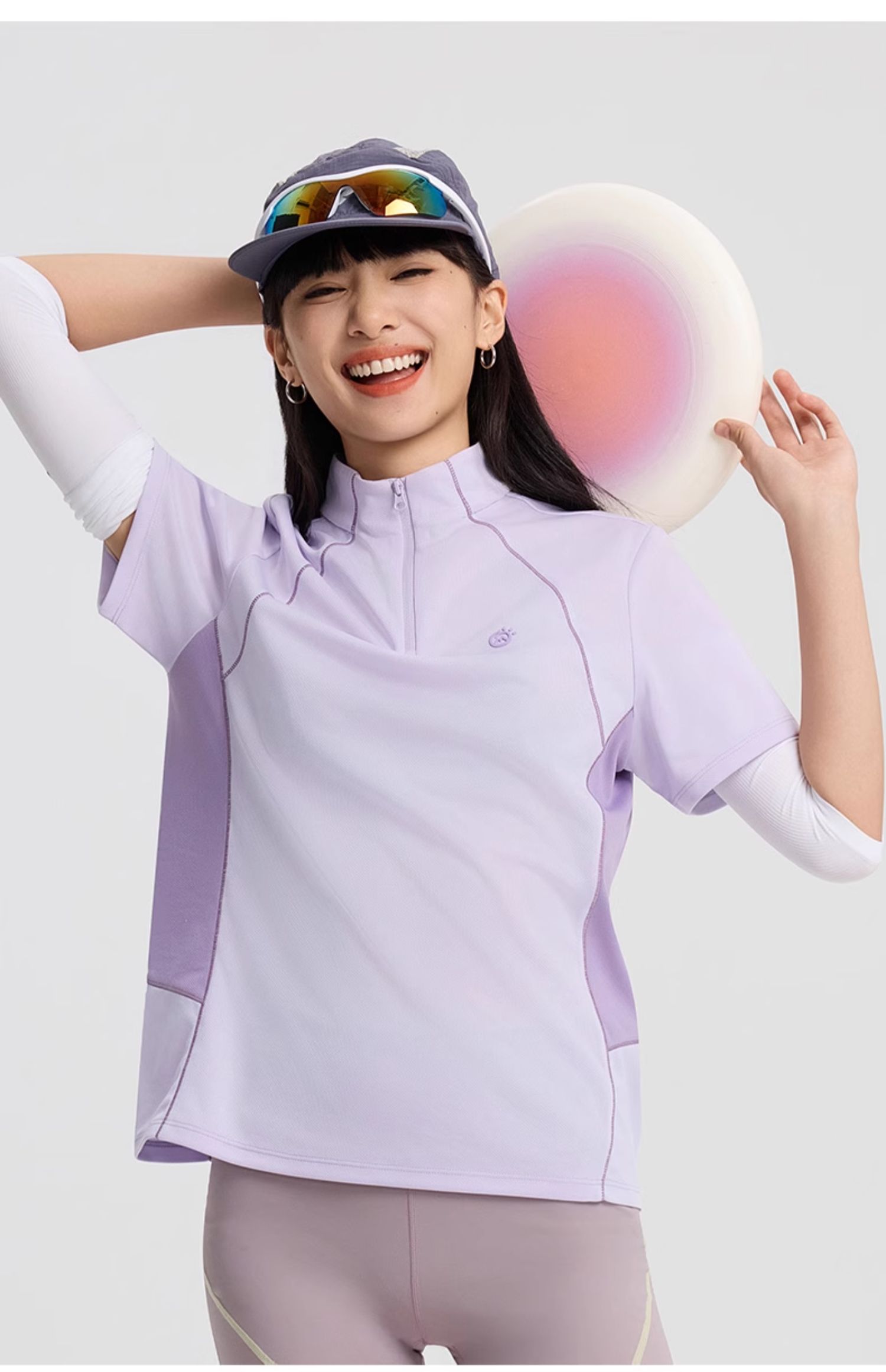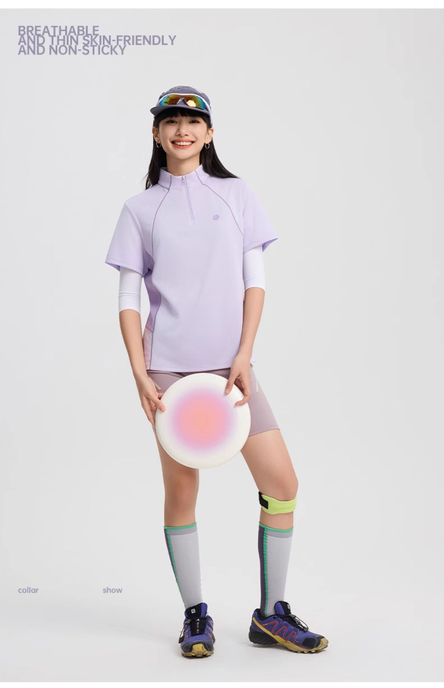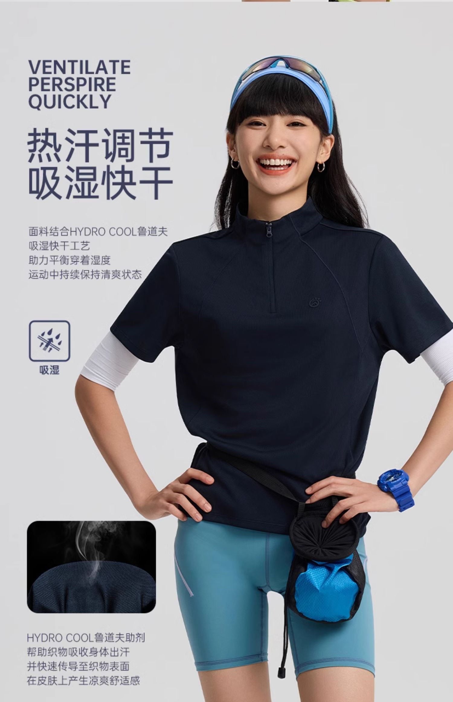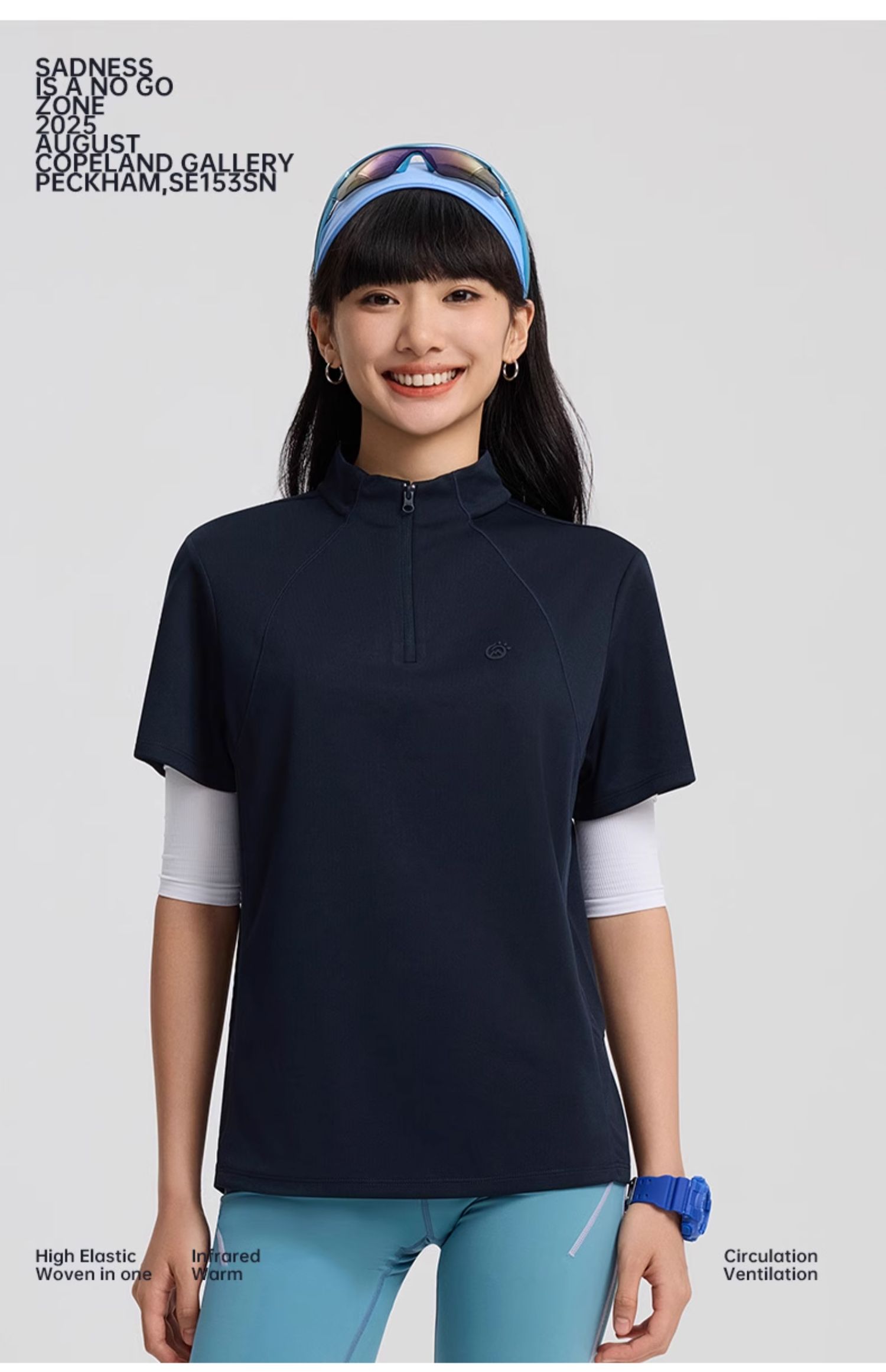 tectop/探拓户外速干T恤女跑步健身弹力透气轻薄立领训练短袖上衣