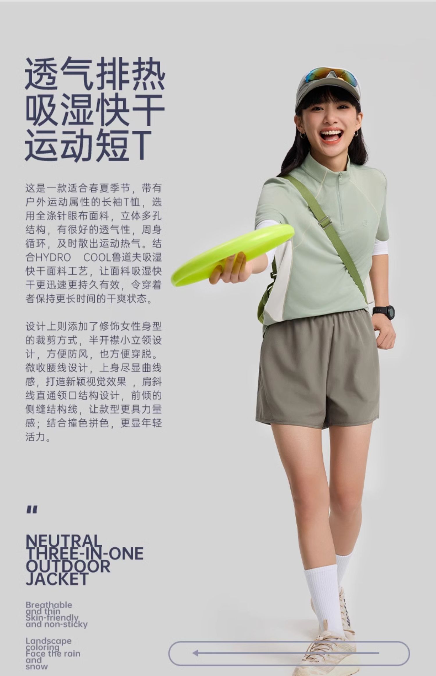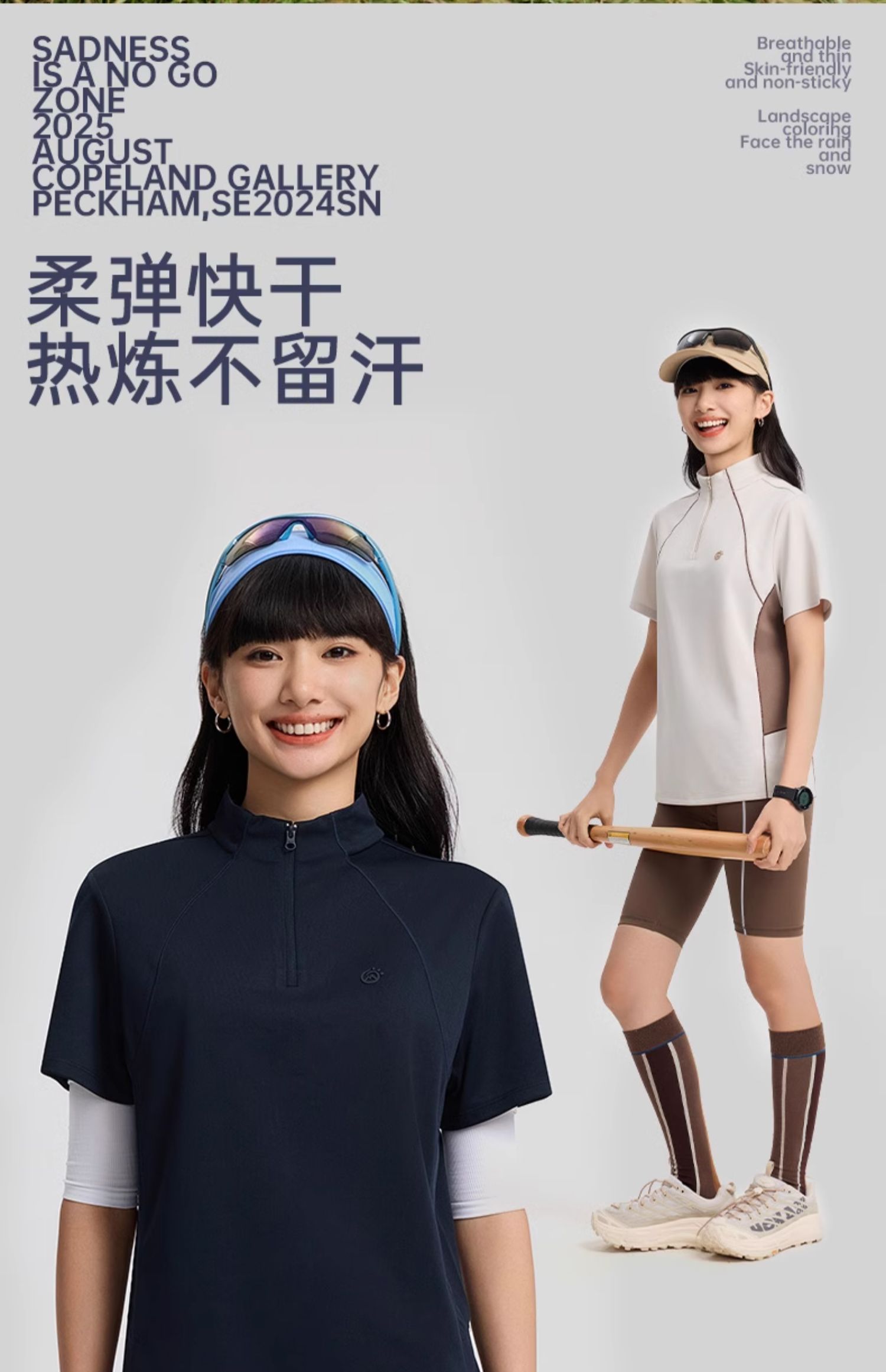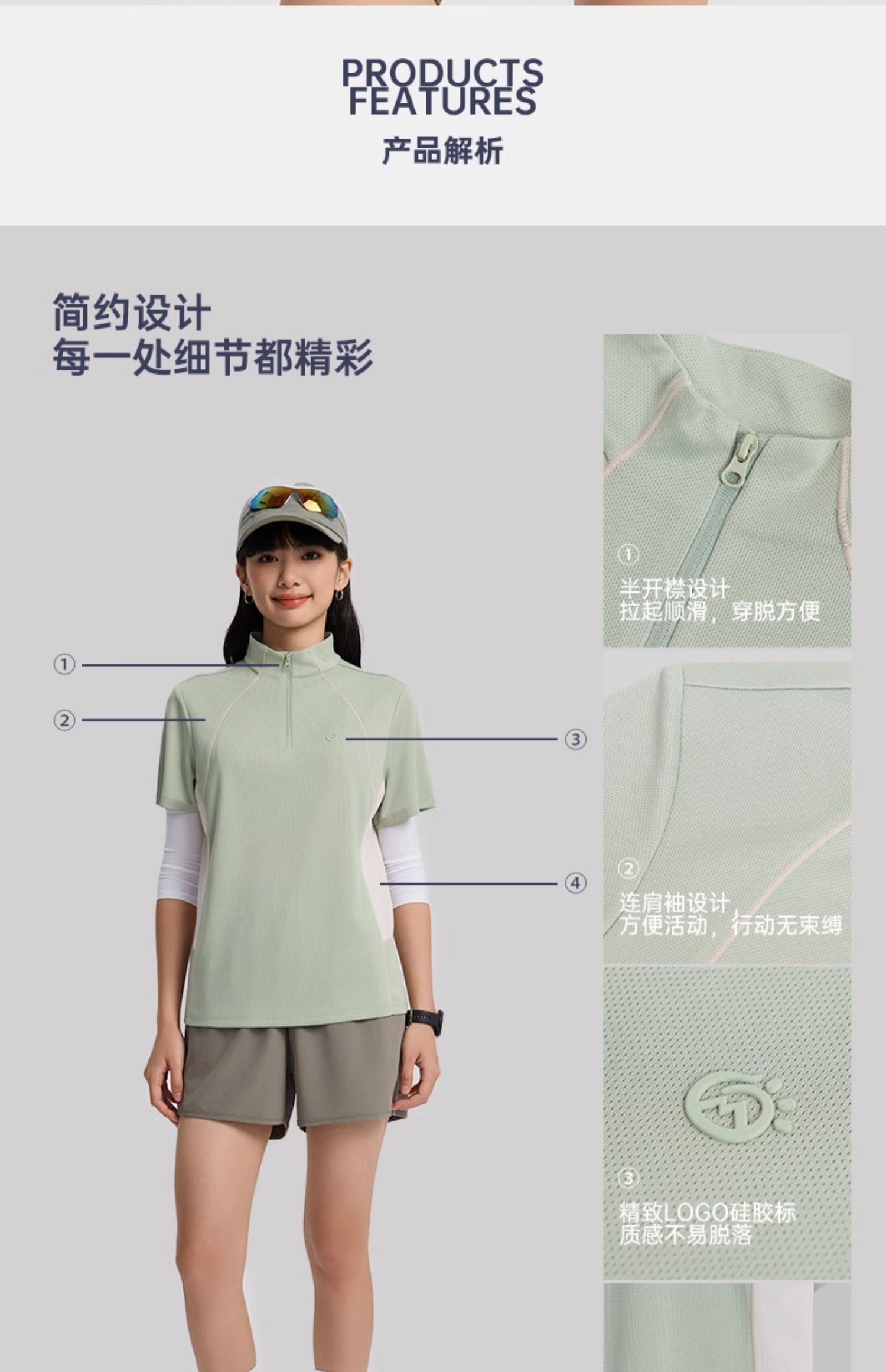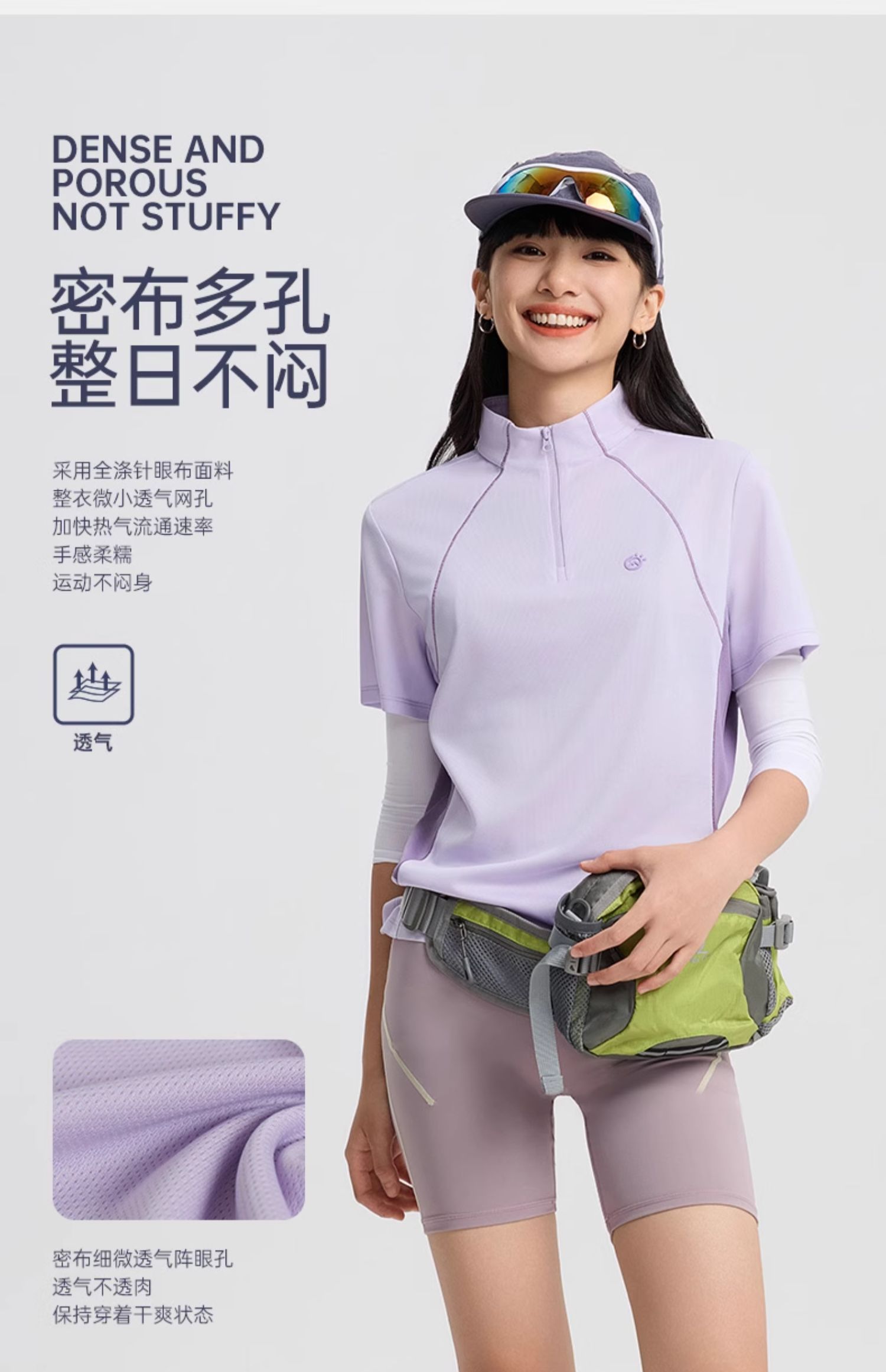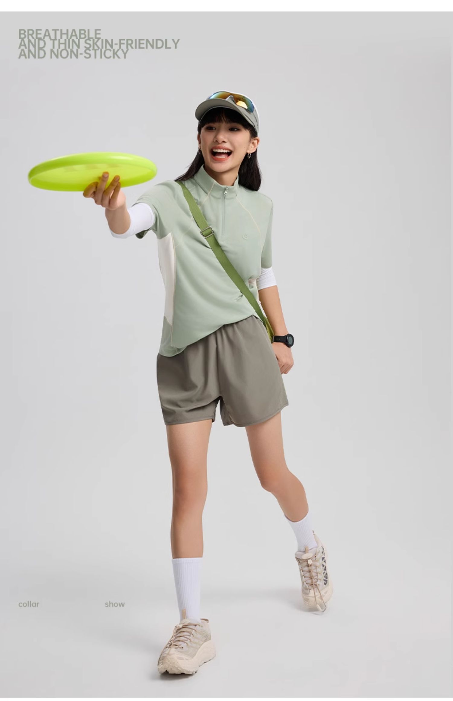 tectop/探拓户外速干T恤女跑步健身弹力透气轻薄立领训练短袖上衣