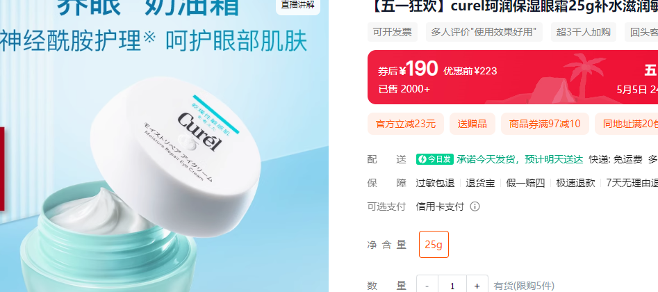 【品名】Curel/珂润 润浸保湿眼霜25g