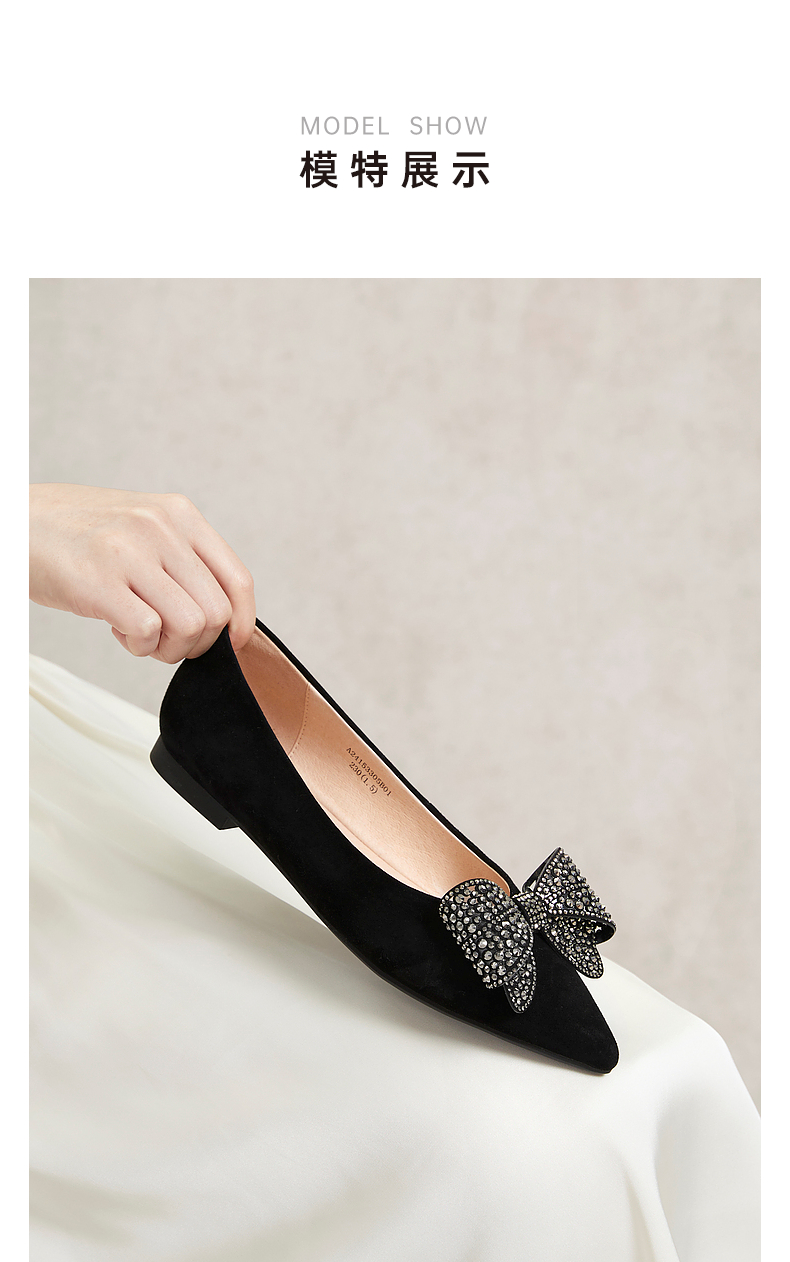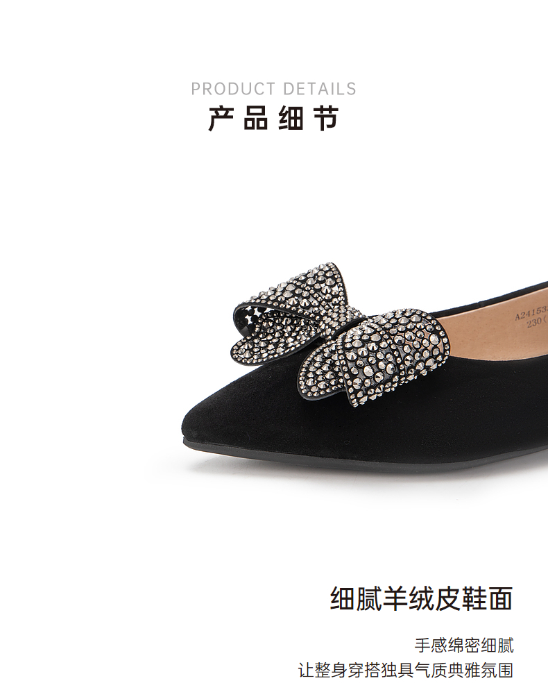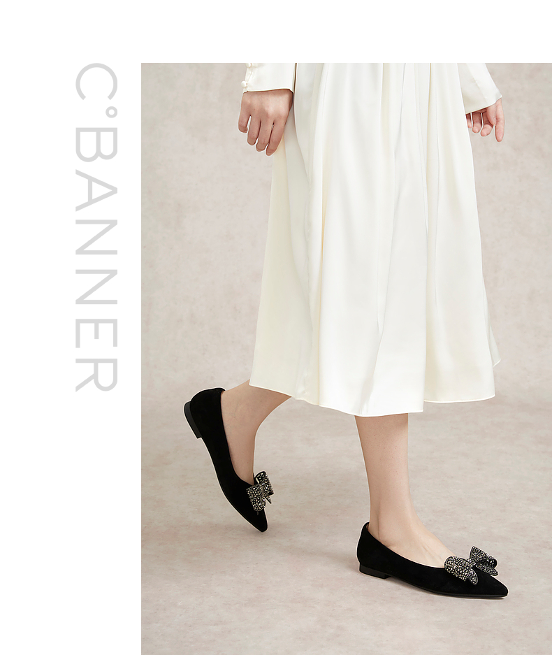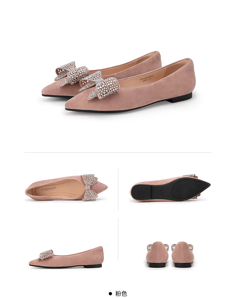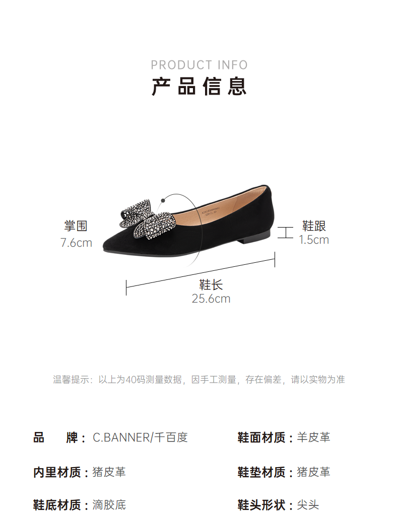 千百度蝴蝶结小香风单鞋女春季晚晚鞋低跟平底鞋A24153305
