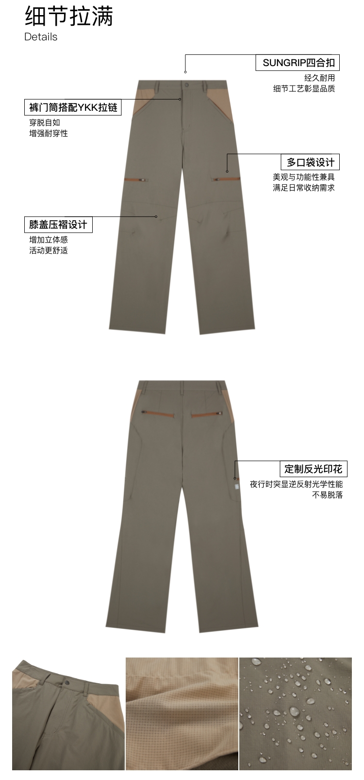 oneup拼色防泼水裤子