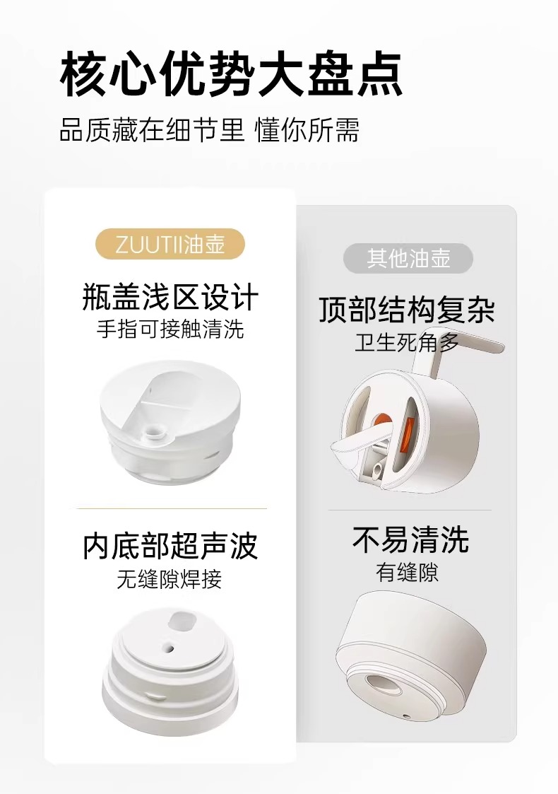 zuutii重力油壶带手柄自动开合防漏油玻璃油瓶酱油醋调料瓶