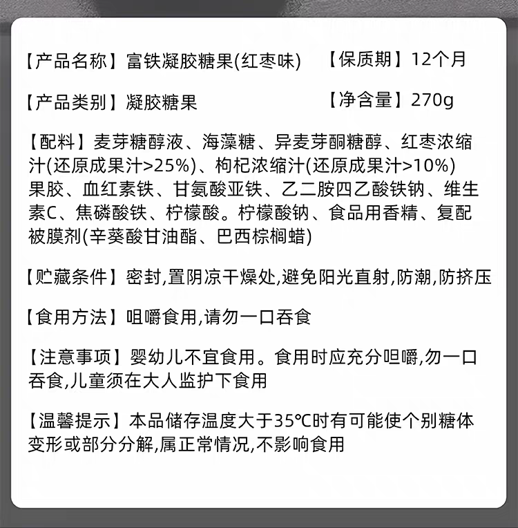 蕙润堂富铁凝胶糖果红枣味成人女性经期270g /瓶