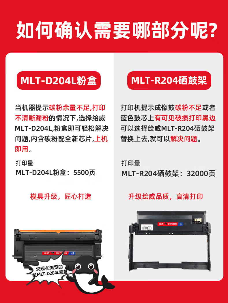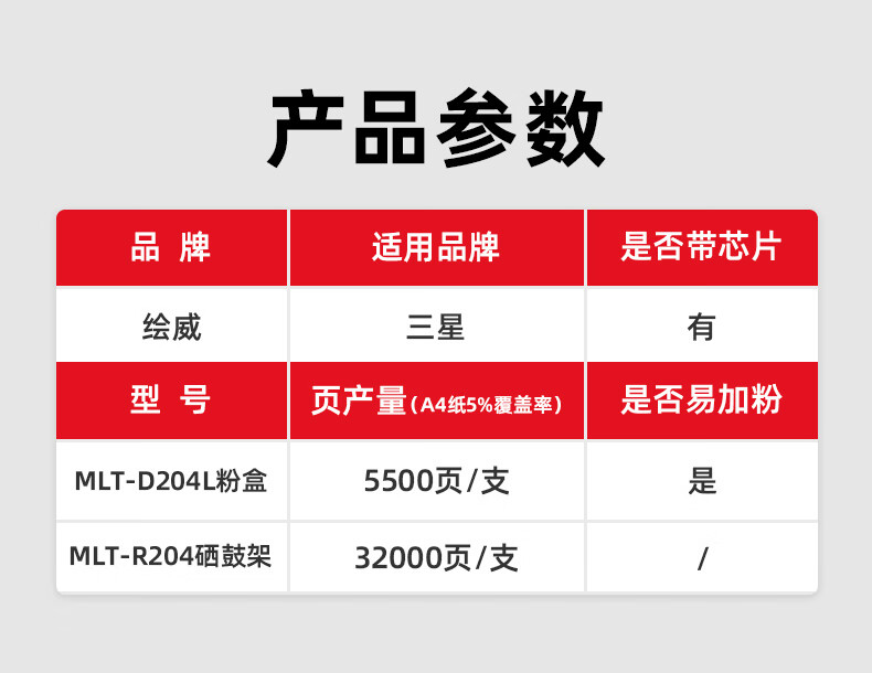 绘威MLT-D204L/D204S易加粉粉盒 适用三星204 SL-M3325ND M3375HD M3875 M3825ND M4025ND M4075ND m4025墨盒