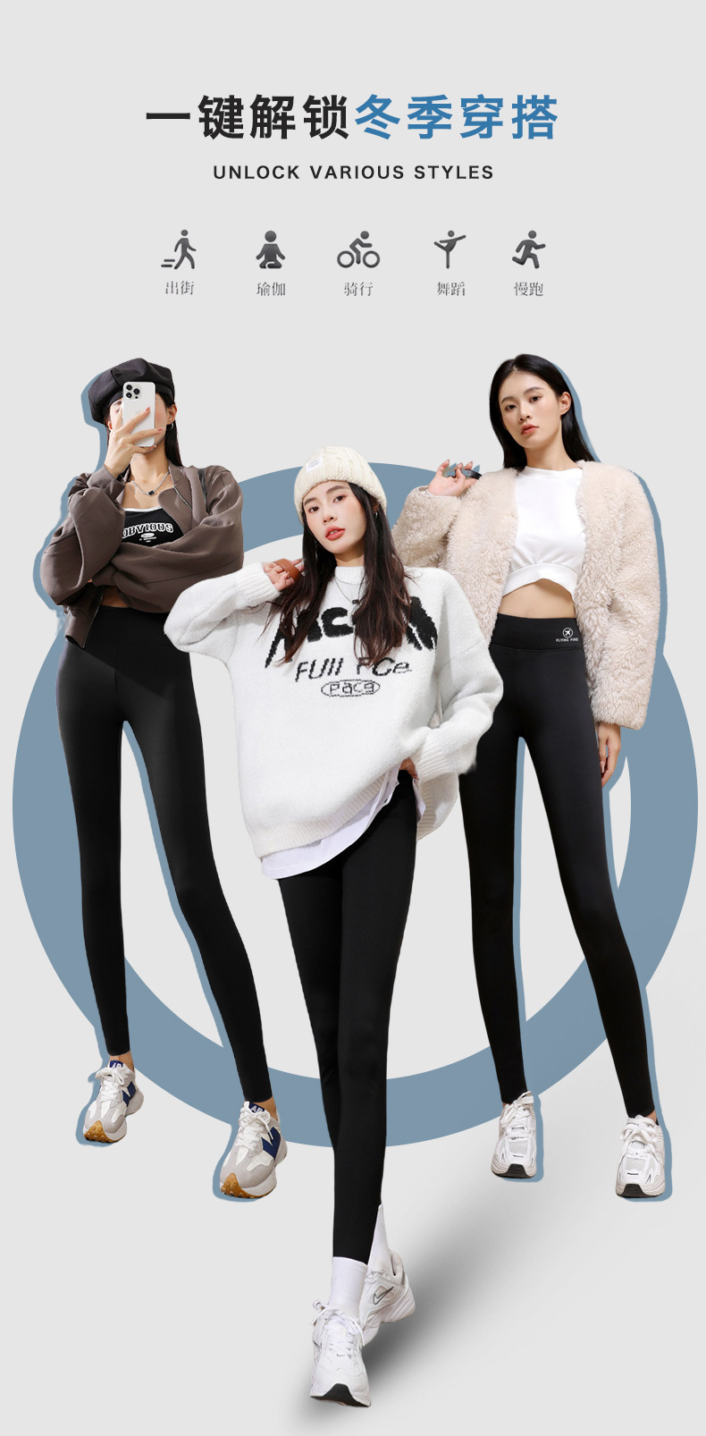 「三款配色!加绒鲨鱼裤」女外穿2023新款秋冬季加厚高腰紧身黑色保暖芭比打底裤下装