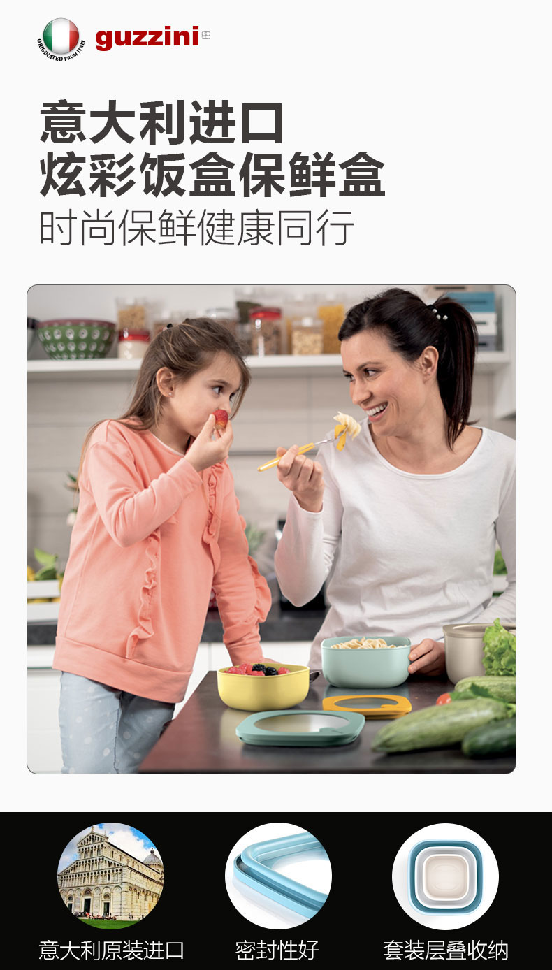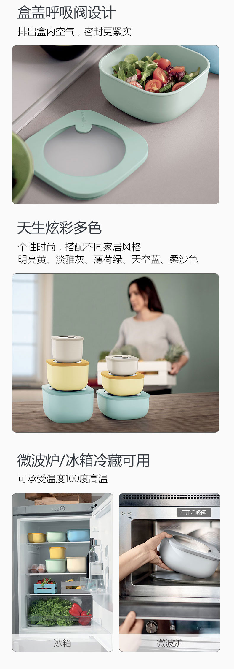 【意大利进口密封保鲜盒微波炉可用】炫彩饭盒储物盒 保鲜时间长方便携带