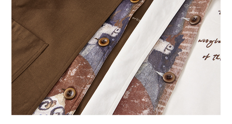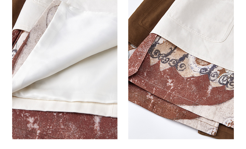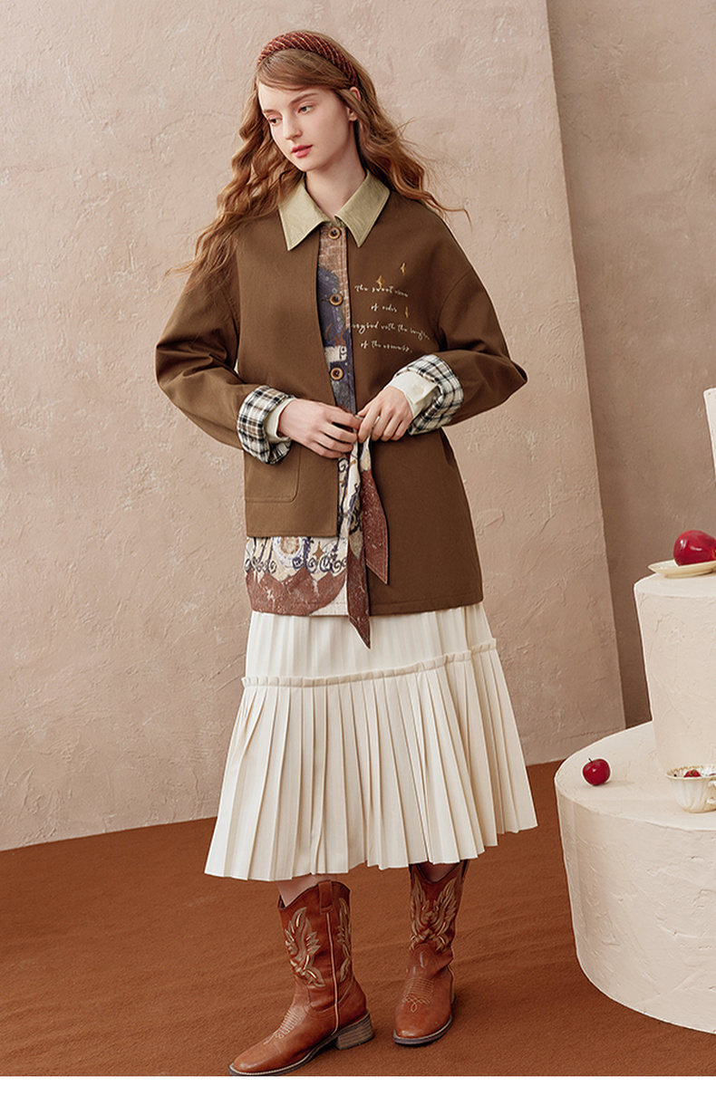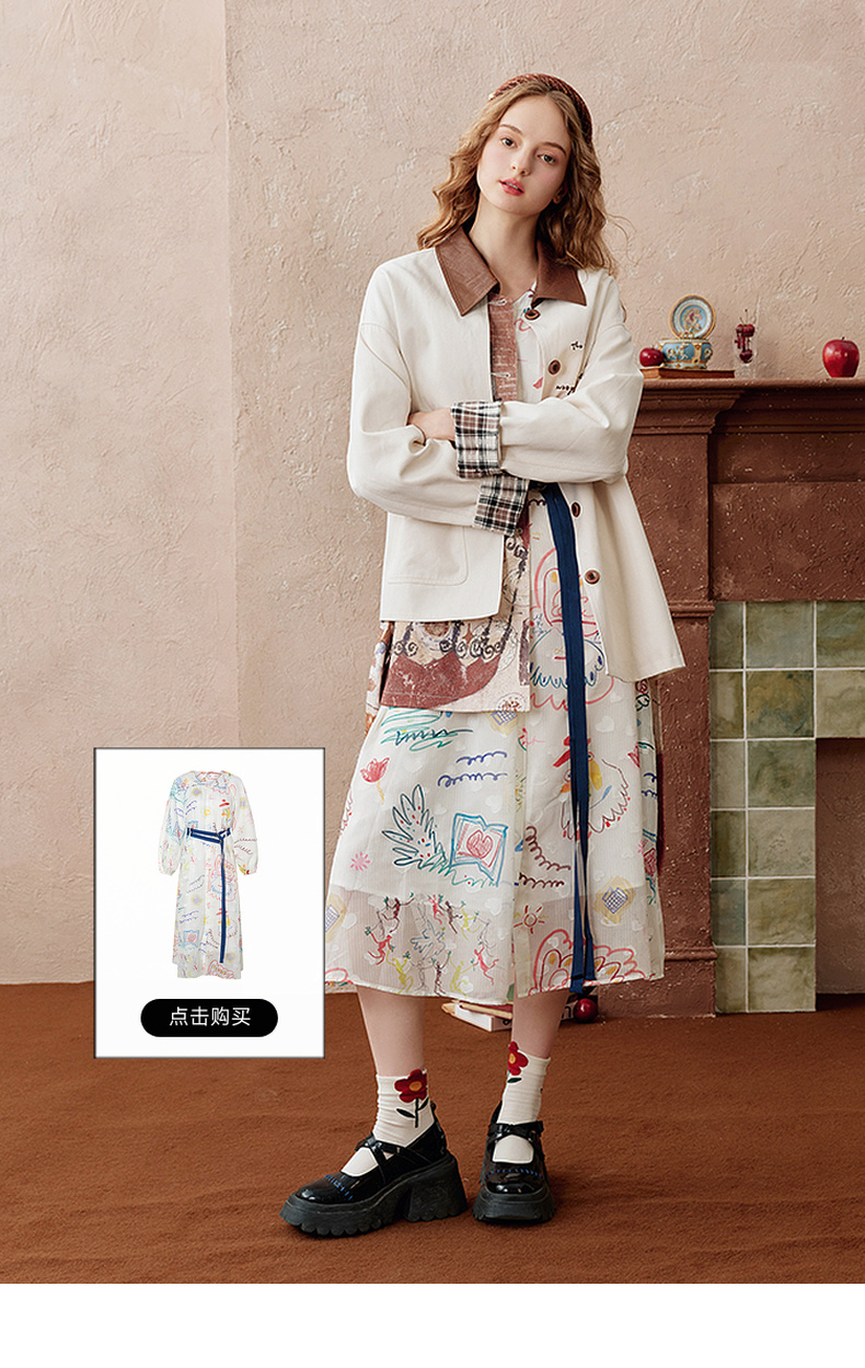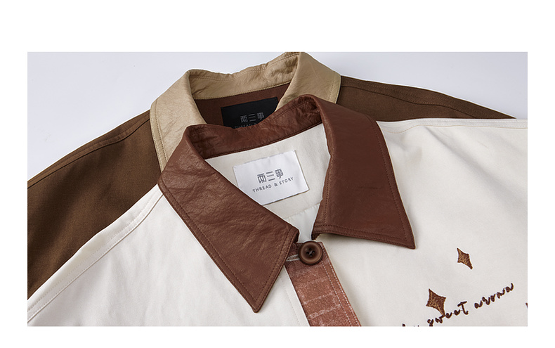 两三事 微醺奇域 2025秋季新款复古印花拼接绑带刺绣外套女宽松