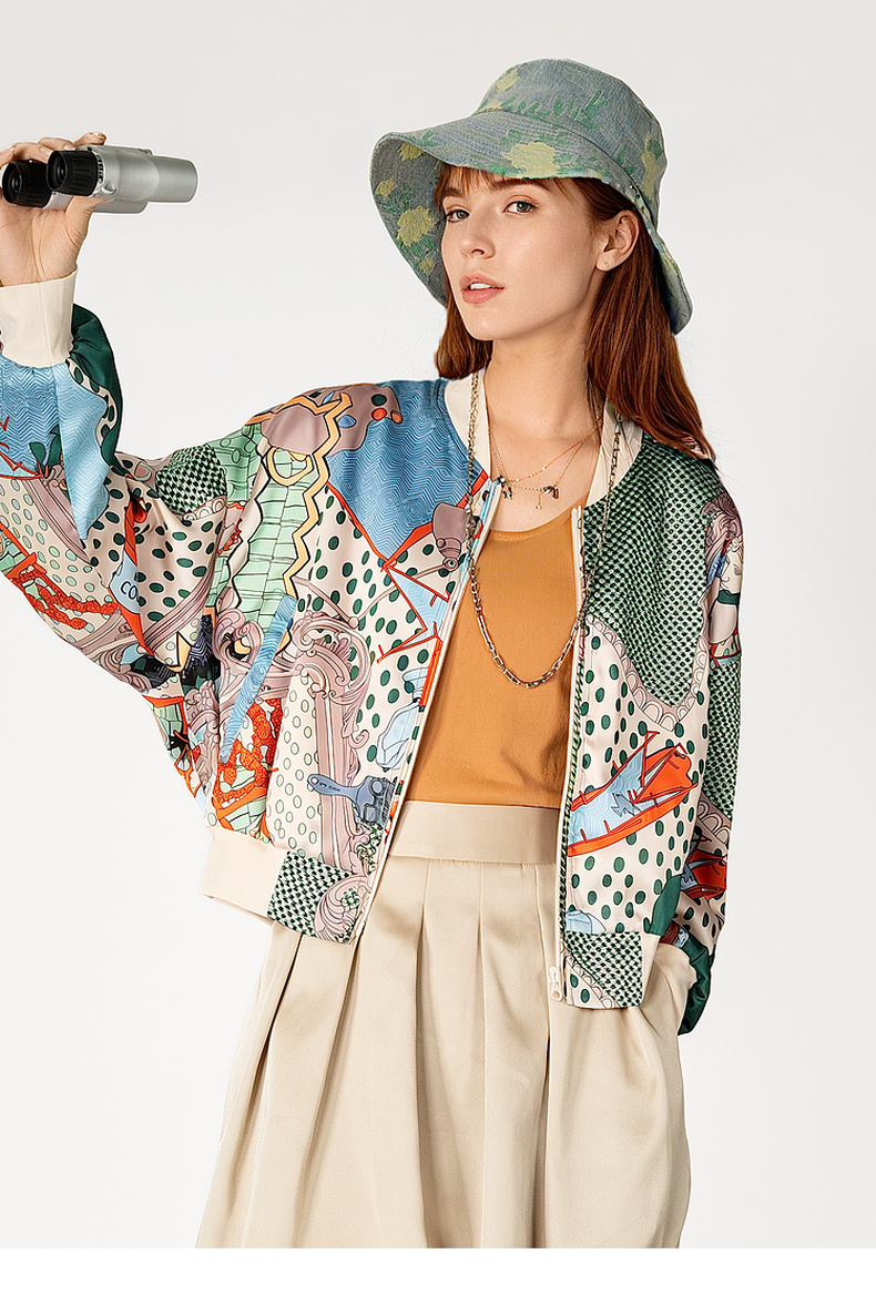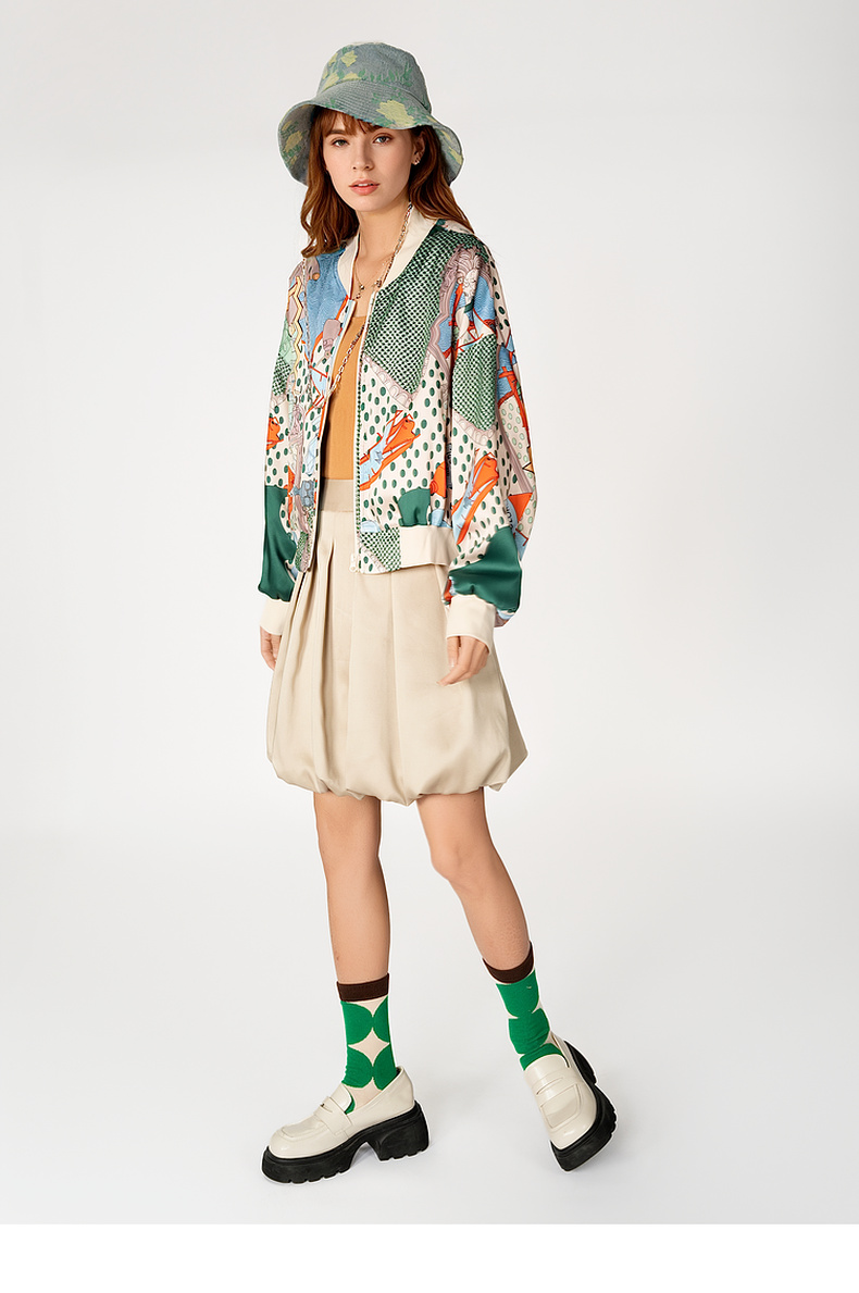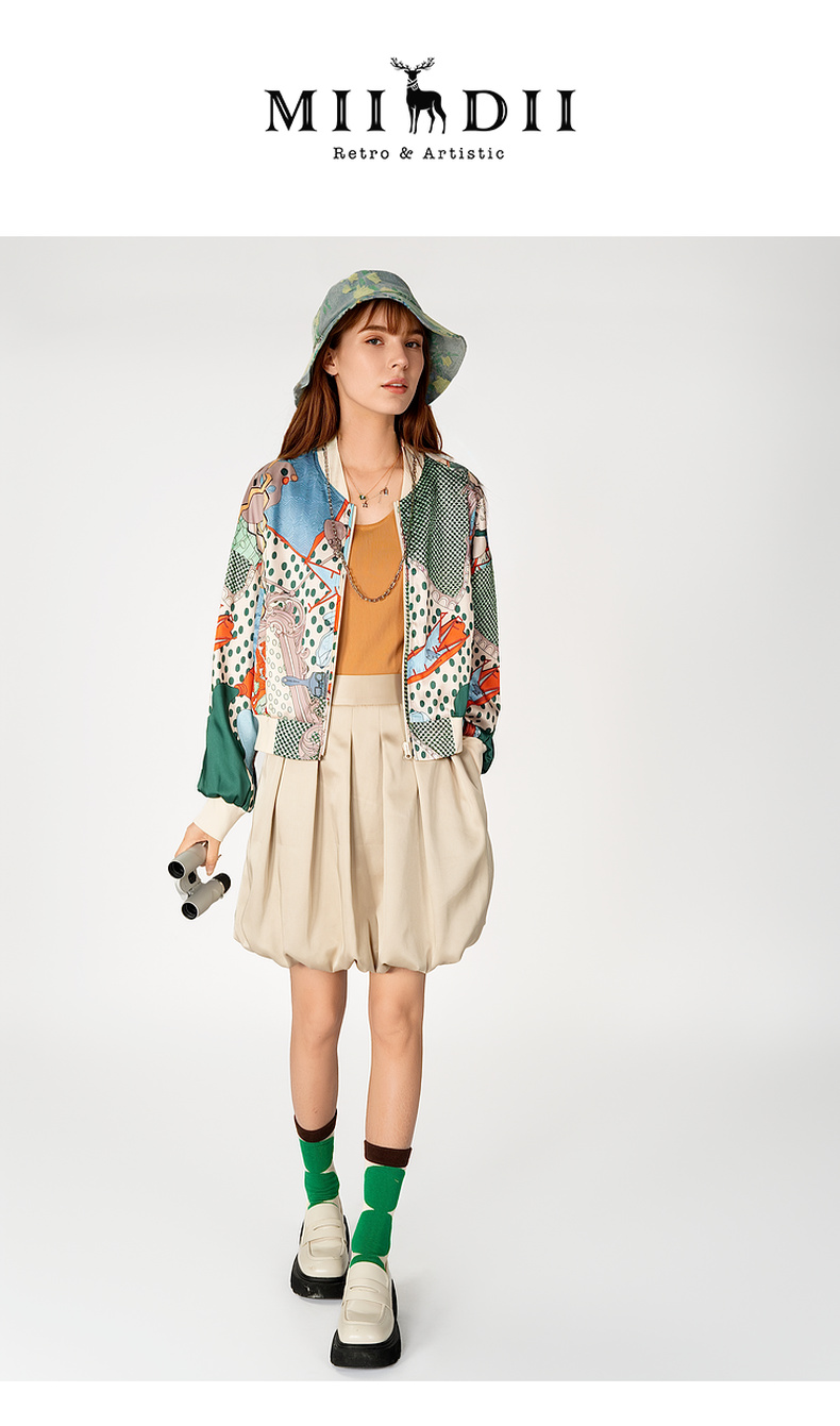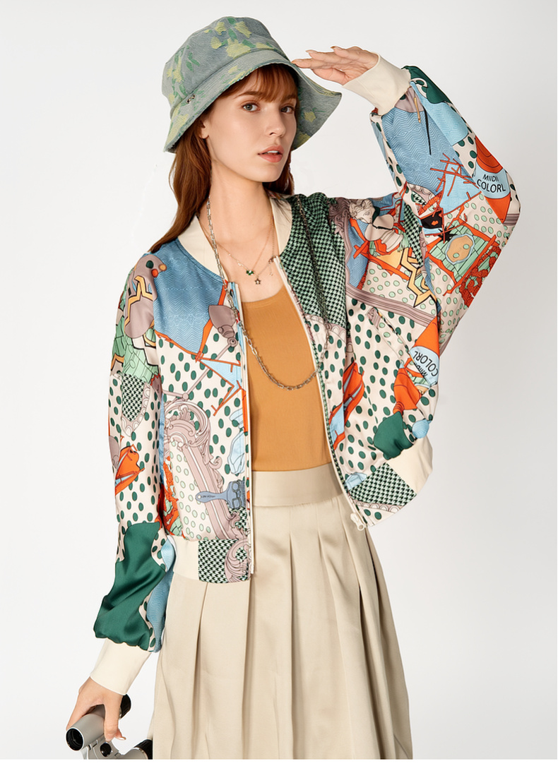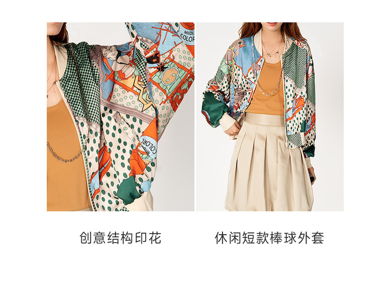 谜底花色短款外套女2025春季新品复古风印花棒球服长袖251MW5005