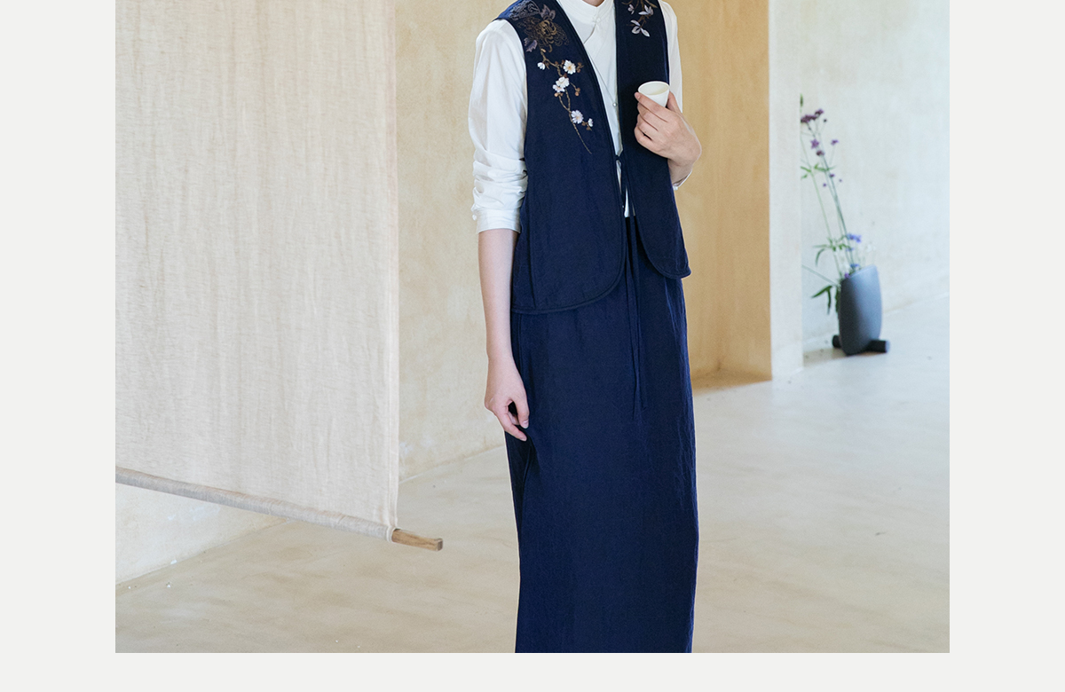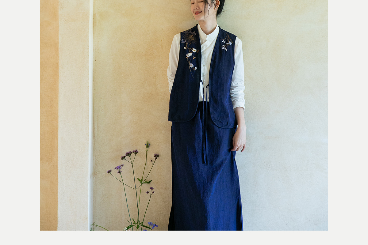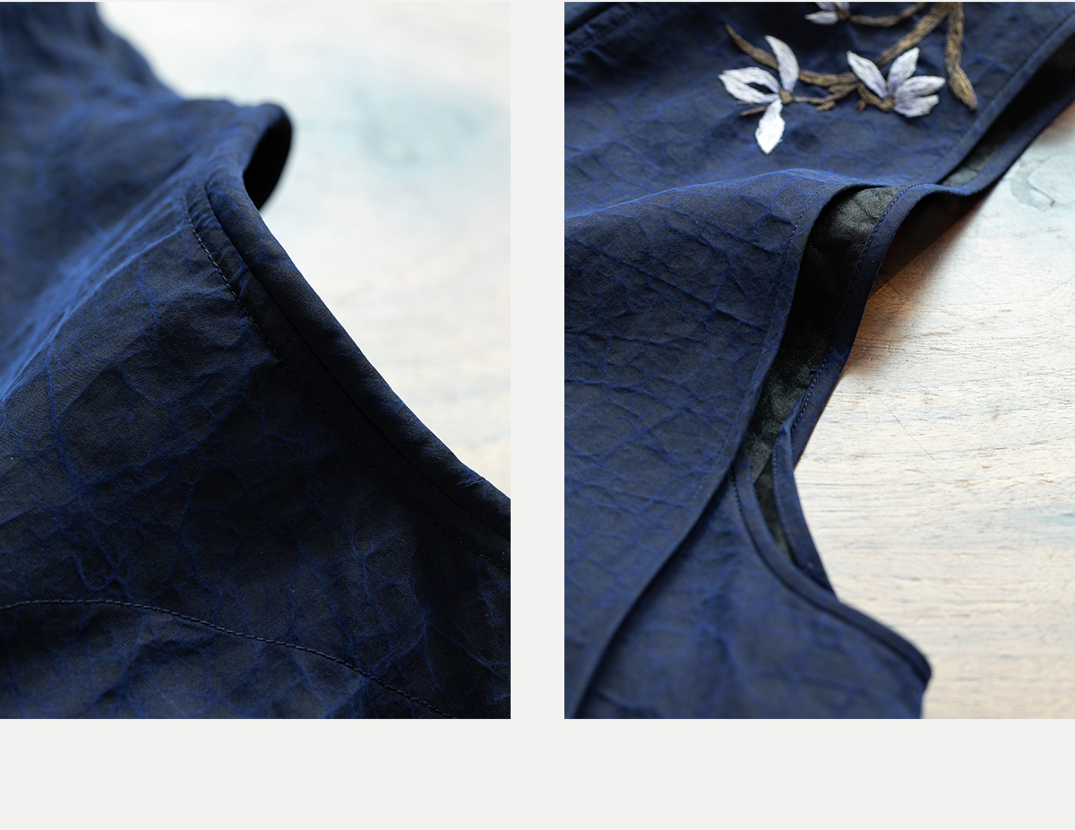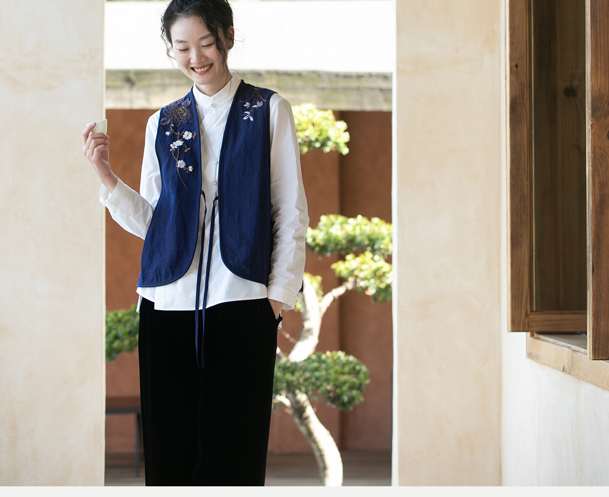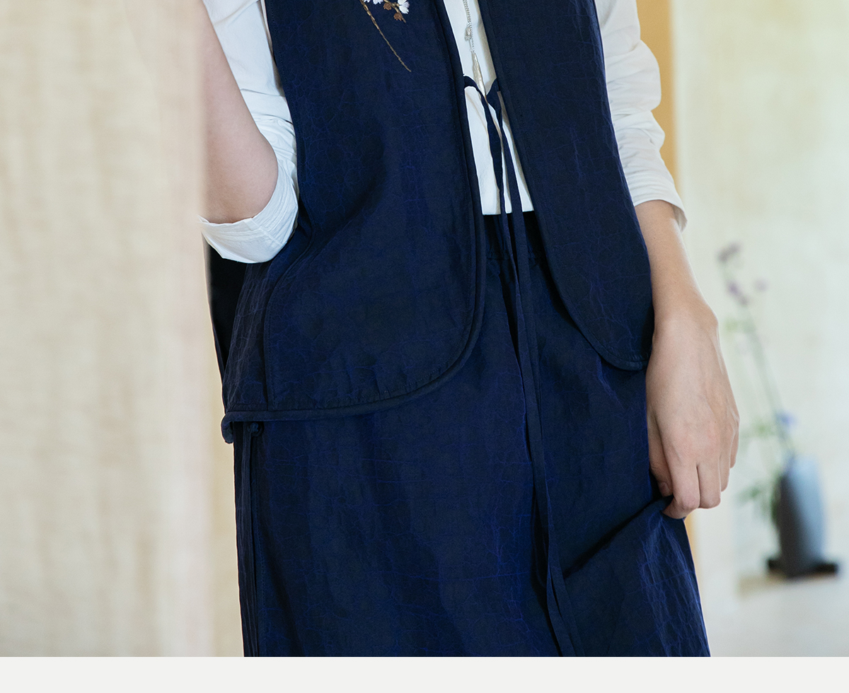 牧衣游原创 手绣蓝龟裂纹香云纱马夹复古禅意中式马甲新款 胭脂