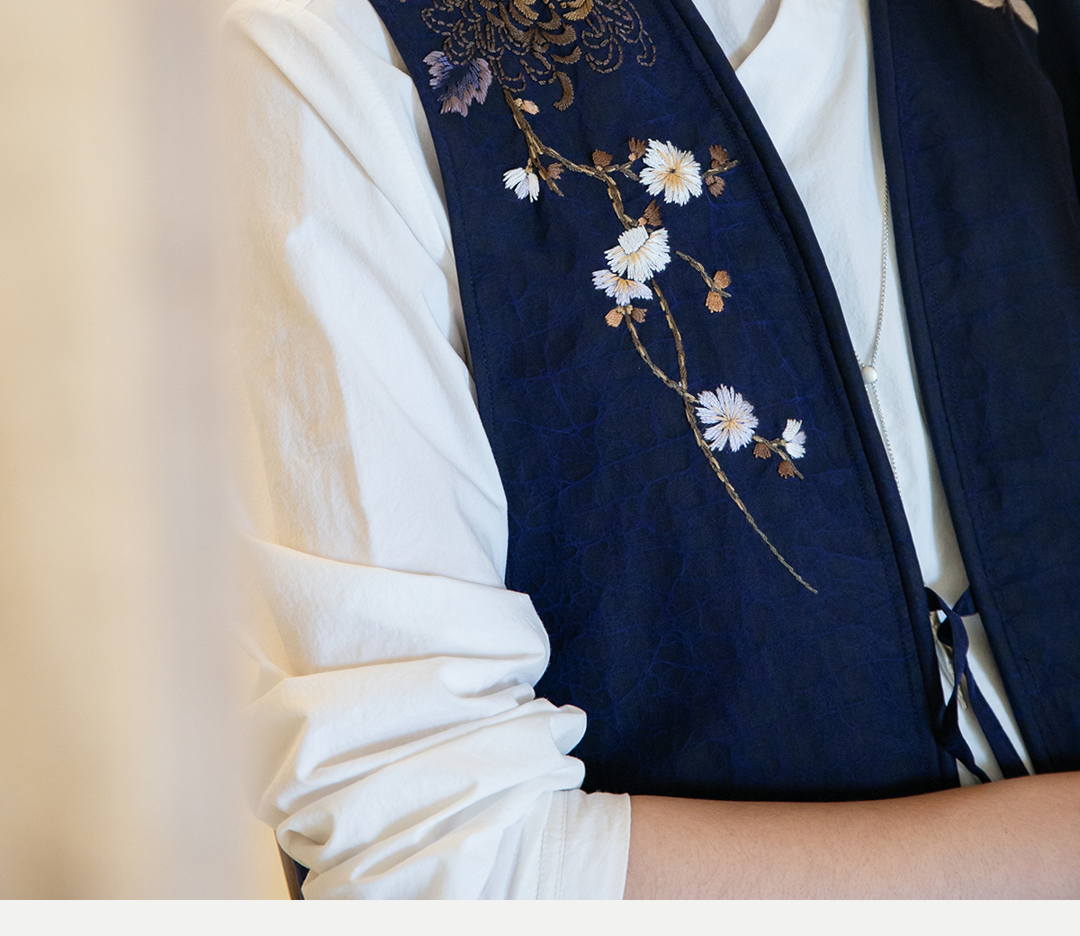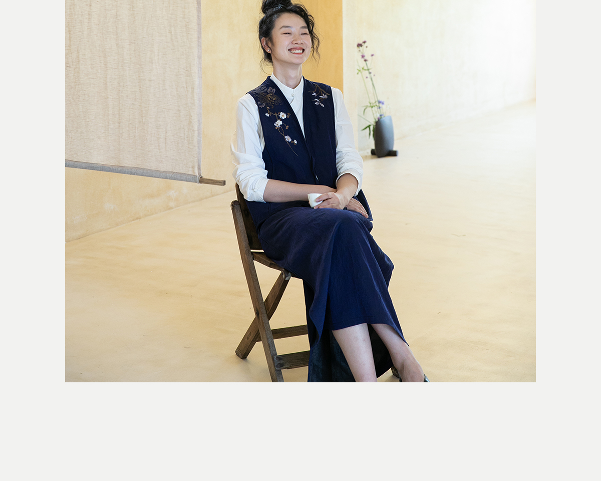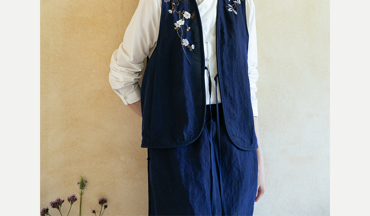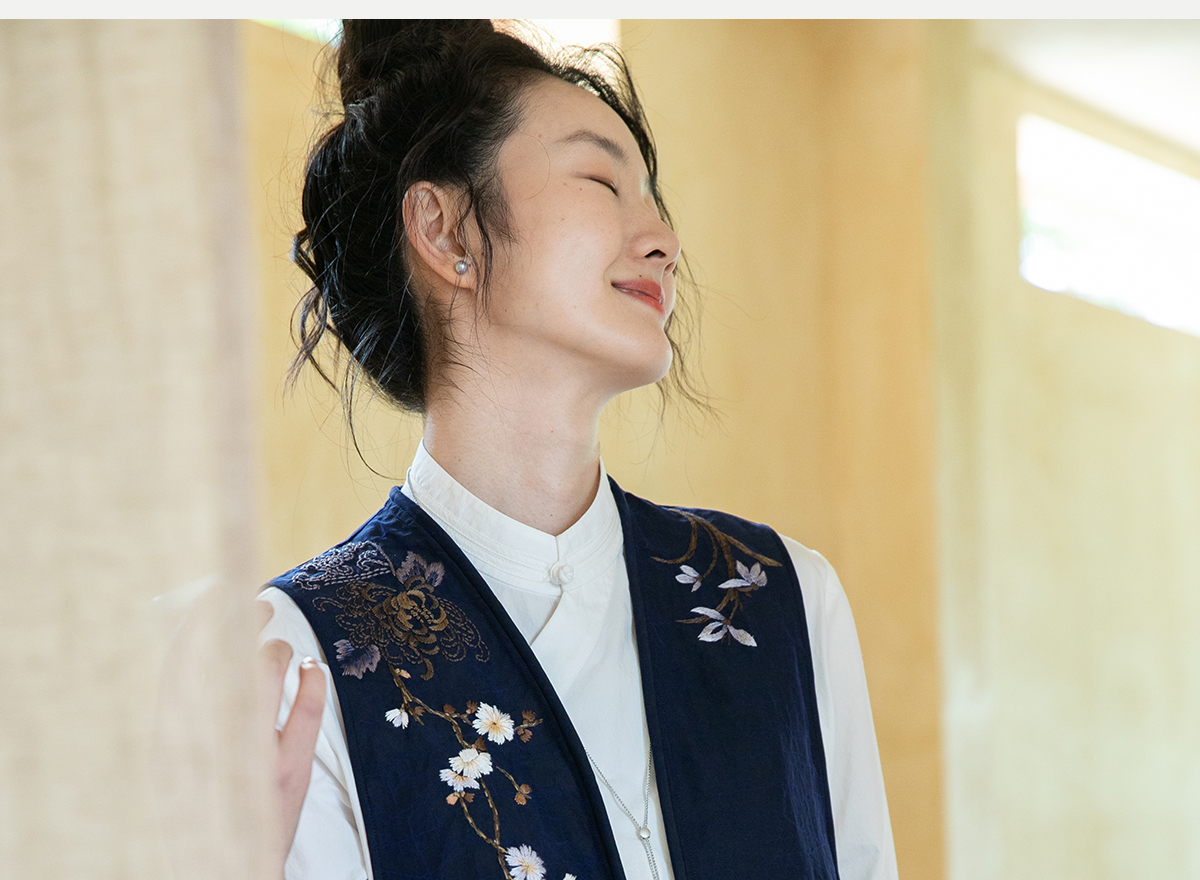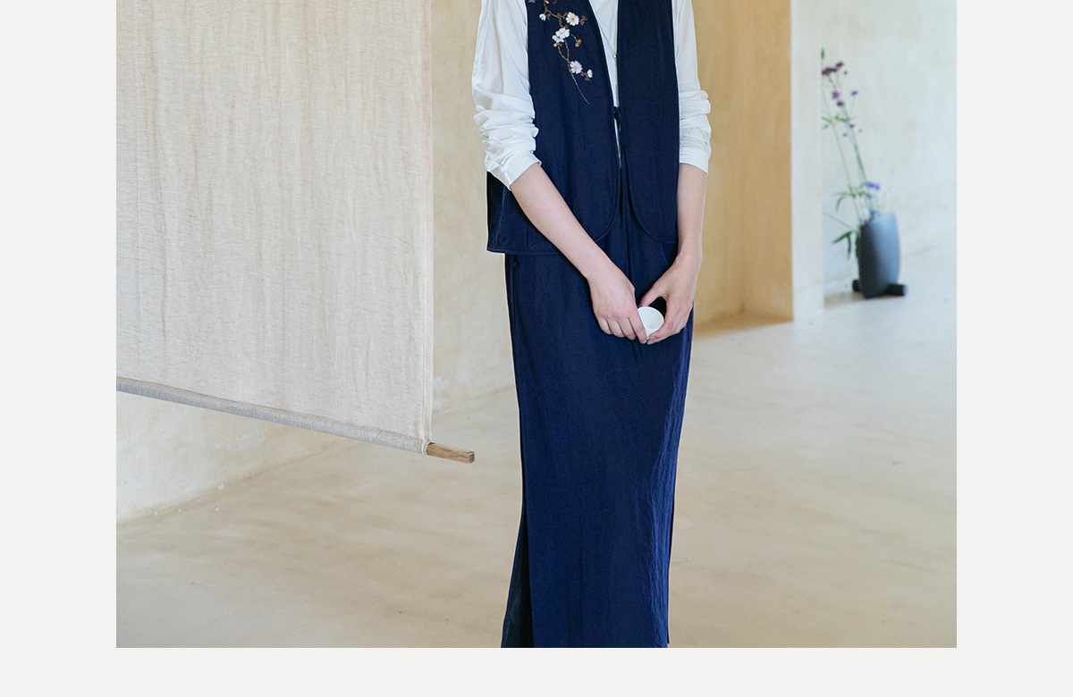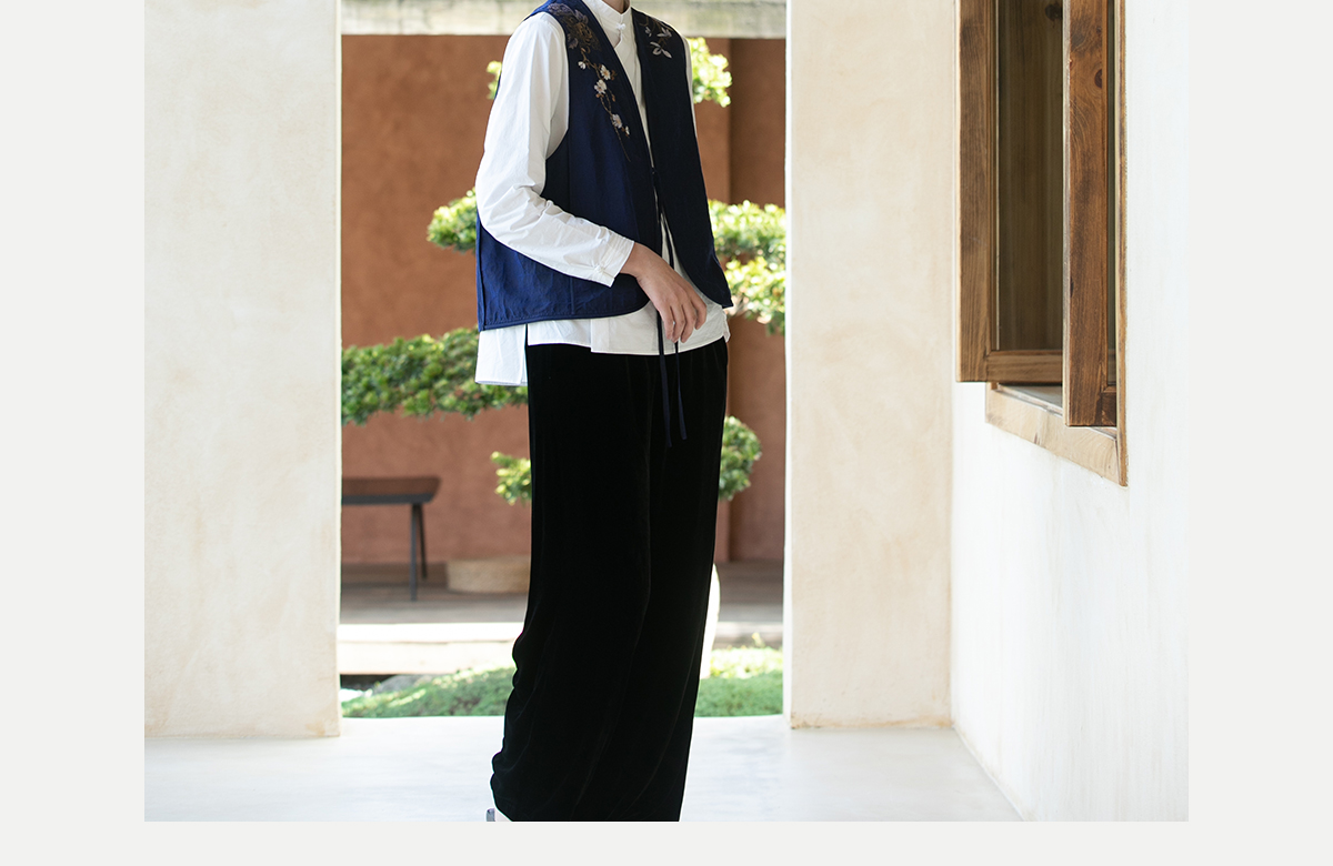 牧衣游原创 手绣蓝龟裂纹香云纱马夹复古禅意中式马甲新款 胭脂