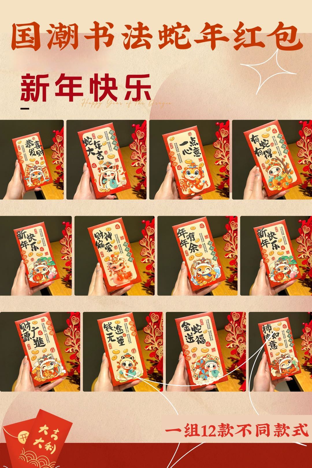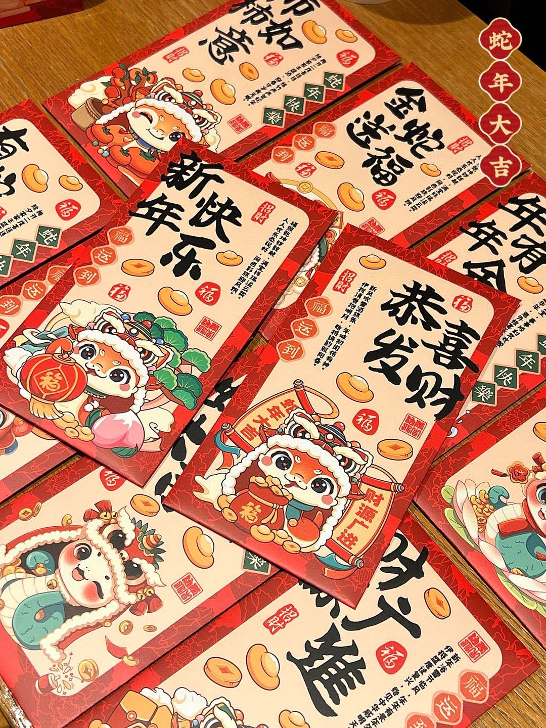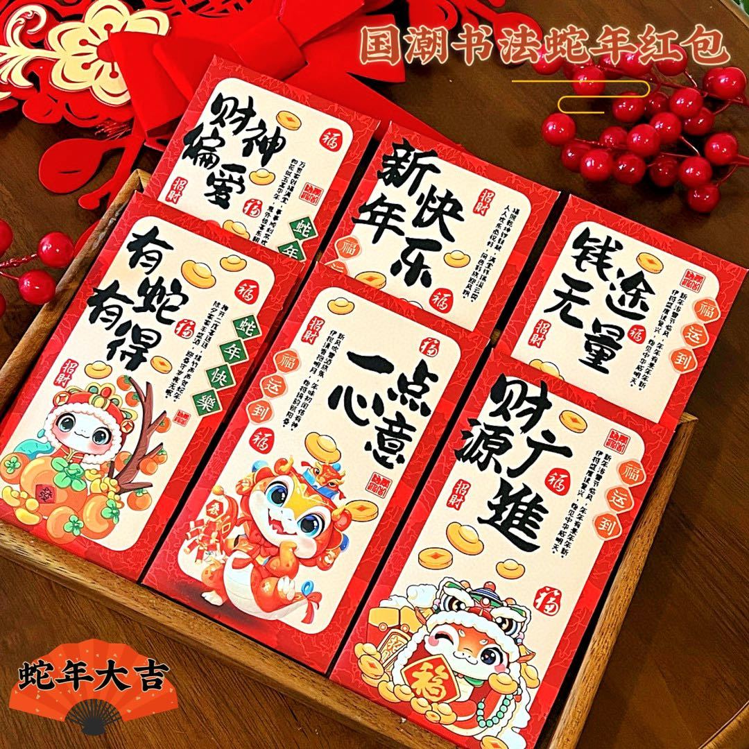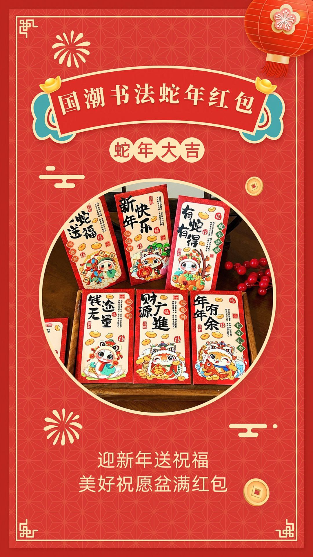 蛇年红包,每包6个,每款分别有不同图案和文字