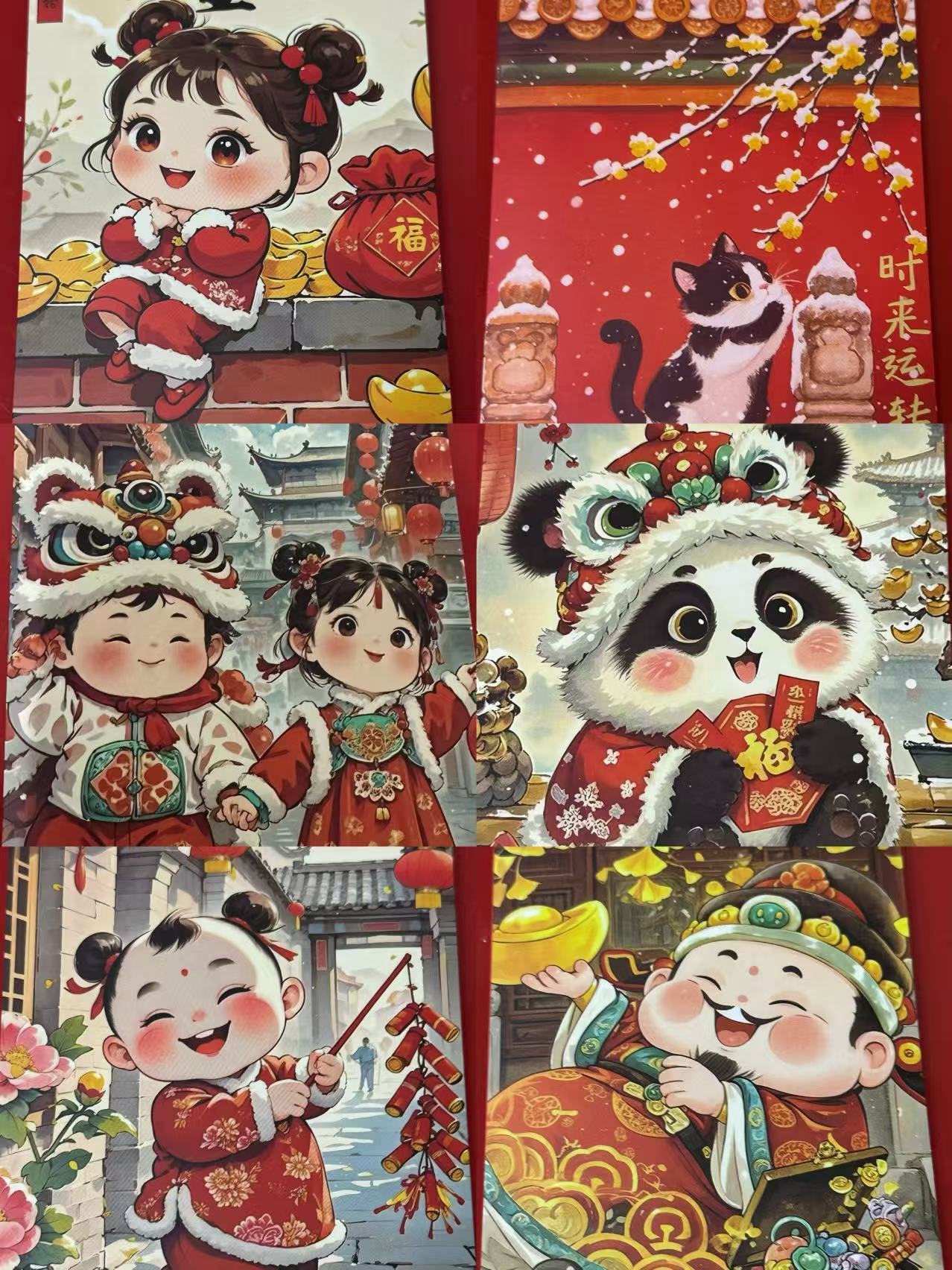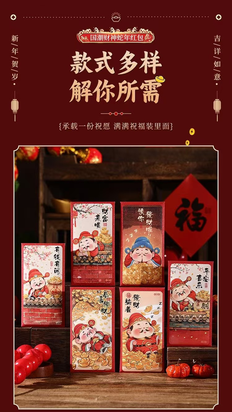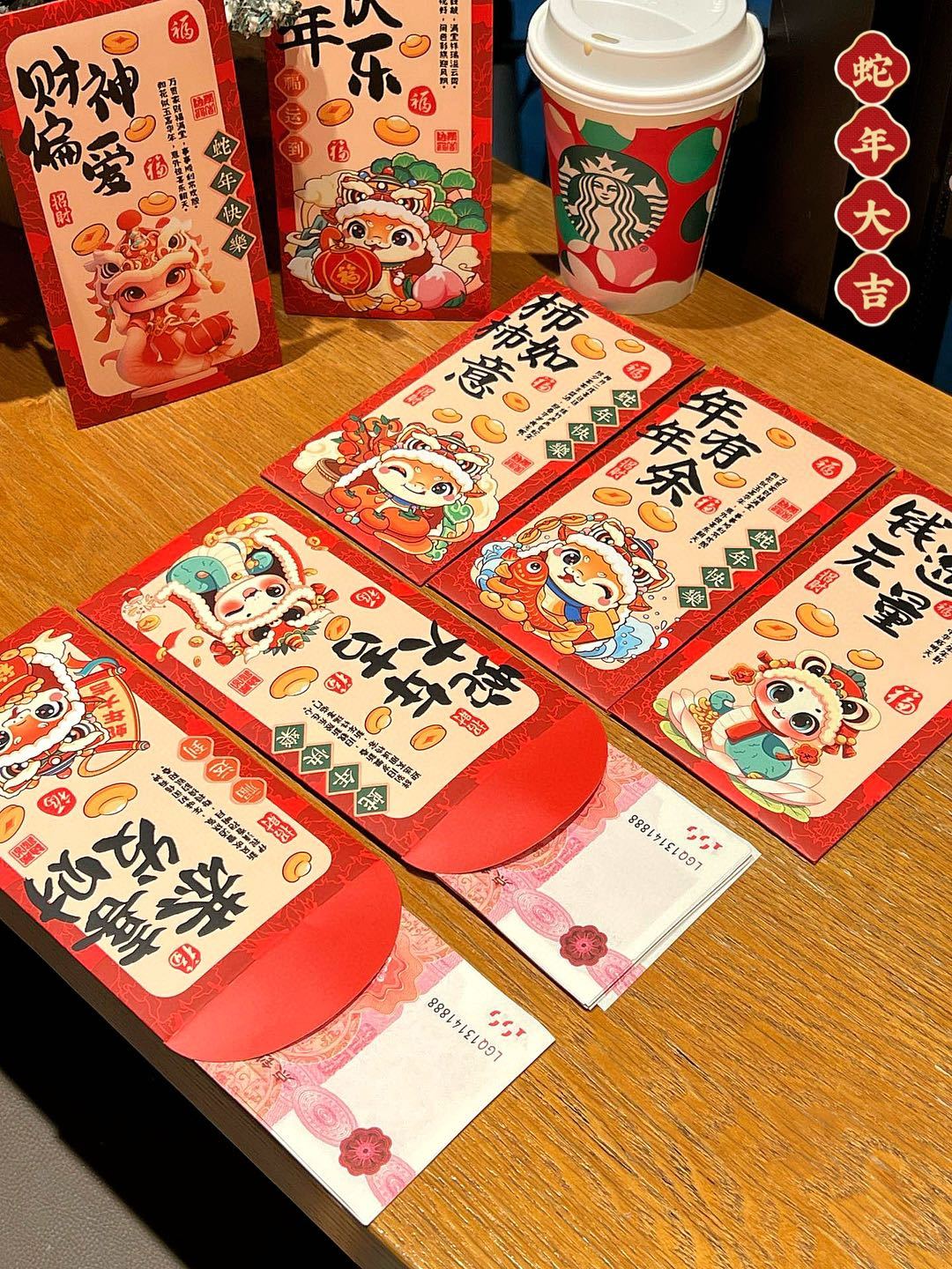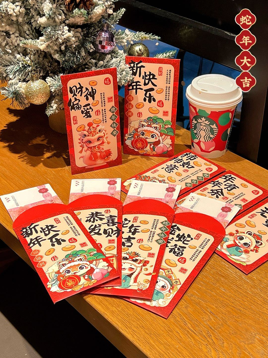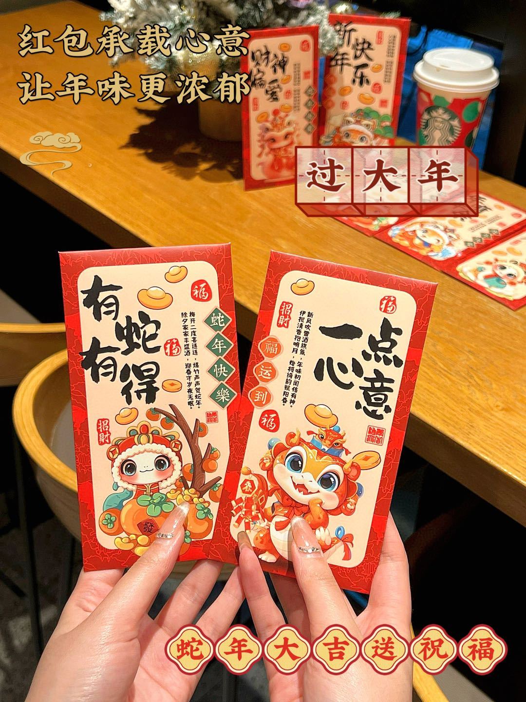 蛇年红包,每包6个,每款分别有不同图案和文字