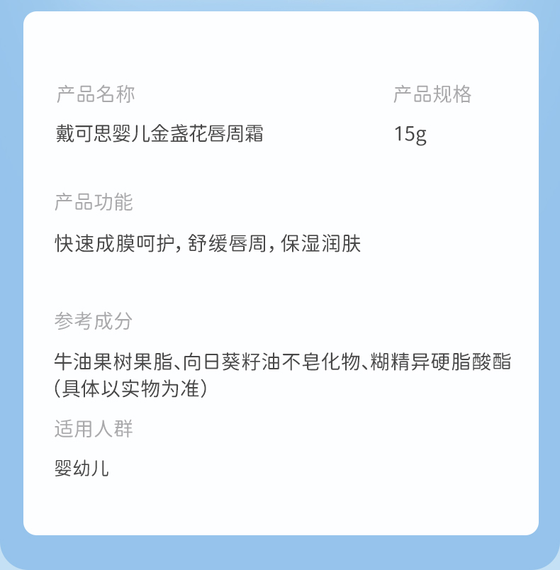 【戴可思推荐】婴儿金盏花唇周霜 植萃呵护 水润舒缓 保护宝宝唇周健康