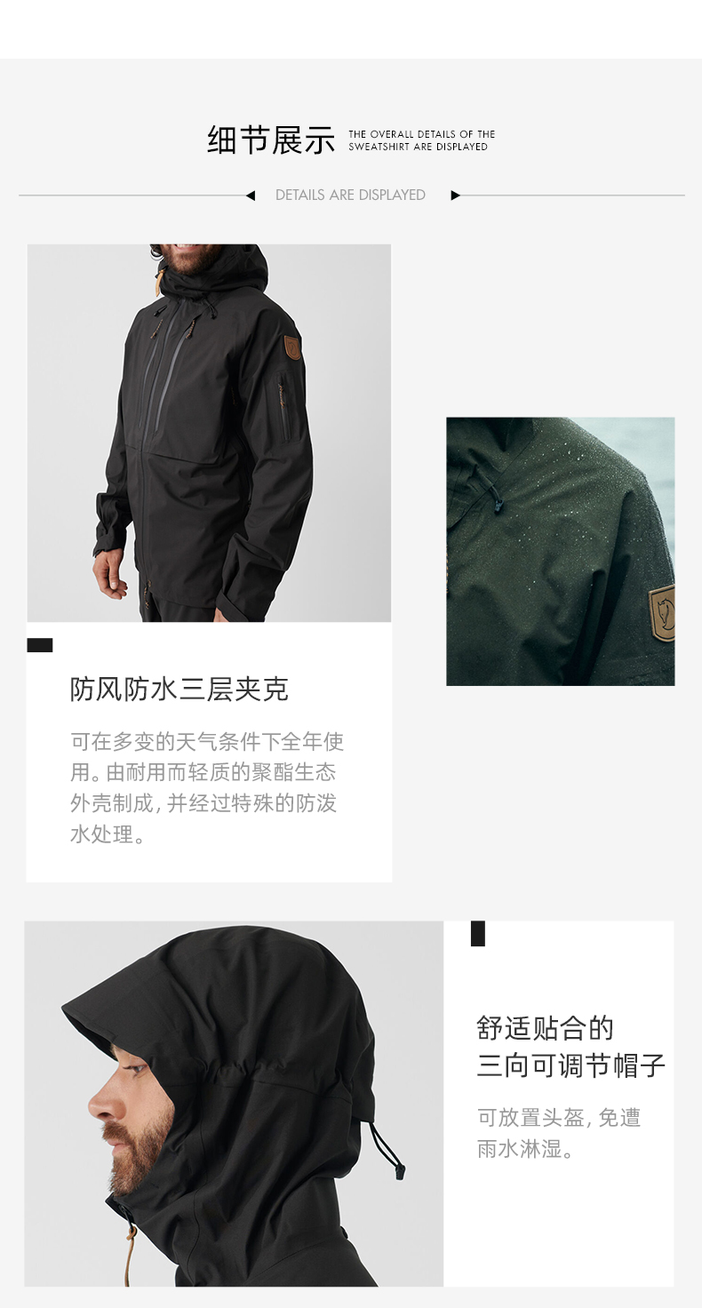 北极狐 春季户外男式薄款外套夹克防泼水透气立体裁剪冲锋衣82411