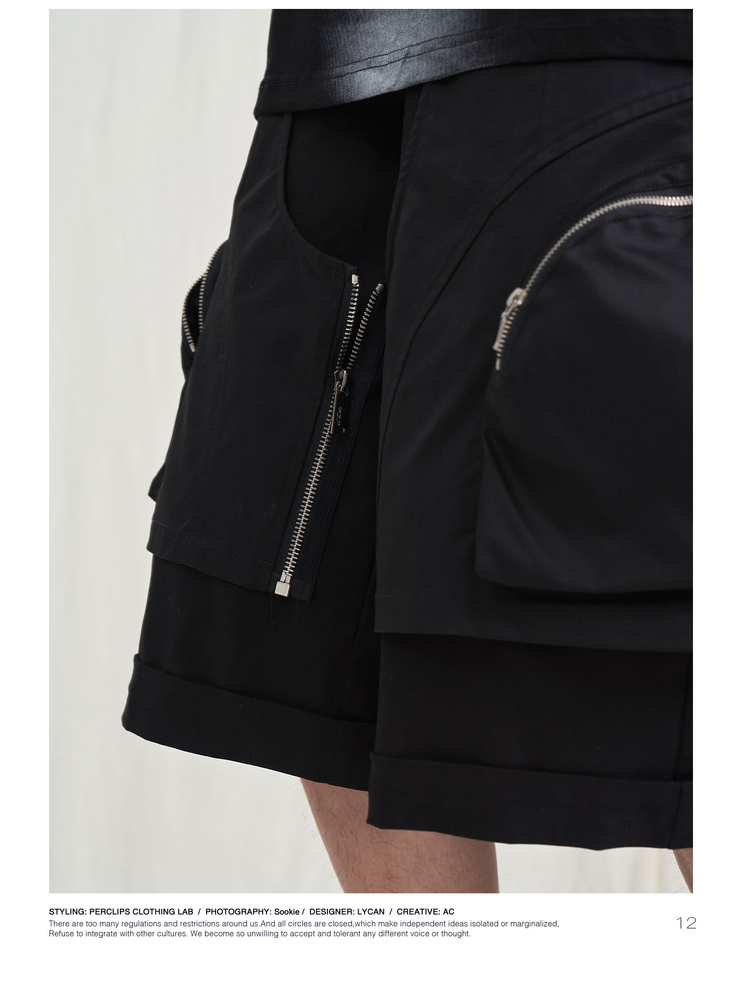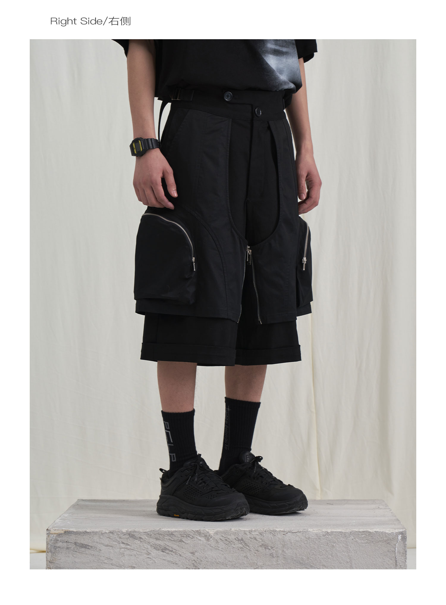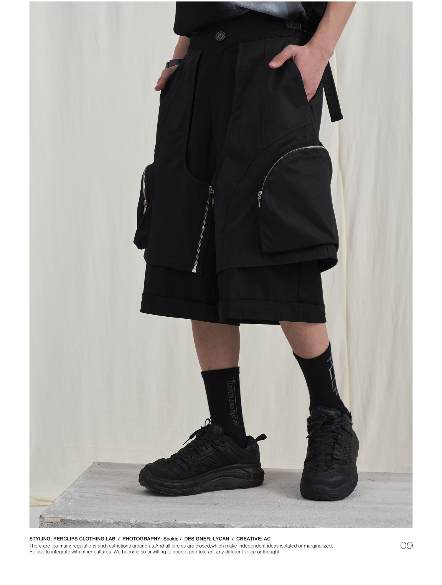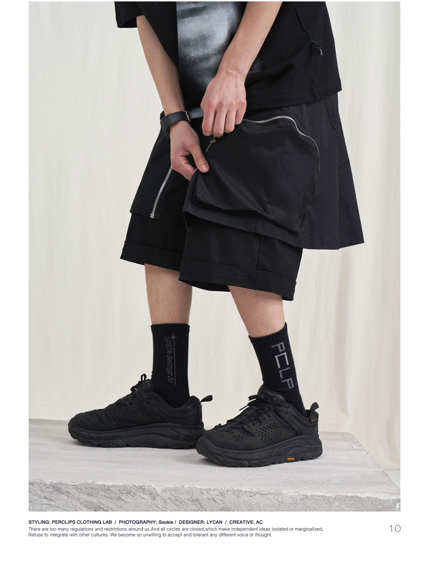 PCLP(PERCLIPS) 解构可拆卸拉链休闲短裤男国潮牌潮流宽松五分裤