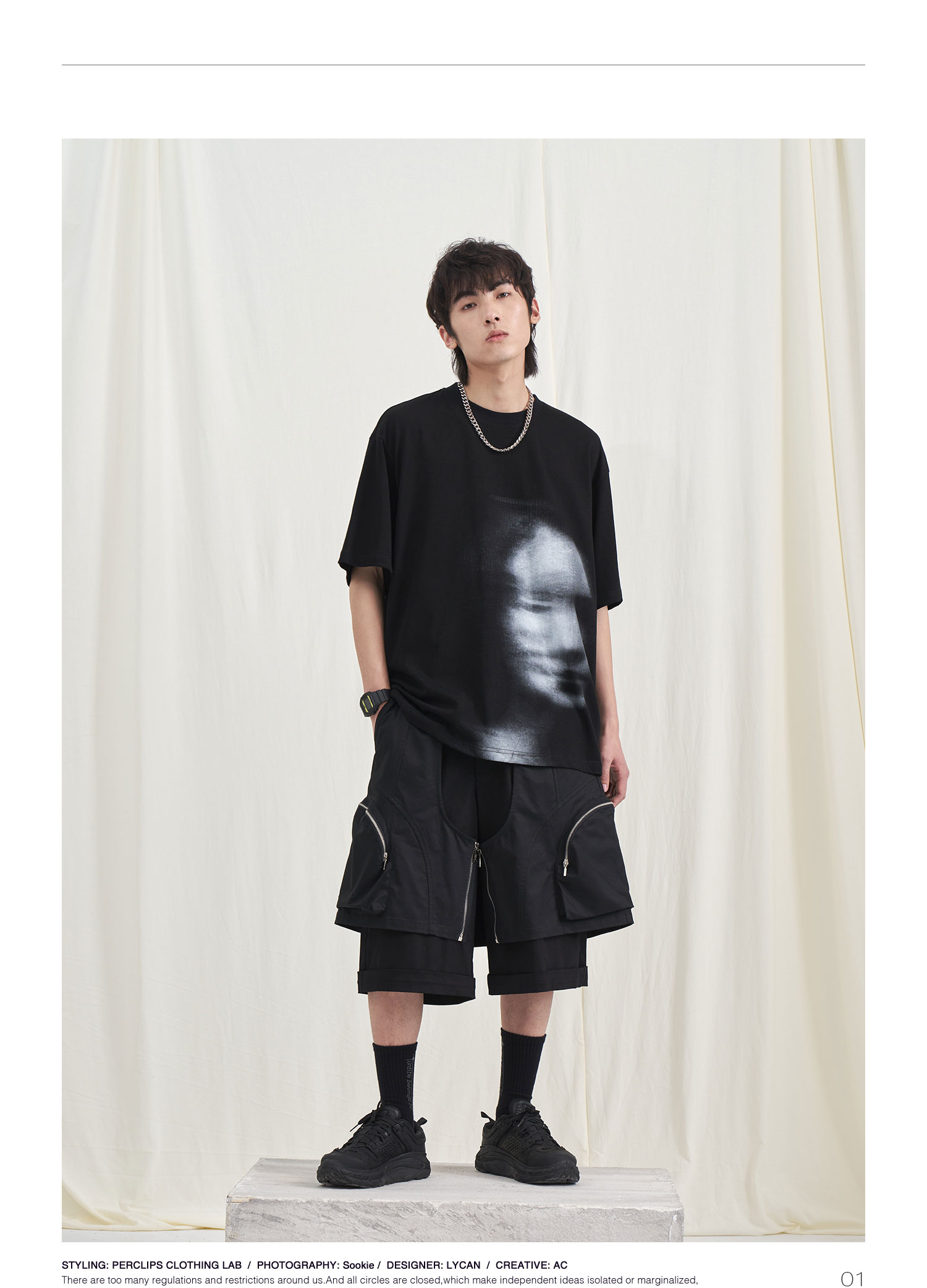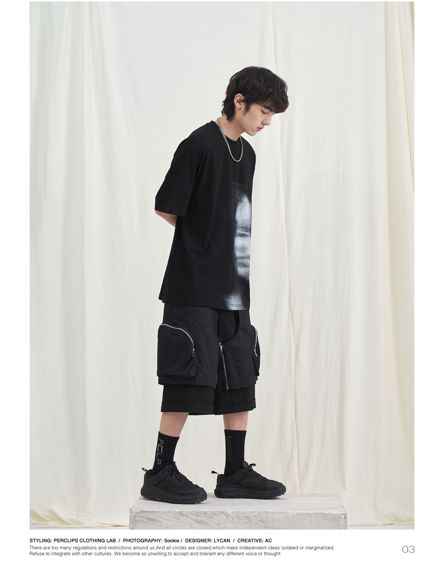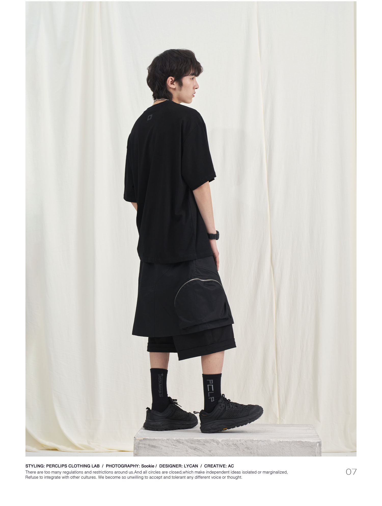 PCLP(PERCLIPS) 解构可拆卸拉链休闲短裤男国潮牌潮流宽松五分裤