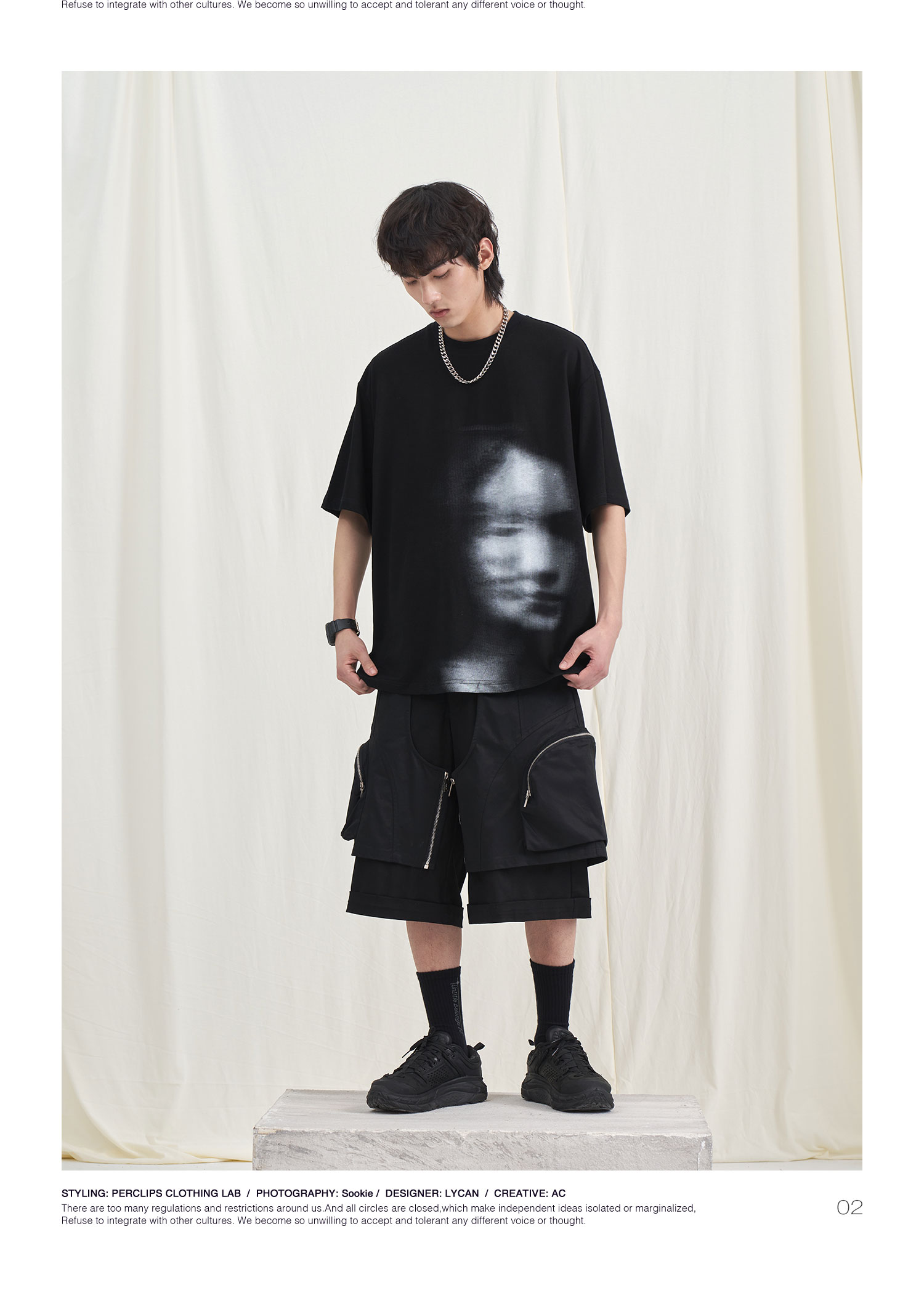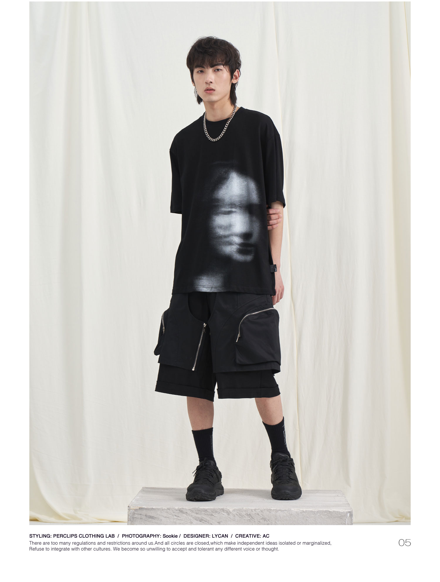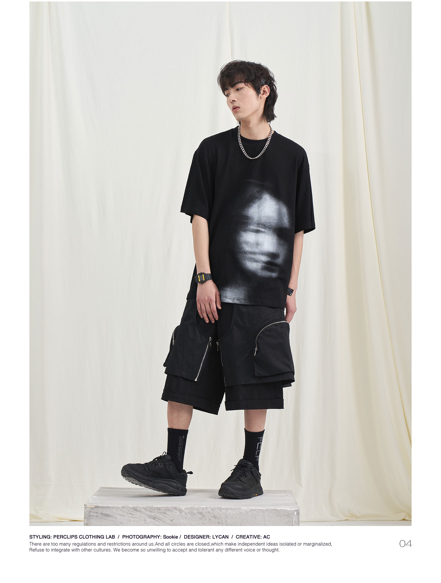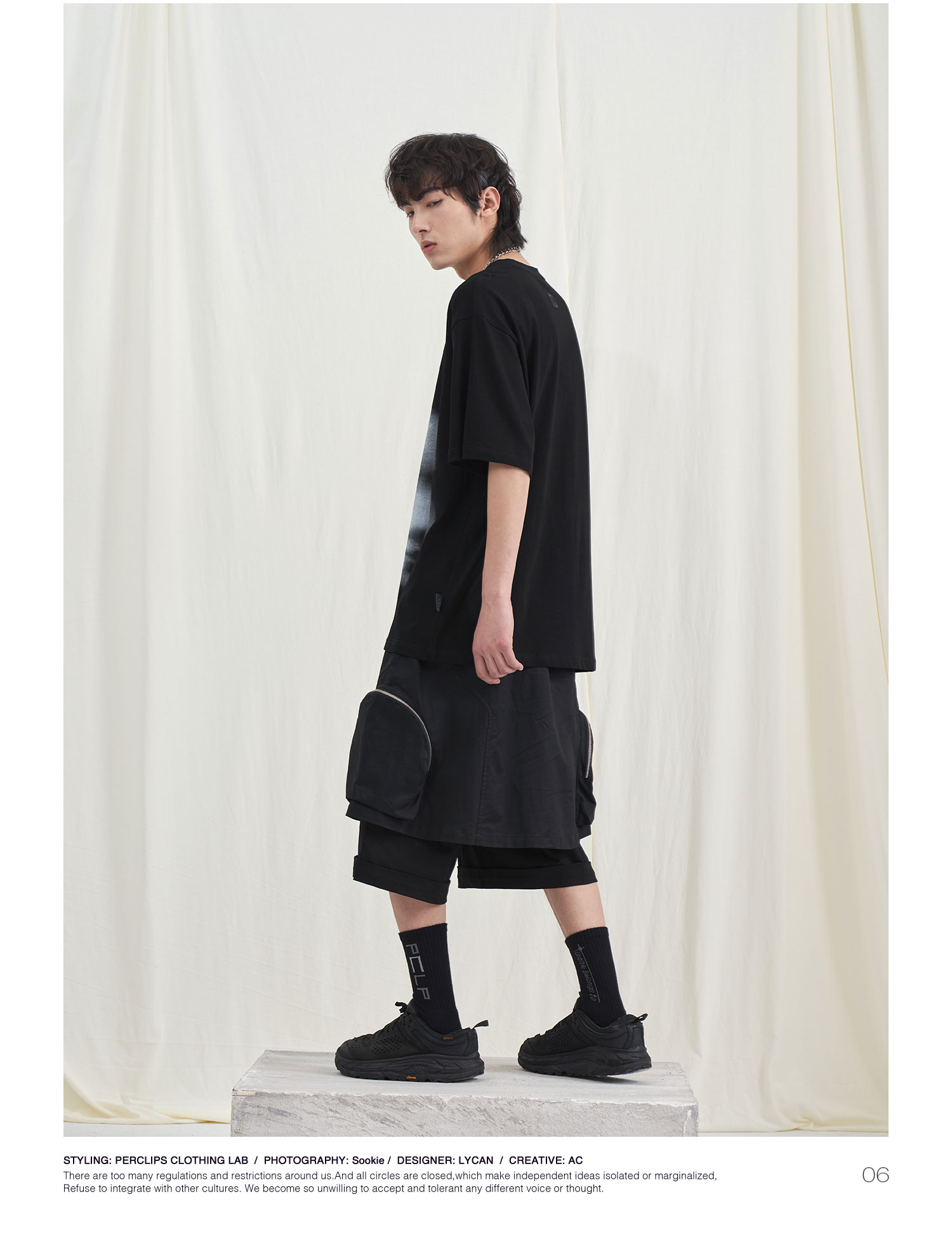 PCLP(PERCLIPS) 解构可拆卸拉链休闲短裤男国潮牌潮流宽松五分裤